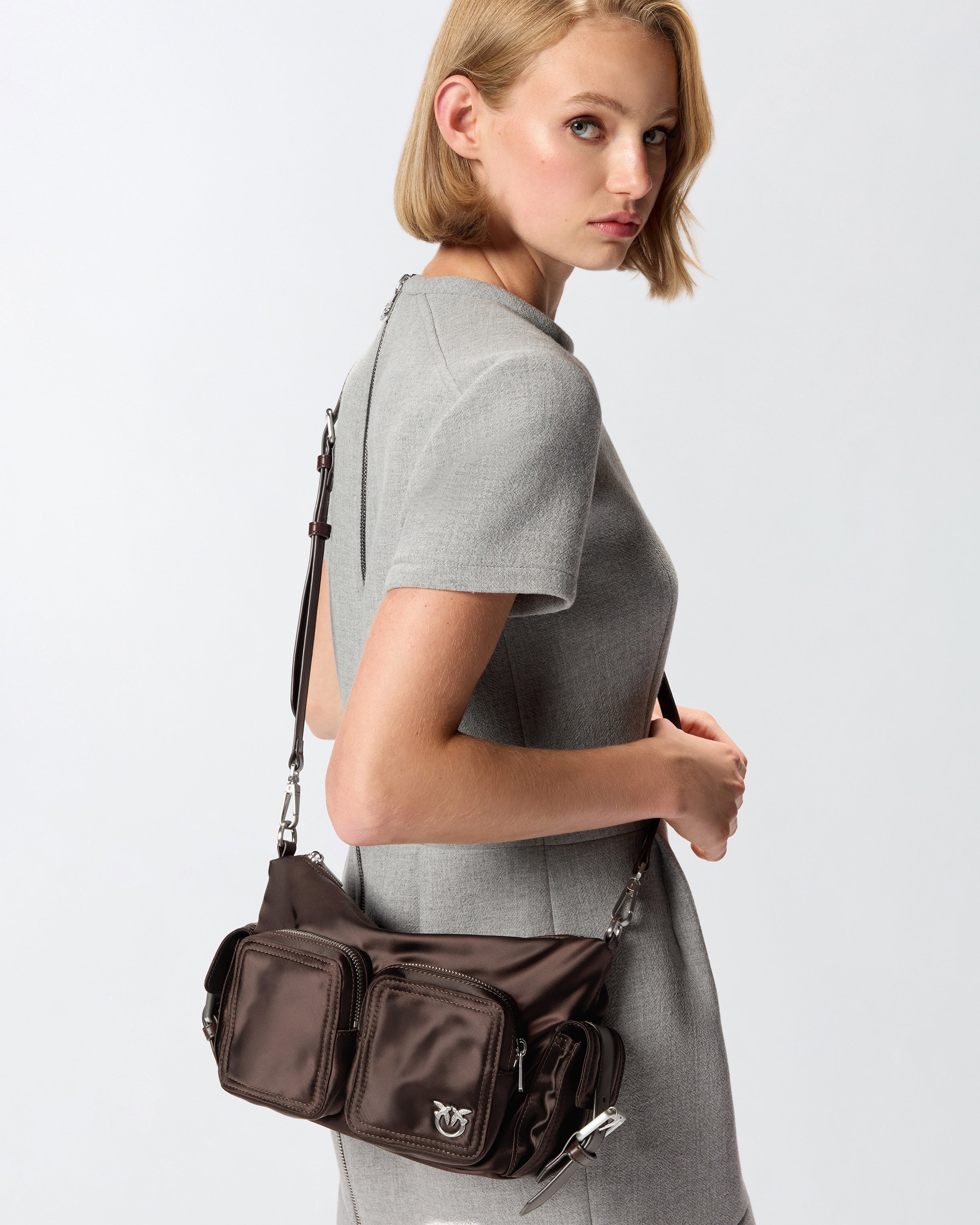 Borsa media stile camera bag in tessuto satin, dotata di fodera trapuntata in cotone a contrasto. Caratterizzata dalla tracolla regolabile in pelle e dal manico per la portata a mano o a spalla, la borsa risulta estremamente versatile e pratica. Accessorio distintivo di infiniti look, questo modello presenta due tasche esterne con zip per tenere al sicuro i tuoi essenziali. Il design raffinato viene completato dal logo Love Birds che si fa portavoce dell'inimitabile stile del brand. Attiva la tua borsa PINKO: verifica l'autenticità del tuo prodotto e accedi all'esperienza personalizzata avvicinando il tuo smartphone al ricamo Love Birds che trovi sul retro della borsa!