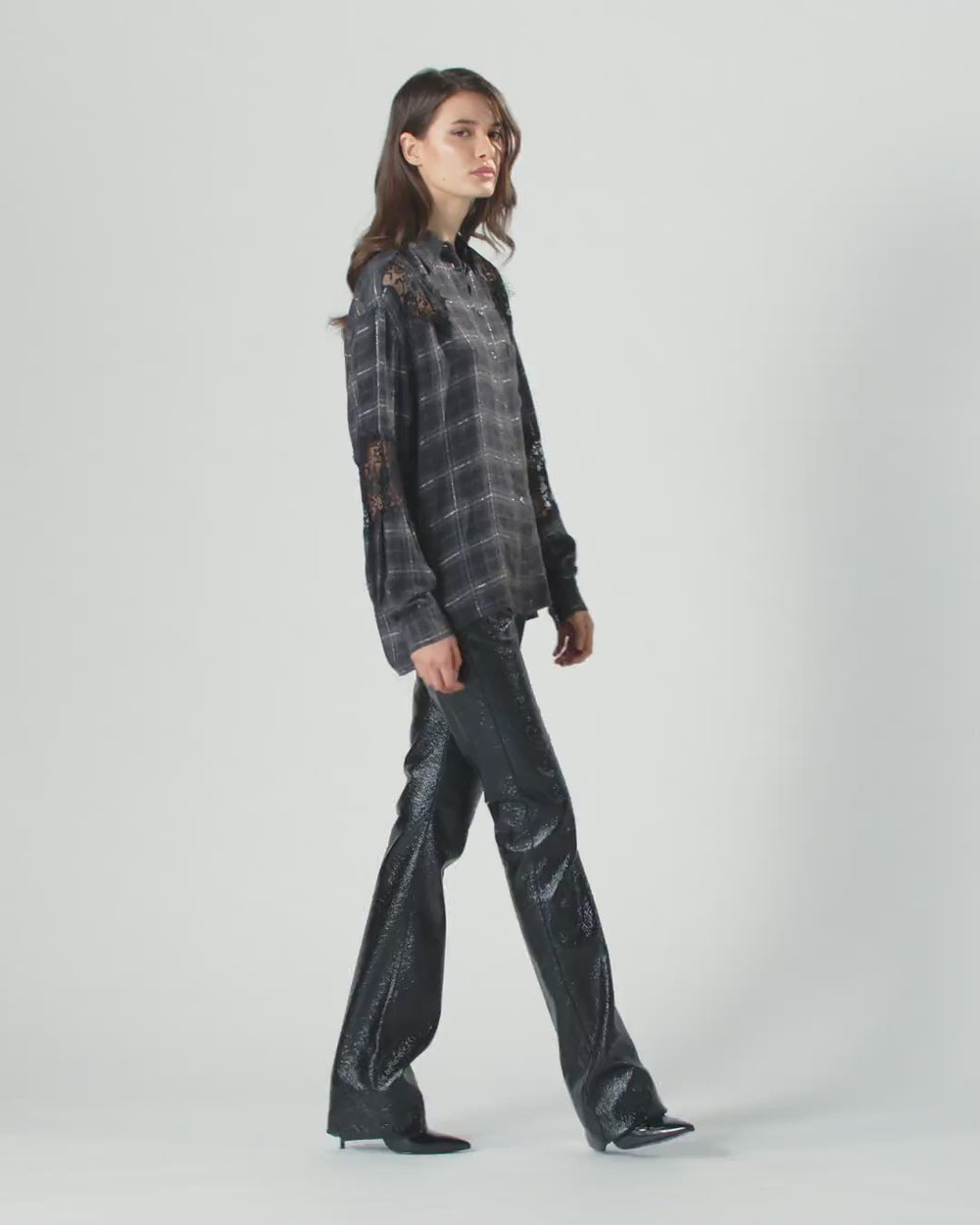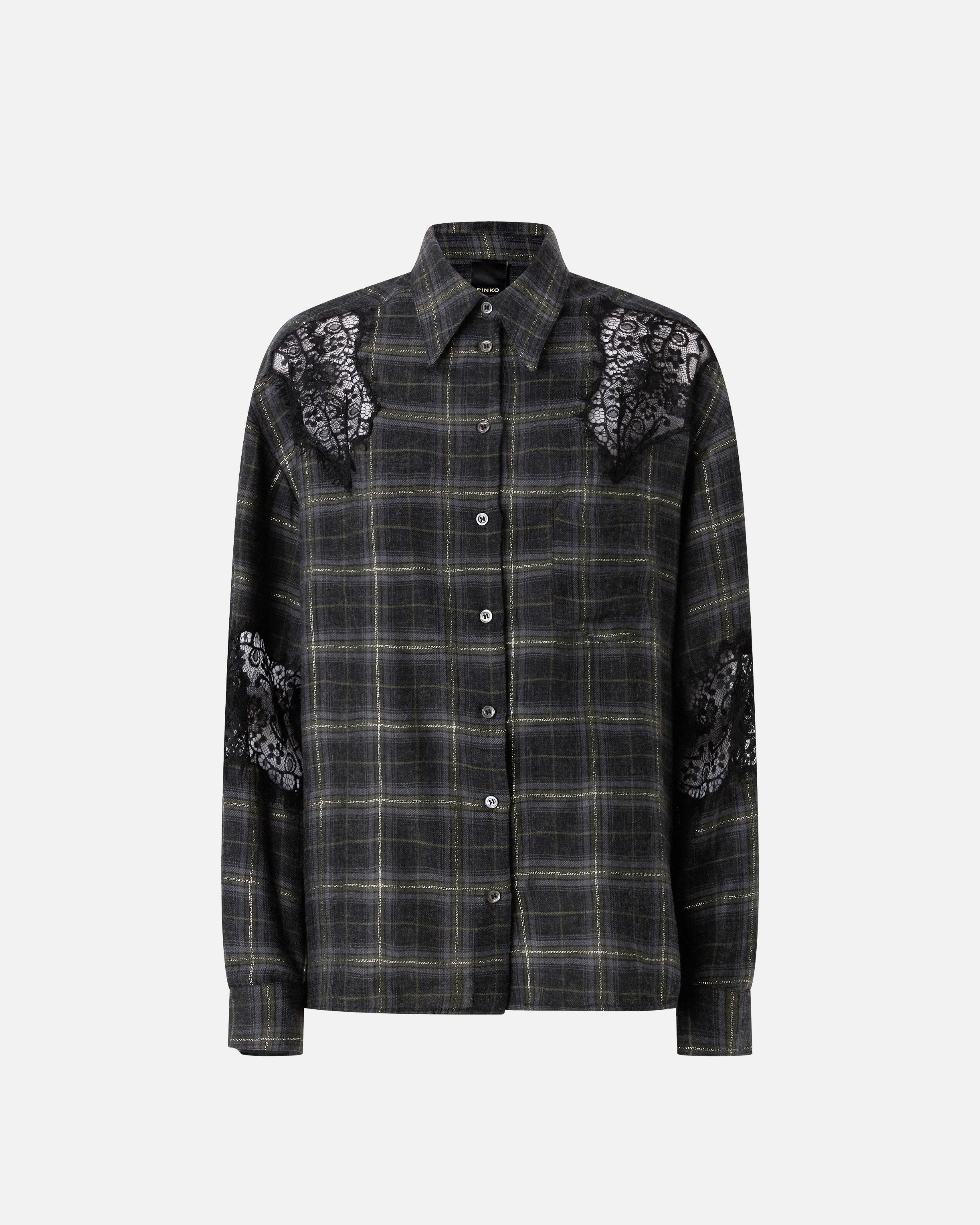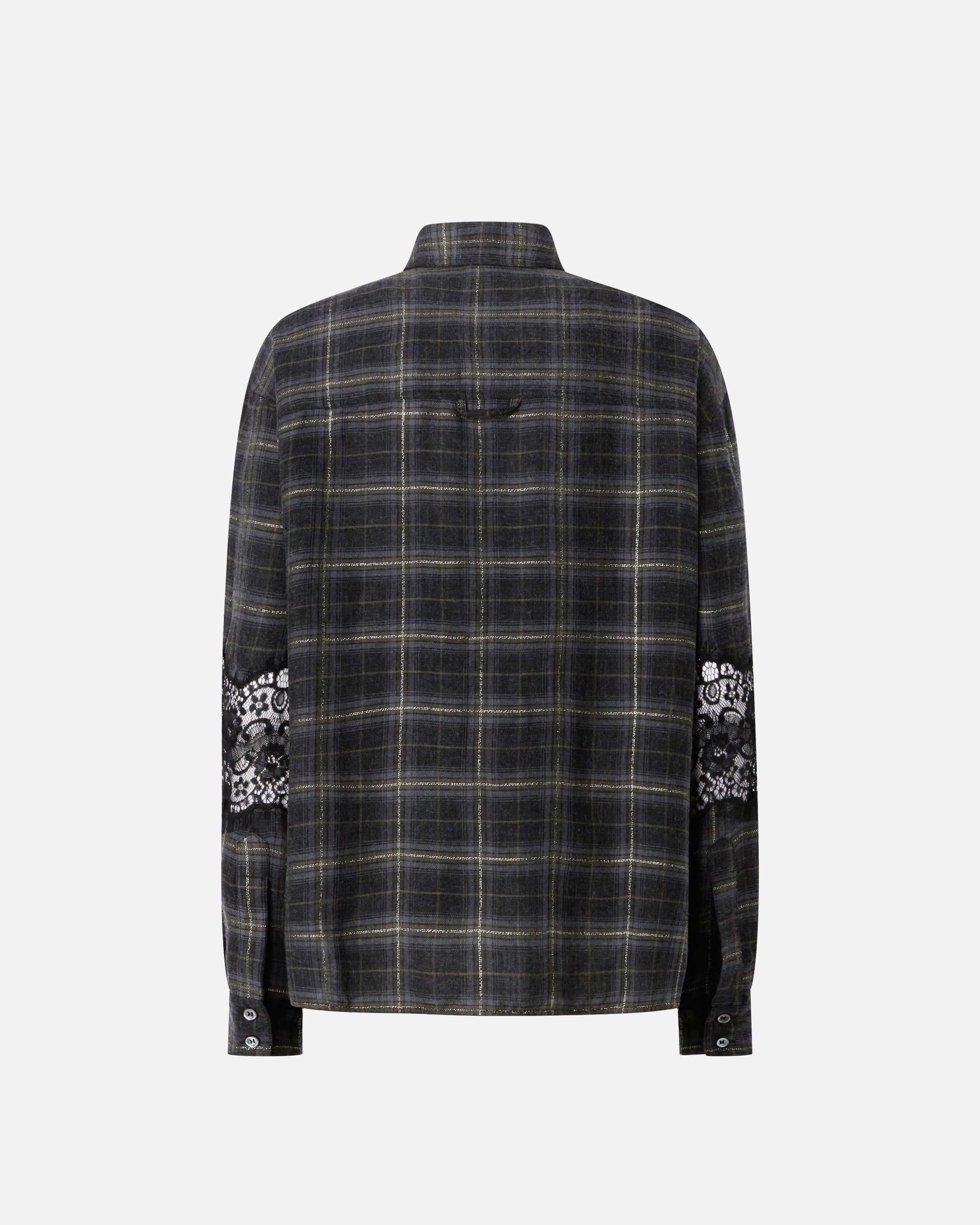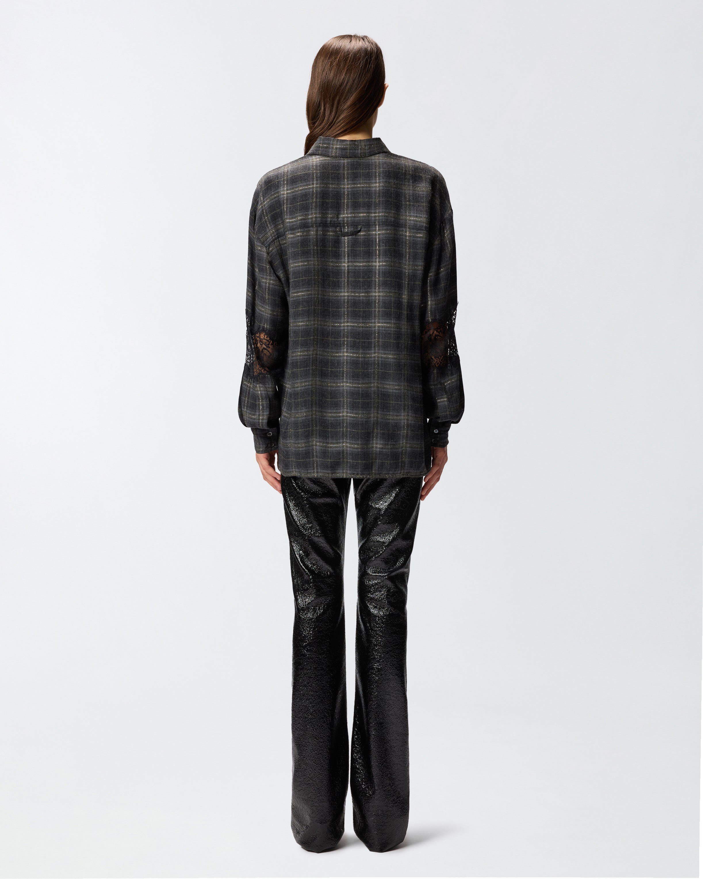 Camicia dalla vestibilità rilassata realizzata in un tessuto dalla mano calda e avvolgente che si adatta alle forme del corpo. Sul modello si alternano un motivo a quadri con righe in filo metallizzato e sofisticati inserti in pizzo smerlato intarsiato d'ispirazione lingerie. Abbina questo modello fluido e versatile a un paio di jeans confortevoli per i tuoi momenti off-duty.