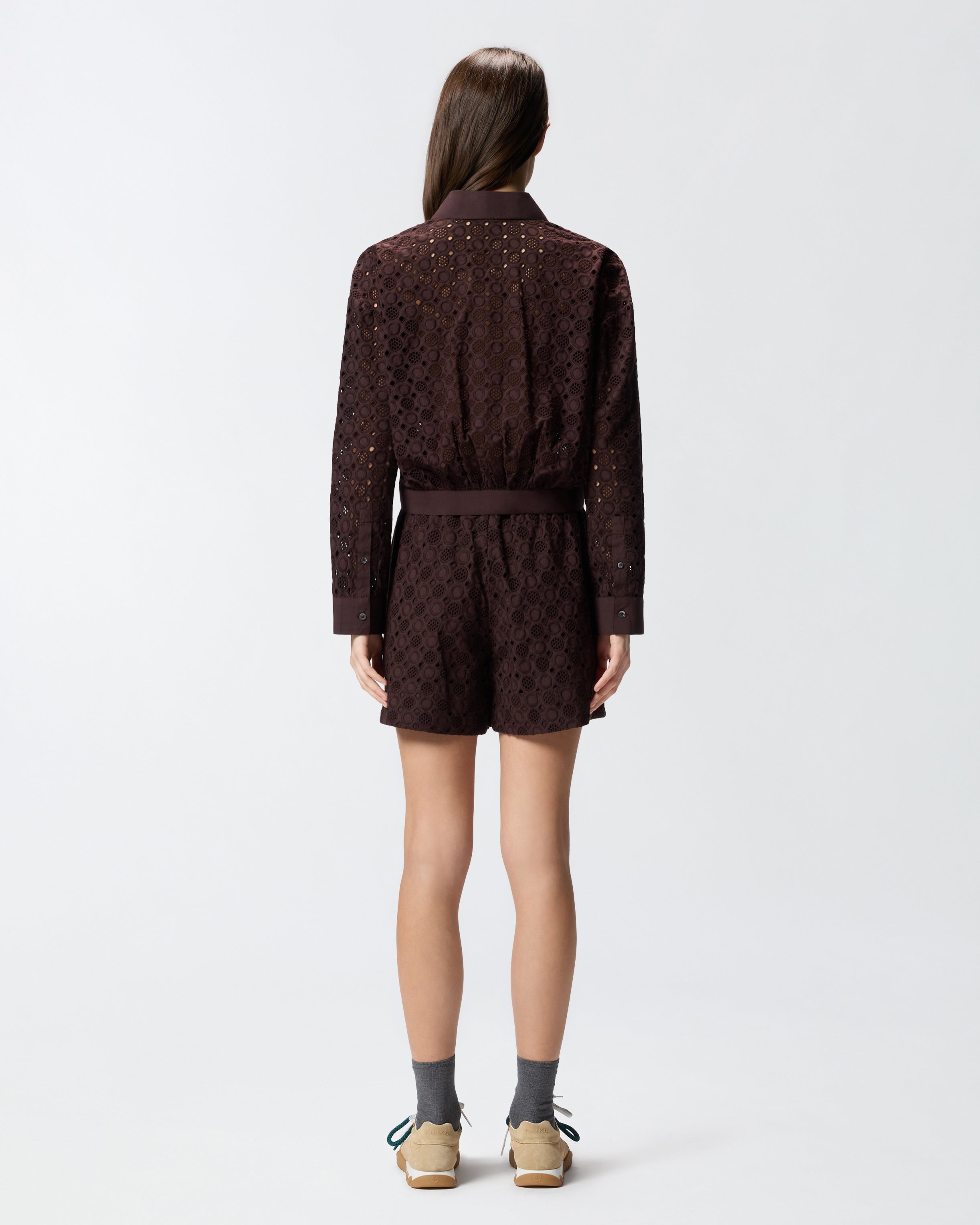 Camicia cropped realizzata in popeline di puro cotone e caratterizzata da colletto classico, maniche lunghe con bottoni ai polsi, abbottonatura frontale e fondo arricciato personalizzato dal logo lettering PINKO ricamato in corsivo. Il capo è arricchito da una lavorazione sangallo all over che crea un elegante gioco geometrico di ricami pieni e traforati. Stile e comfort si combinano in questo modello, che diventerà il tuo passe-partout per le occasioni più svariate.