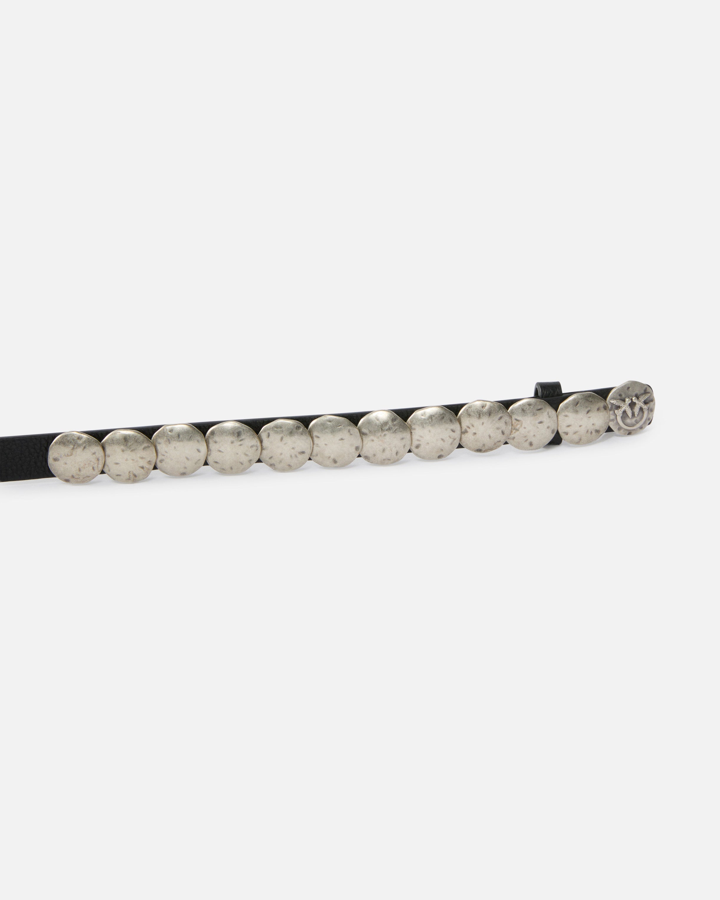 Cintura sottile, alta 1,5 cm, realizzata in elegante pelle bottalata. L'accessorio, ideale per un indosso a vita alta, presenta un design doppio da incrociare sul retro, ed è caratterizzato da una fila di borchie dall'effetto battuto verso una delle estremità, di cui una è rifinita dall'iconico logo Love Birds con uccellini. Sappiamo bene che sono i dettagli a fare la differenza: scegli questa cintura per aggiungere un tocco inedito ai tuoi look casual.