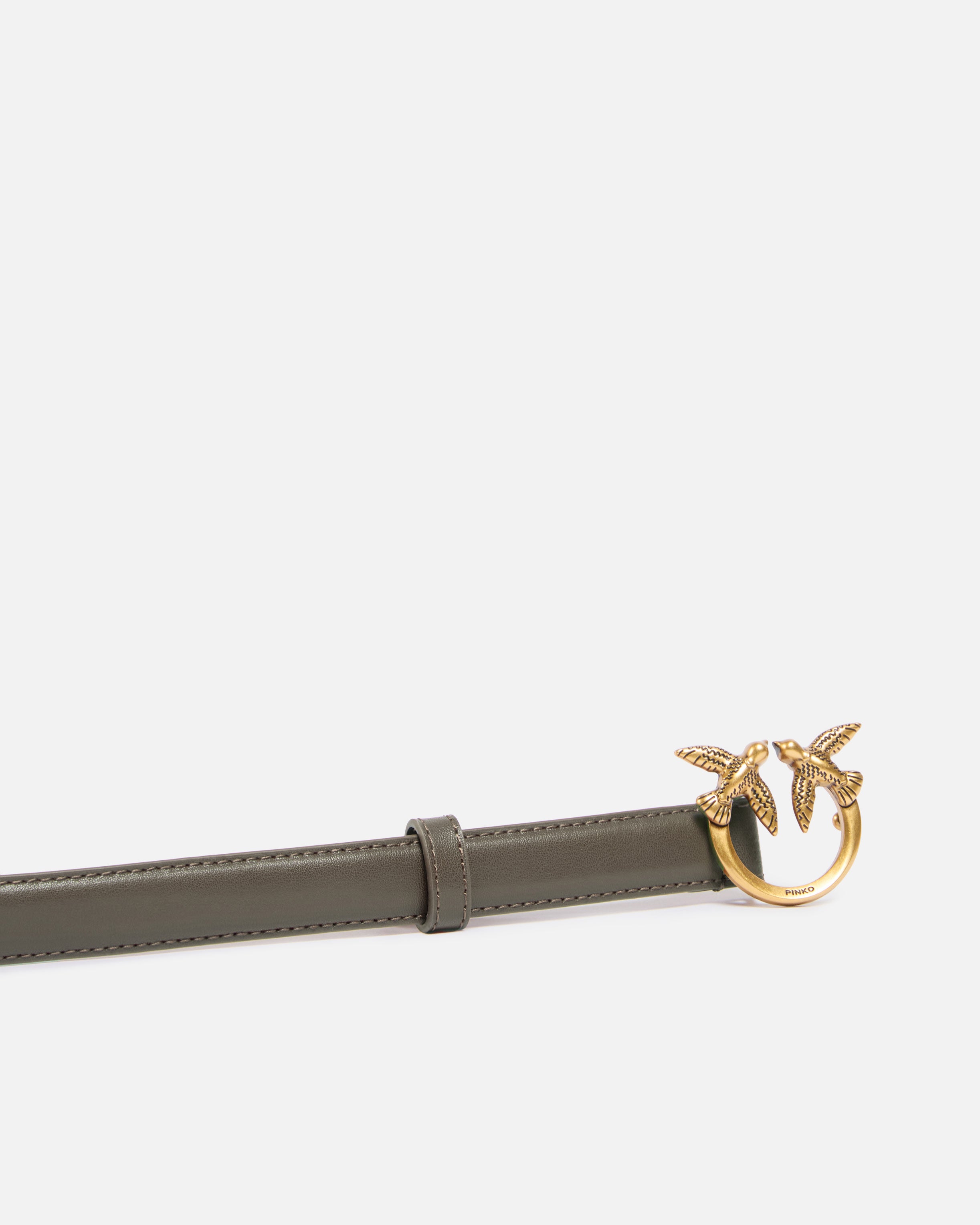 Cintura sottile in morbida pelle mano seta con fibbia Love Birds Diamond Cut in metallo. - LOVE BERRY H2 BELT