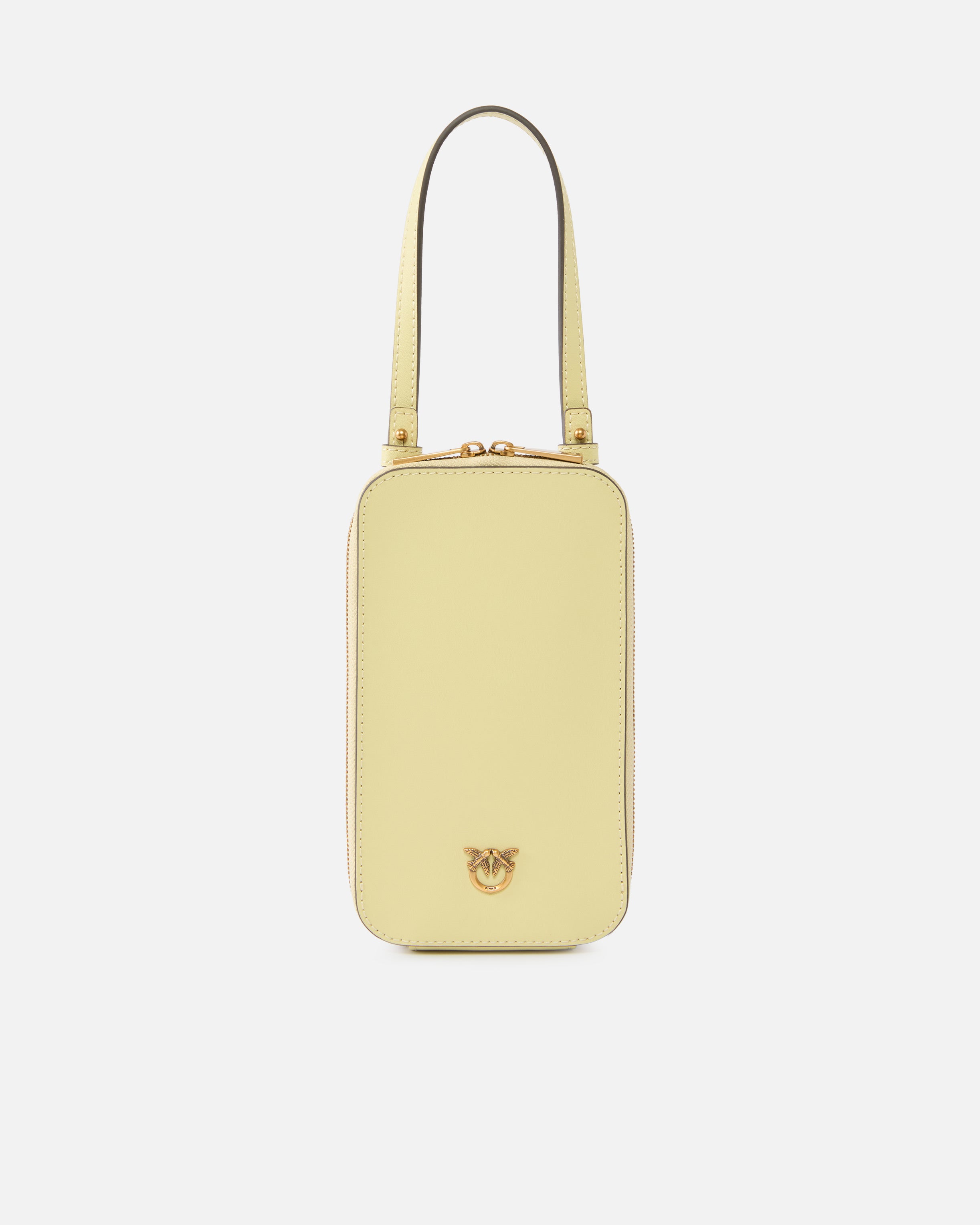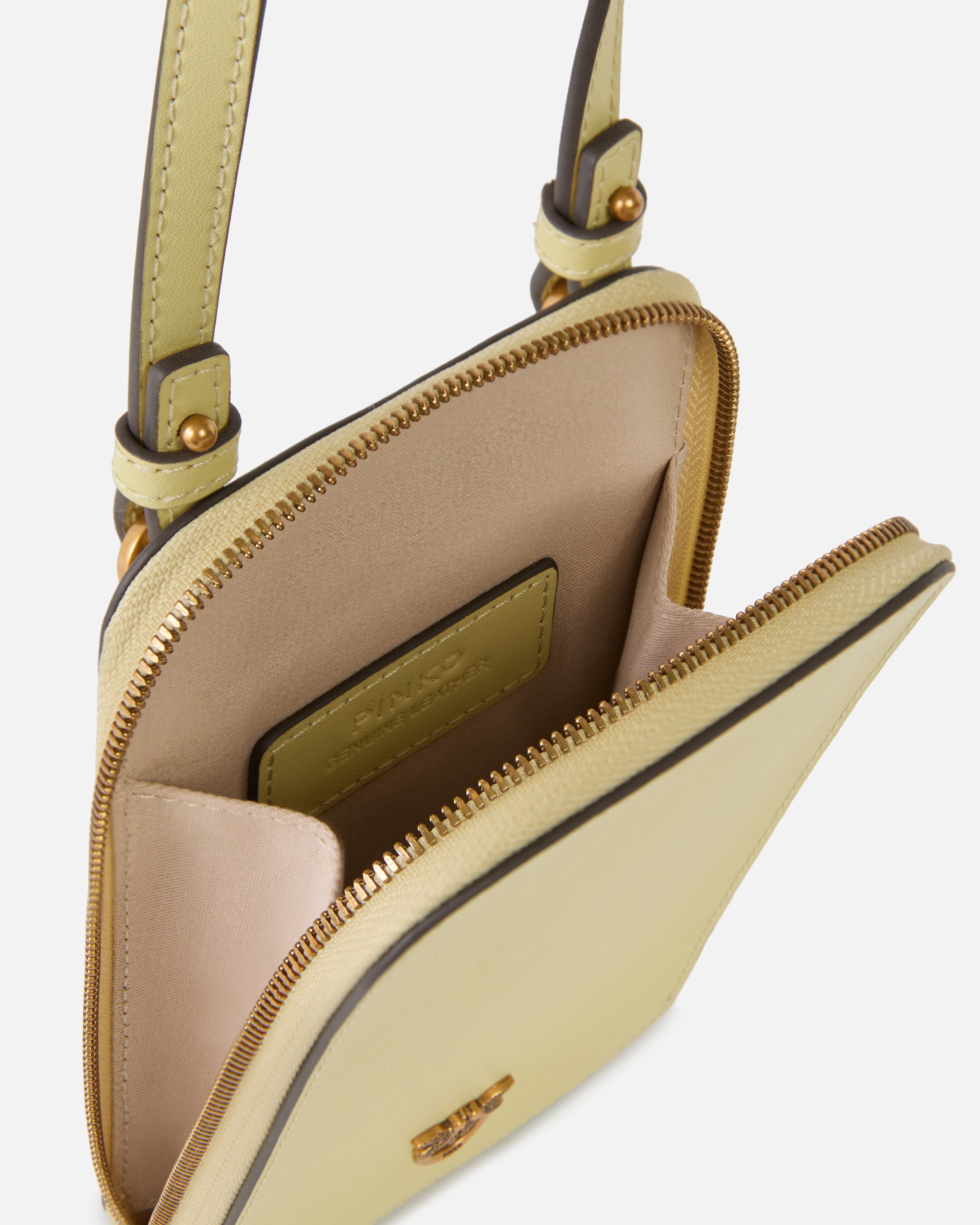 Custodia per smartphone in morbida pelle mano seta dotata di un manico superiore fisso e di due cinturini rimovibili tramite moschettone, tutti e tre in pelle, per consentirti di personalizzarne l'indosso e portarla sempre con te. Il modello è arricchito inoltre da una piccola placchetta raffigurante l'iconico logo Love Birds Diamond Cut sul davanti e presenta una chiusura zip-around che rivela un interno foderato in tessuto drill di cotone con targhetta logata. Attiva il tuo accessorio PINKO: verifica l'autenticità del tuo prodotto e accedi all'esperienza personalizzata avvicinando il tuo smartphone al ricamo Love Birds che trovi sul retro! - PHONE CASE