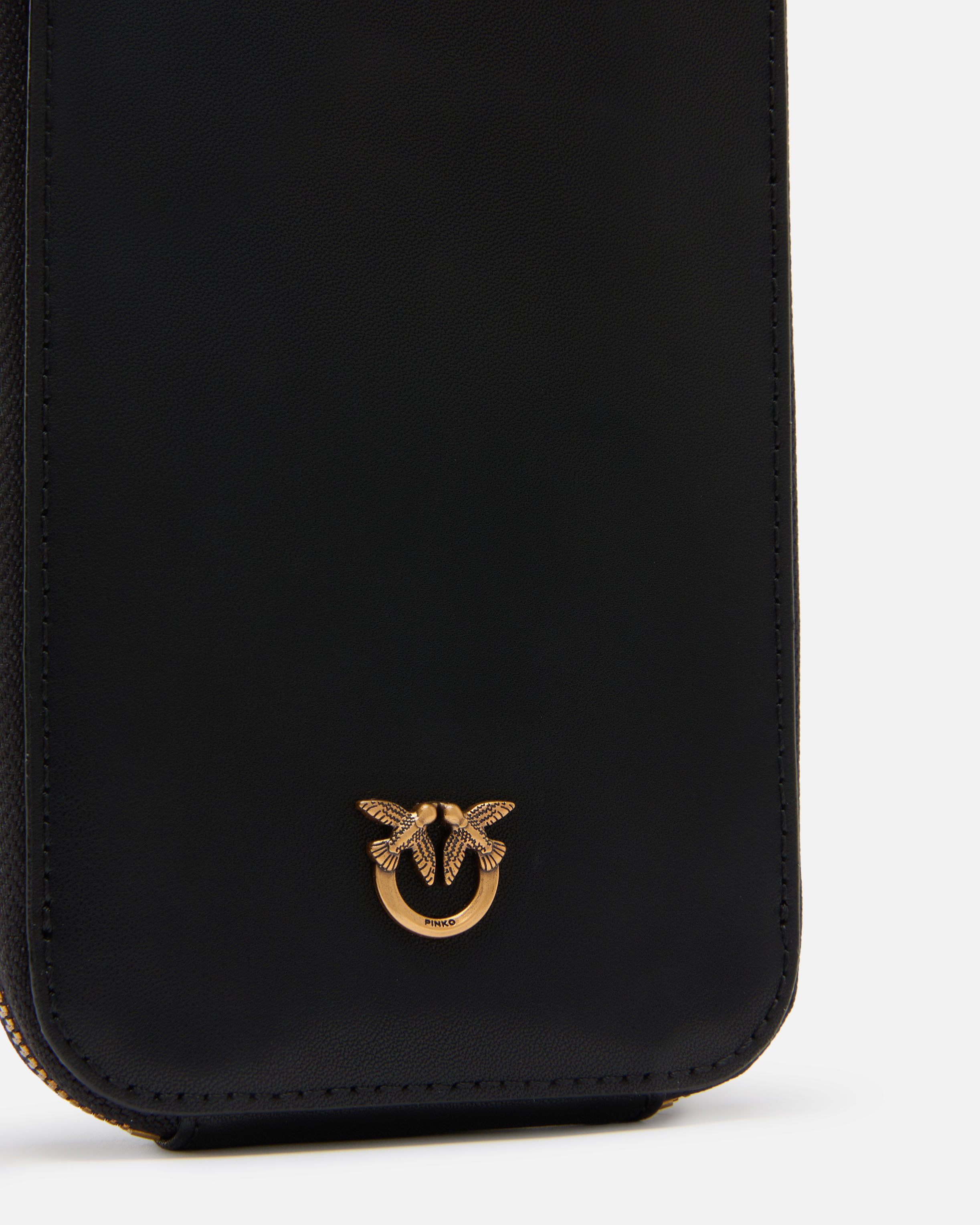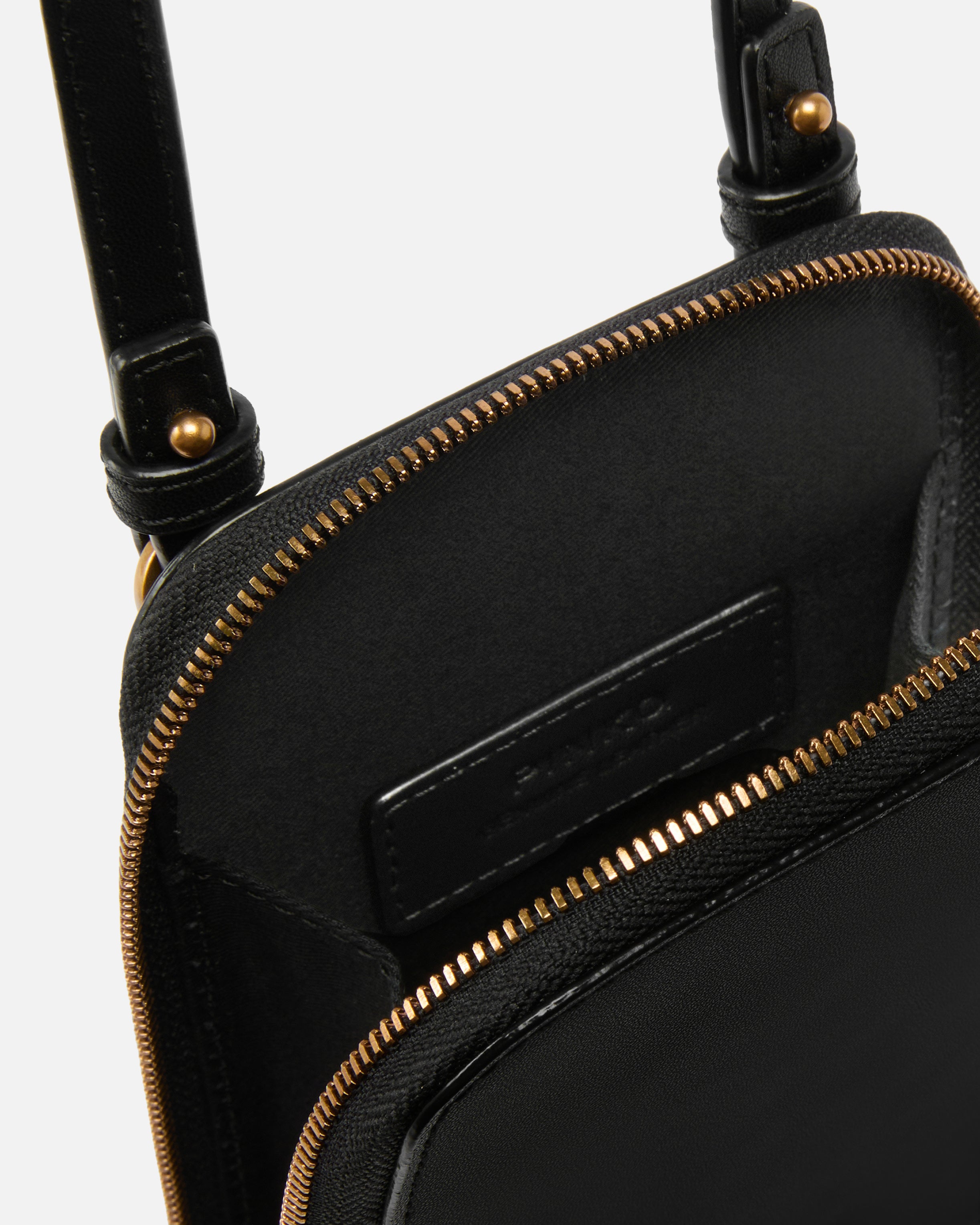 Custodia per smartphone in morbida pelle mano seta dotata di un manico superiore fisso e di due cinturini rimovibili tramite moschettone, tutti e tre in pelle, per consentirti di personalizzarne l'indosso e portarla sempre con te. Il modello è arricchito inoltre da una piccola placchetta raffigurante l'iconico logo Love Birds Diamond Cut sul davanti e presenta una chiusura zip-around che rivela un interno foderato in tessuto drill di cotone con targhetta logata. Attiva il tuo accessorio PINKO: verifica l'autenticità del tuo prodotto e accedi all'esperienza personalizzata avvicinando il tuo smartphone al ricamo Love Birds che trovi sul retro! - PHONE CASE