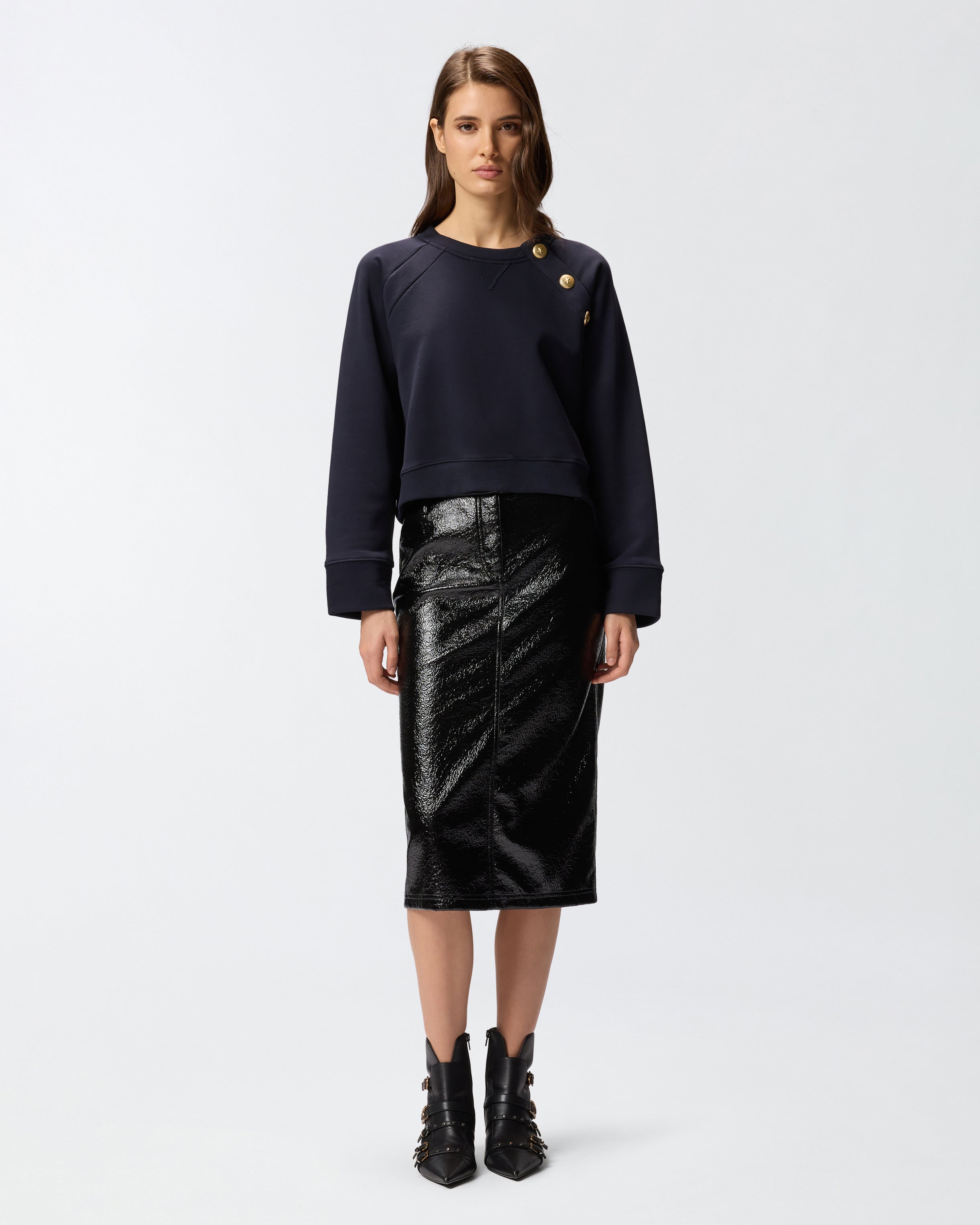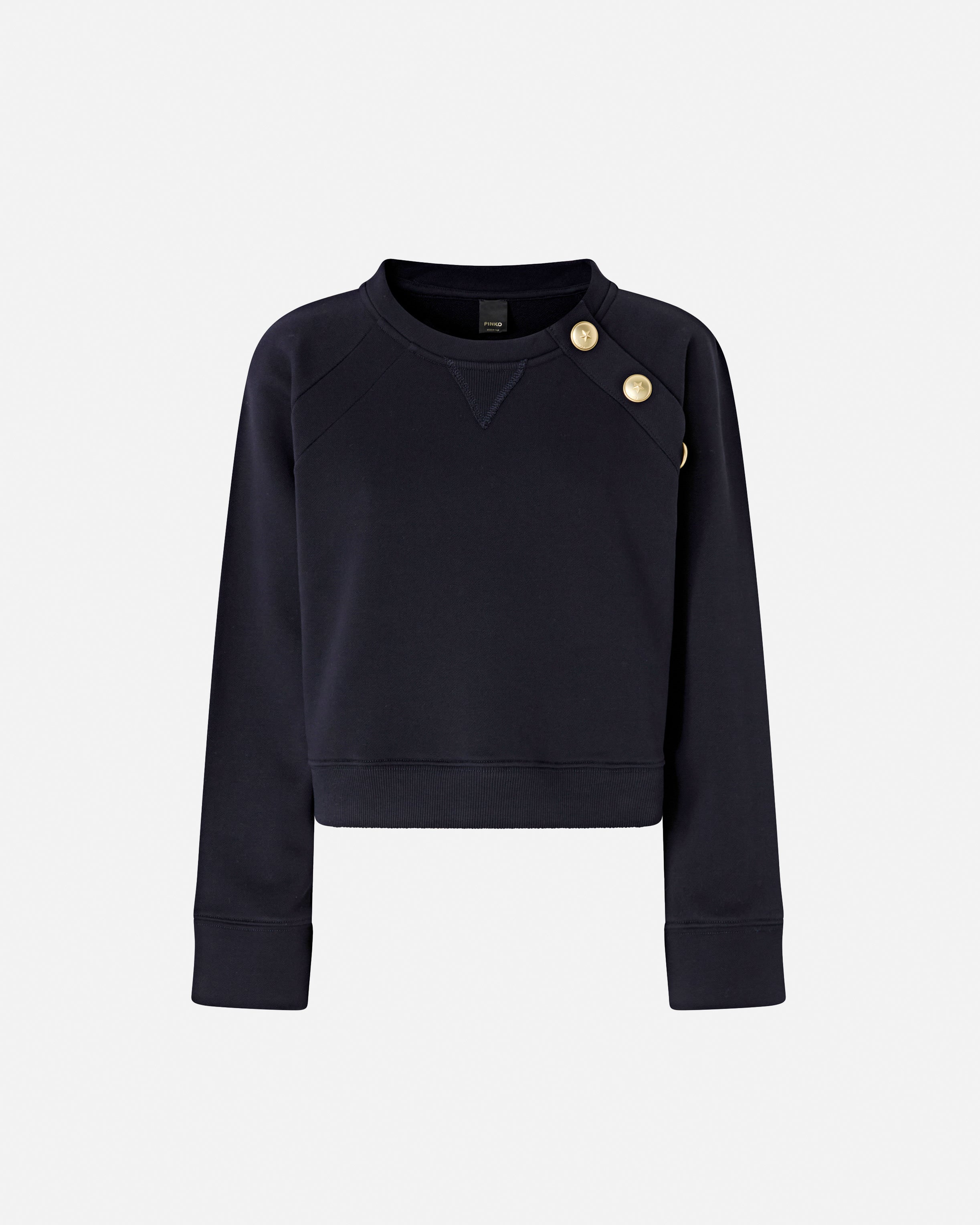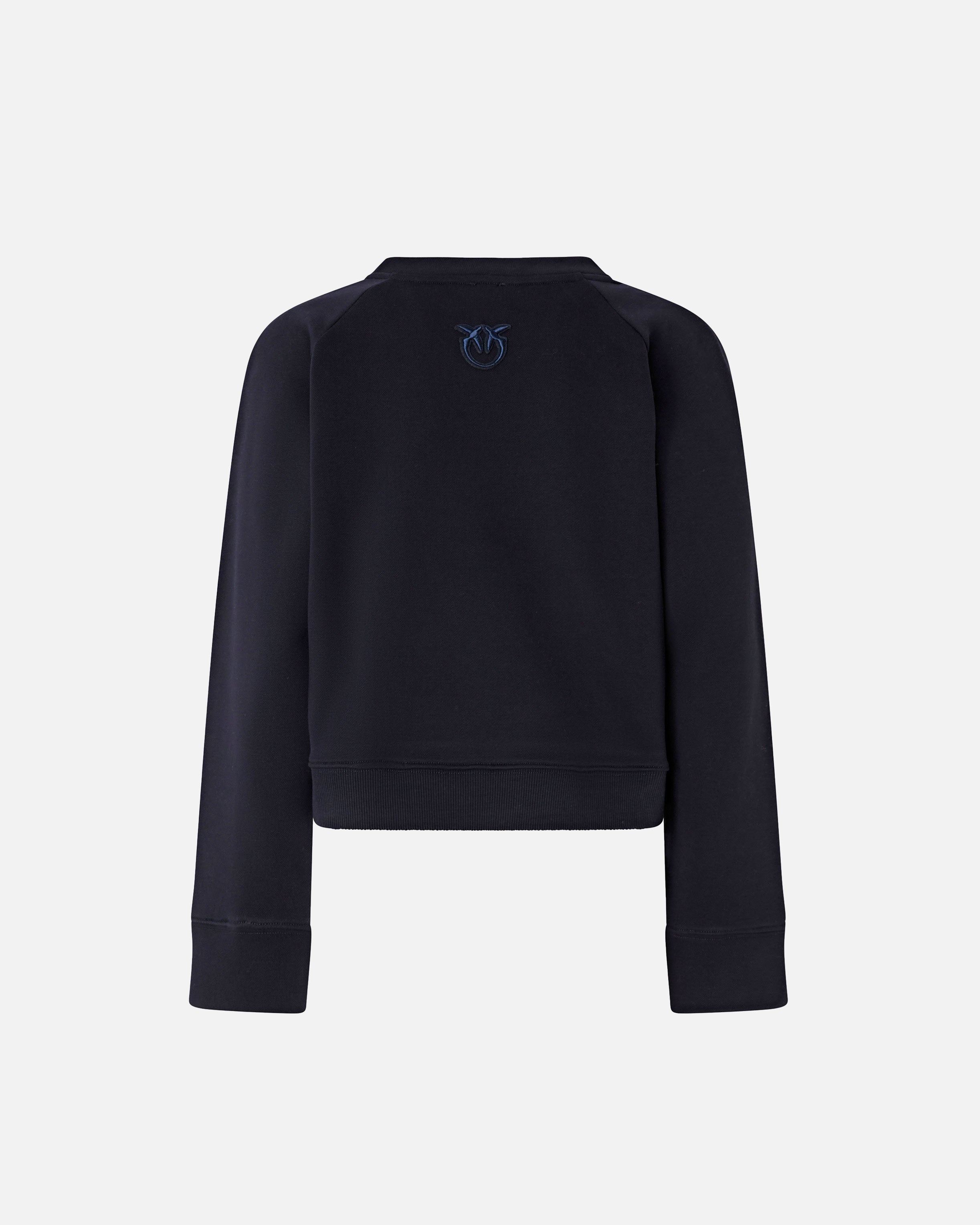 Felpa in cotone con maniche lunghe raglan e inserto triangolare a V in corrispondenza del girocollo. Il taglio delle spalle è chiuso da bottoni in metallo decorati da stella. Il retro è rifinito da una patch ricamata con logo Love Birds: un dettaglio personalizzato in puro stile PINKO. Indossa questo capo con i tuoi jeans preferiti per ottenere un look casual e contemporaneo.