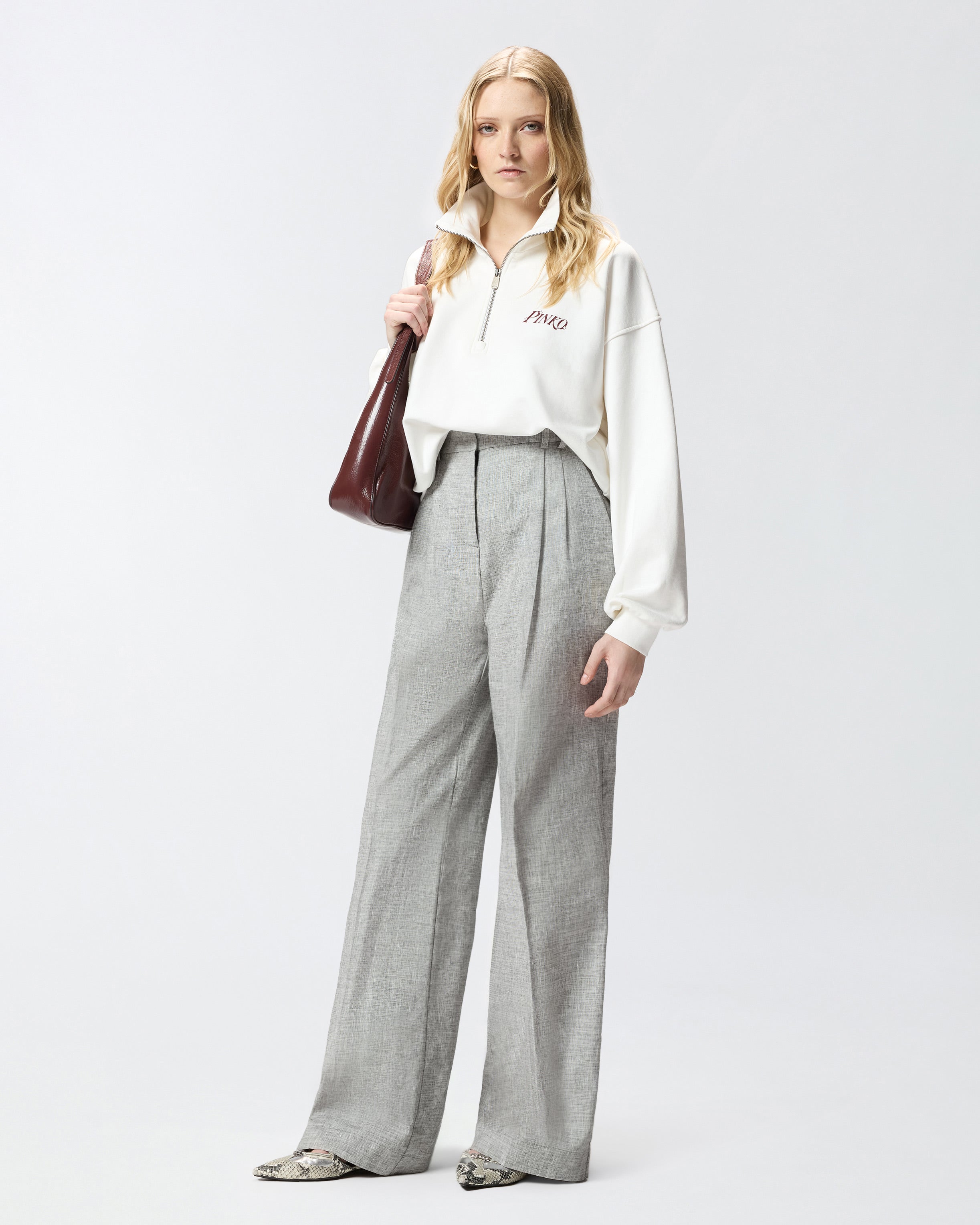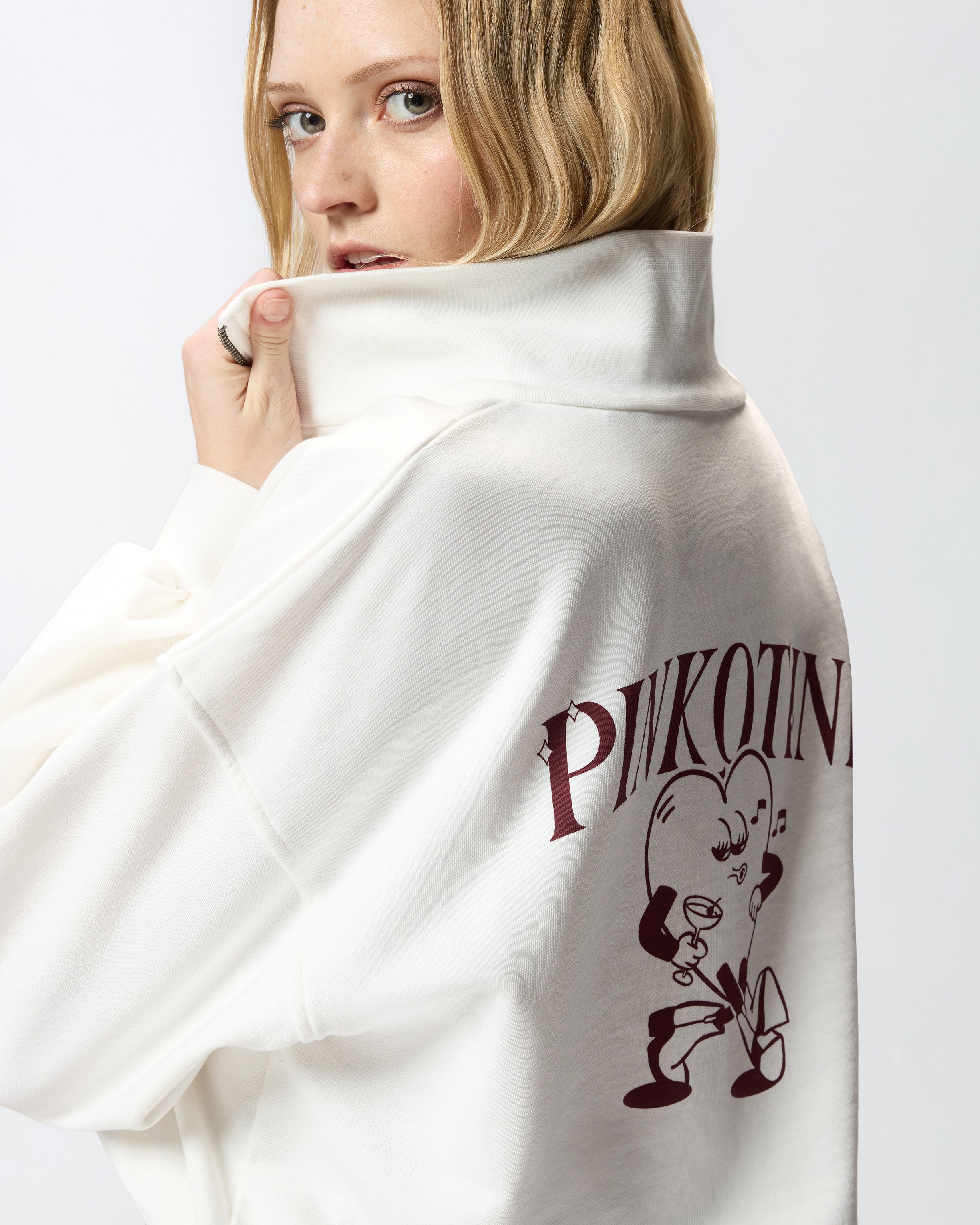 Felpa con maniche lunghe e spalla scesa realizzata in puro cotone e dotata di collo risvoltato con mezza zip e polsini e fondo capo elasticizzati. Il capo si distingue per il logo lettering PINKO stampato sul petto e per la maxi stampa sul retro raffigurante un cuore con cocktail accompagnato dal lettering PINKOTINI. La felpa è ideale per le giornate casual di inizio stagione, da indossare tutto il giorno per uno stile originale. - NIGHT MAGLIA