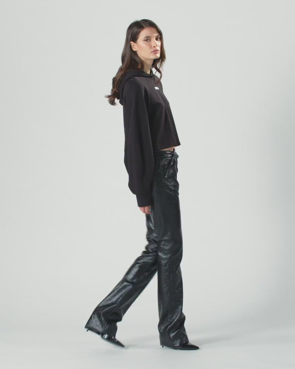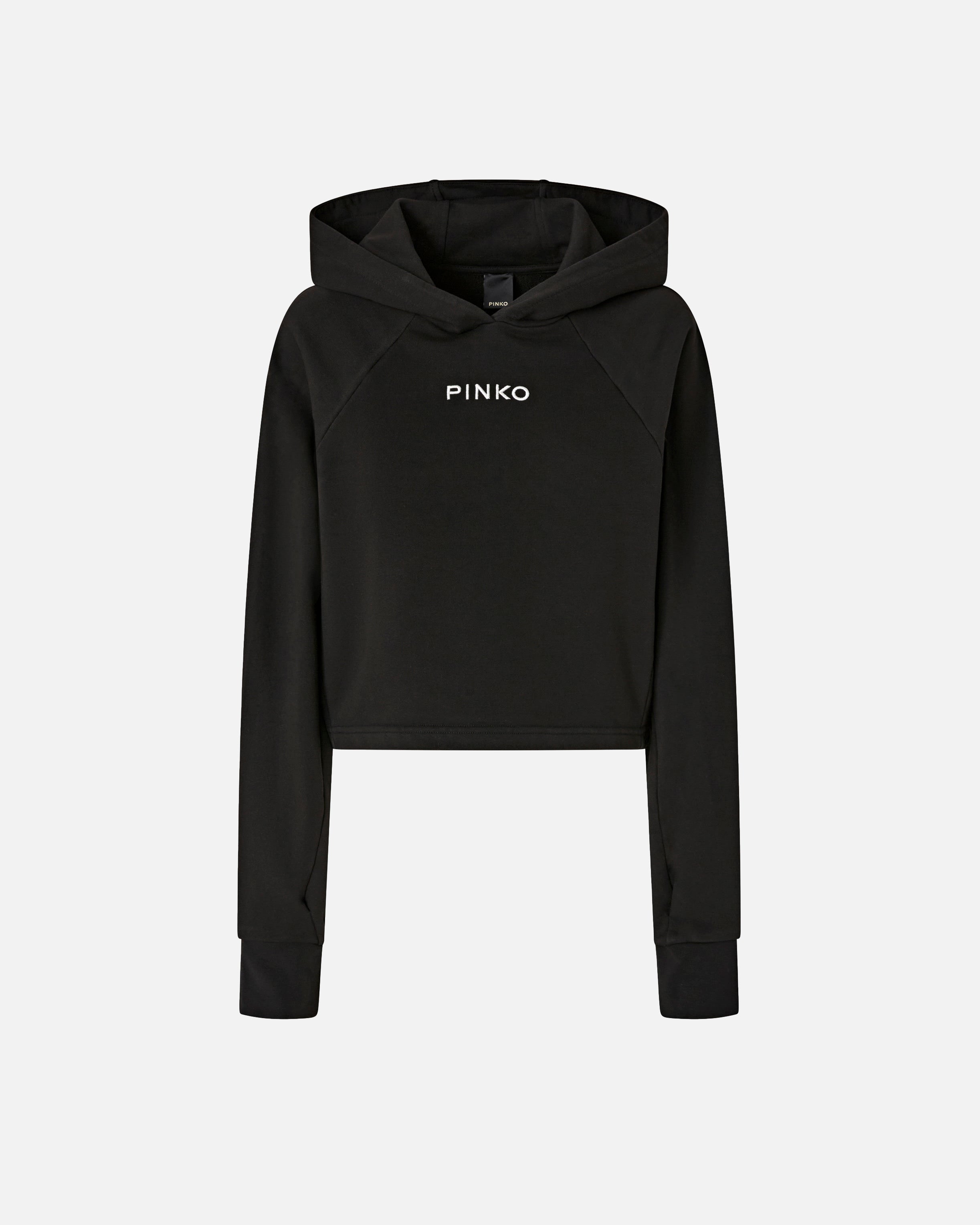 Felpa cropped in cotone con cappuccio e maniche lunghe dal taglio raglan, dotata di fondo e polsi in tessuto stretch. Il logo lettering PINKO ricamato a filo a contrasto rifinisce il capo con un tocco personalizzato. Crea il total look perfetto per l'ufficio abbinando il pantalone coordinato e una giacca sportiva per una femminilità all'insegna del comfort.