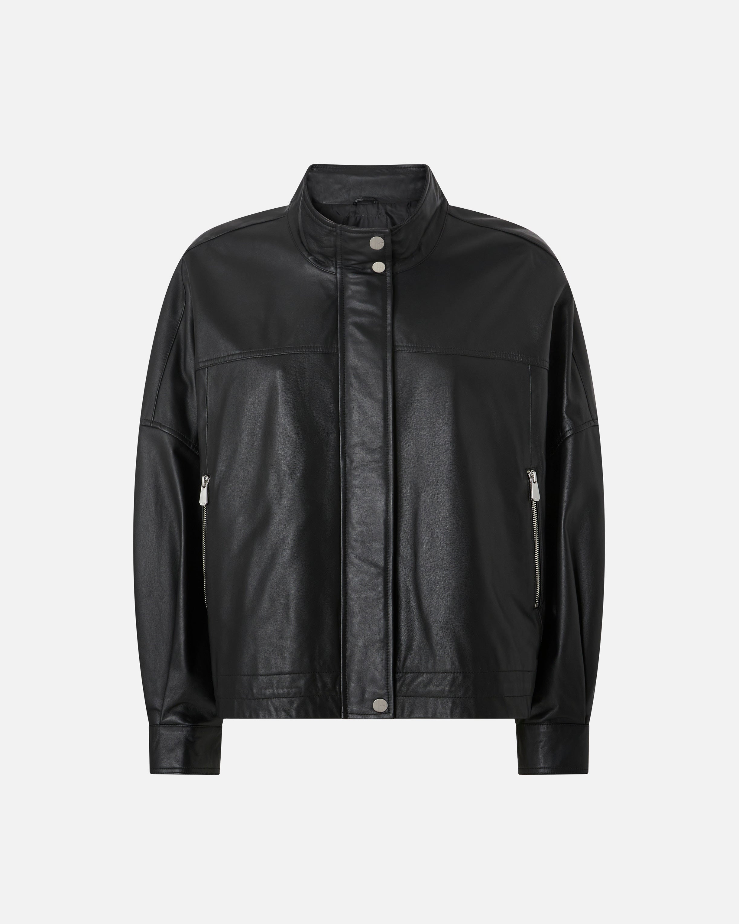 Giacca blouson con collo in piedi realizzata in morbida nappa dalla texture liscia. Il modello, dotato di due tasche laterali con zip, presenta una chiusura con zip nascosta completata da un bottone a fondo capo e due bottoni in corrispondenza del collo. Indossa la giacca con il tuo outfit quotidiano, o con un paio di jeans, per conquistare il cambio stagione con un tocco di stile che non passa inosservato. - BAILEE BLOUSON