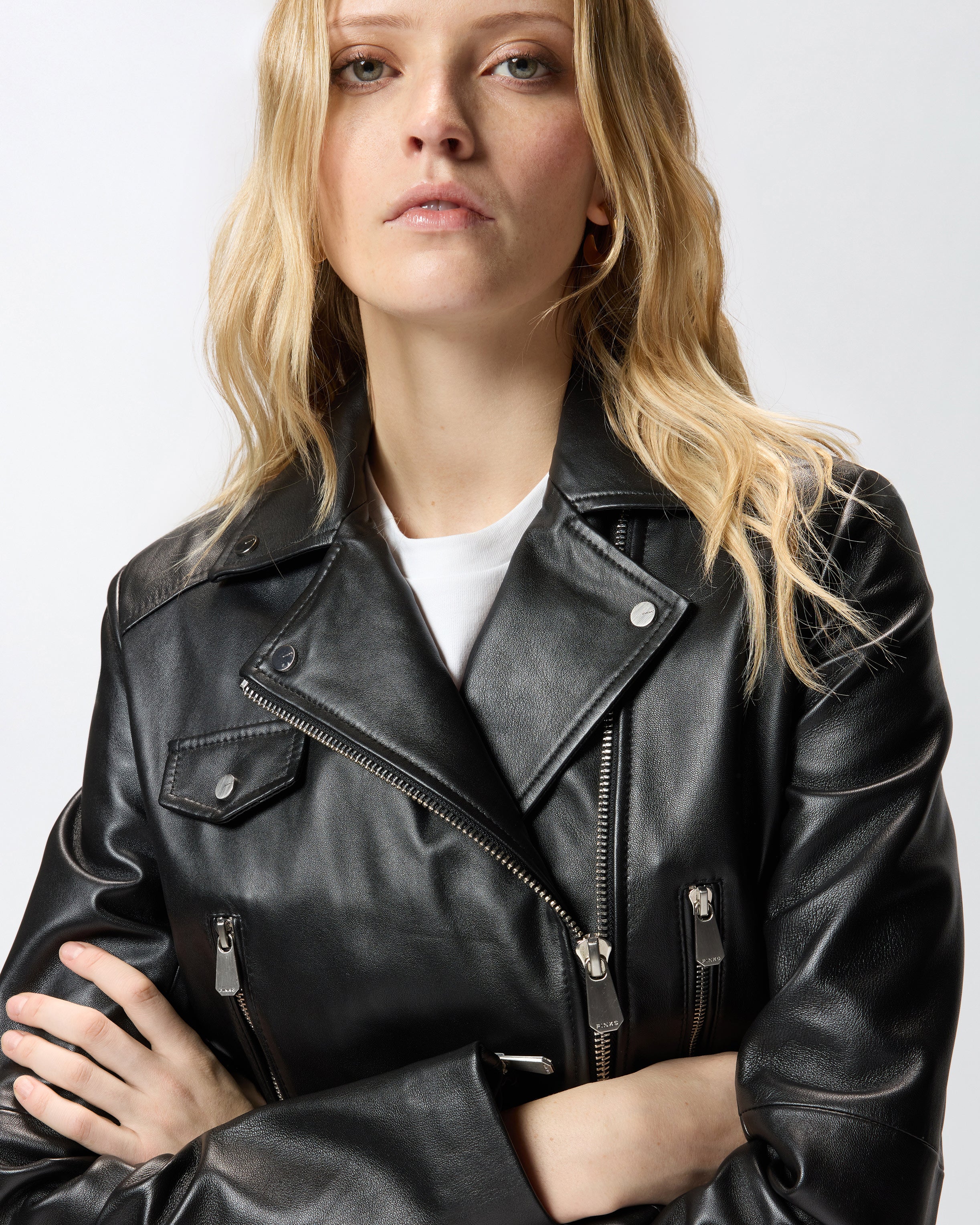 Giacca chiodo stile biker realizzata in morbida nappa e dotata di chiusura con zip decentrata. Il capo è caratterizzato da un ampio revers con bottoni, tasche verticali con zip sul davanti, un taschino sul petto con patta e bottone e comode aperture con zip ai polsi. Il design è rifinito dall'iconico logo Love Birds in rilievo sul retro. Questo giubbino è una reinterpretazione contemporanea del classico chiodo biker in pelle, ed è perfetto per completare i tuoi look con un tocco di grinta che non rinuncia alla femminilità. - NEW SENSIBILE CHIODO