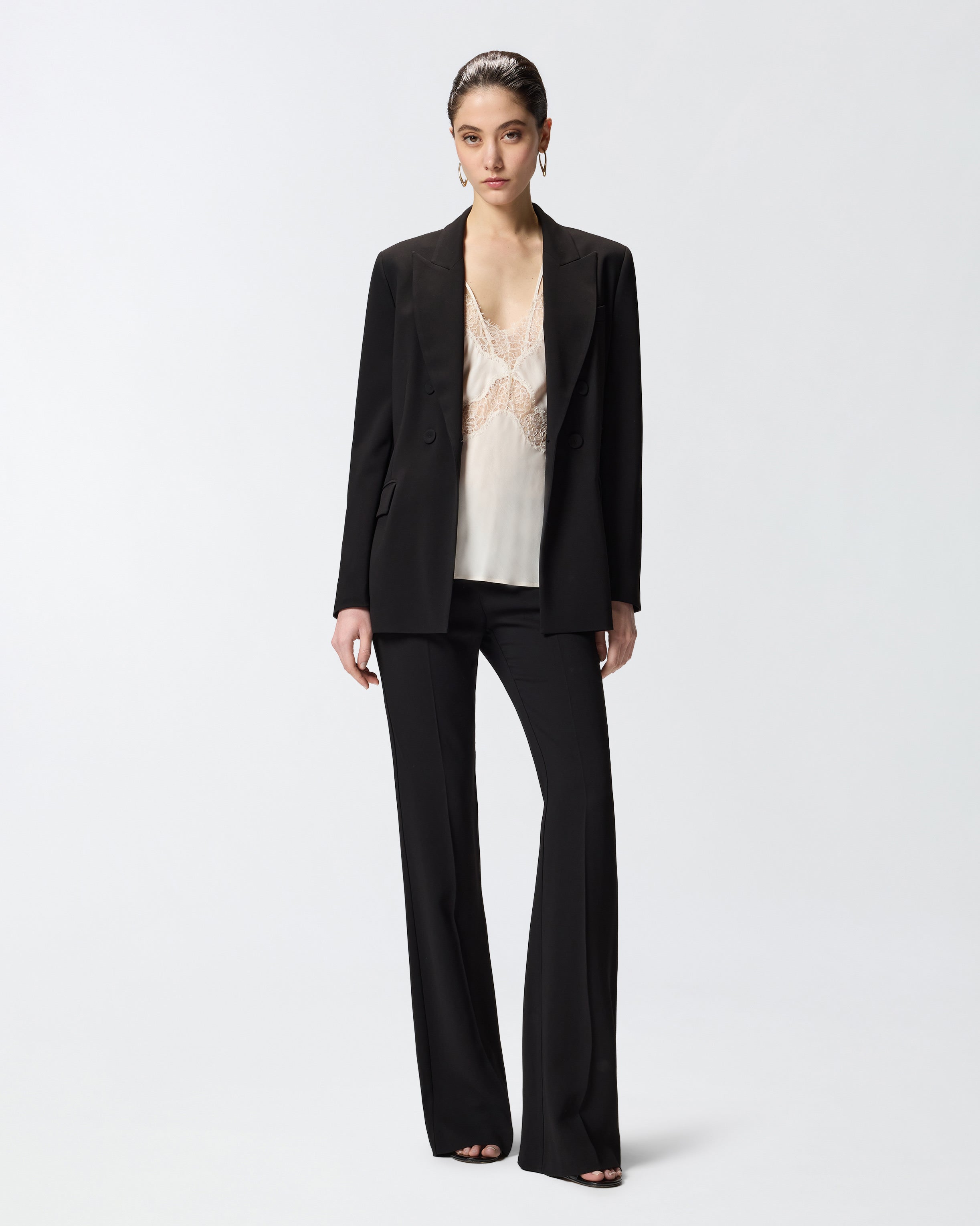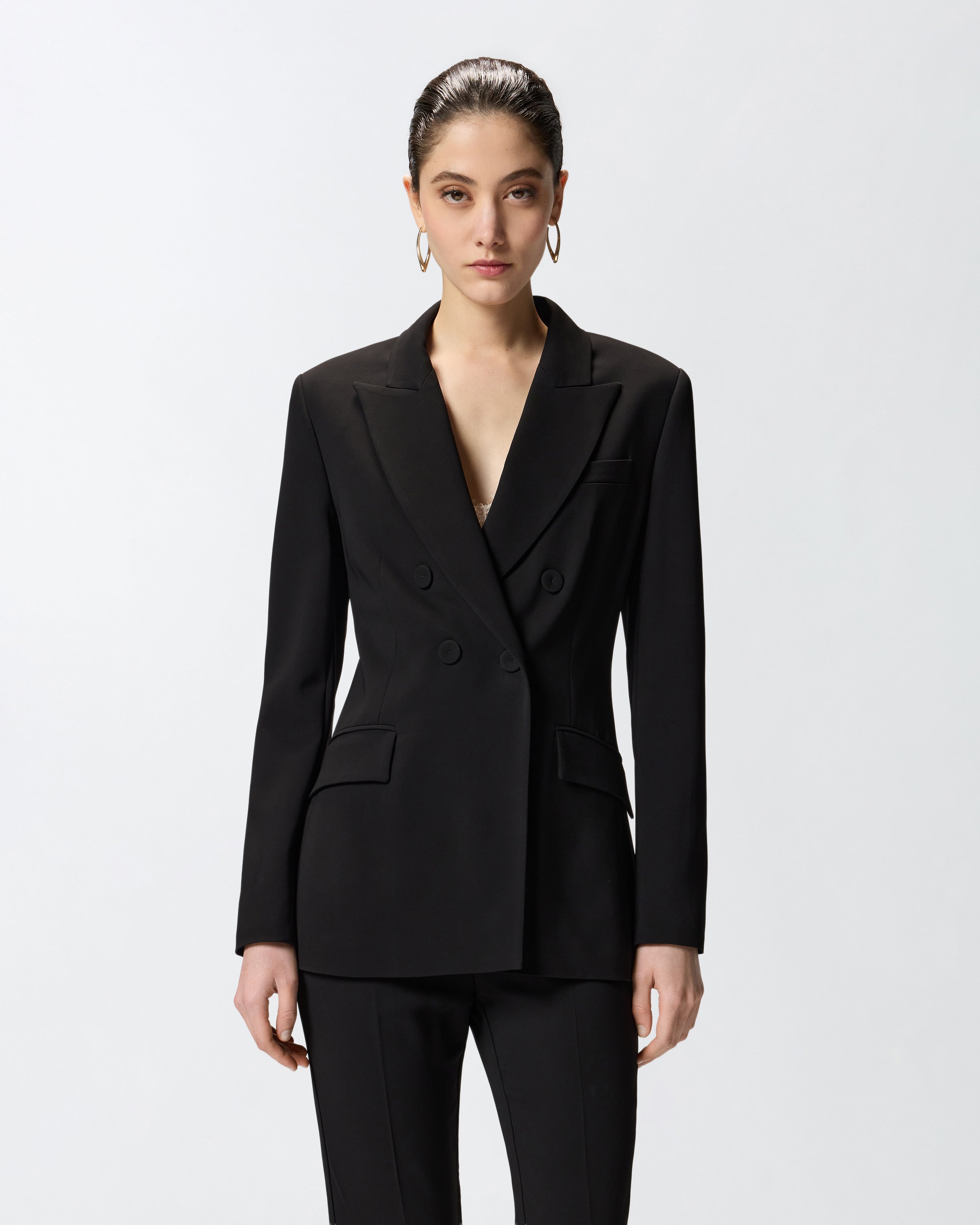 Giacca realizzata in viscosa stretch, tessuto iconico che richiama il classico cady, caratterizzato da una mano morbida e avvolgente che scivola con naturalezza sul corpo, definendo la silhouette con eleganza e offrendo una vestibilità impeccabile. Il capo, proposto con una linea sagomata un po' più aderente in vita e foderato per un indosso confortevole, presenta i dettagli classici dei blazer, come il collo con revers a lancia, le tasche laterali con patta e il taschino frontale lato cuore, ed è completato da una chiusura doppiopetto con bottoni ricoperti. Abbina questa giacca ai pantaloni coordinati per un total look elegante, oppure indossala con un paio di pantaloni più casual per un outfit spezzato. - GELATIERA GIACCA