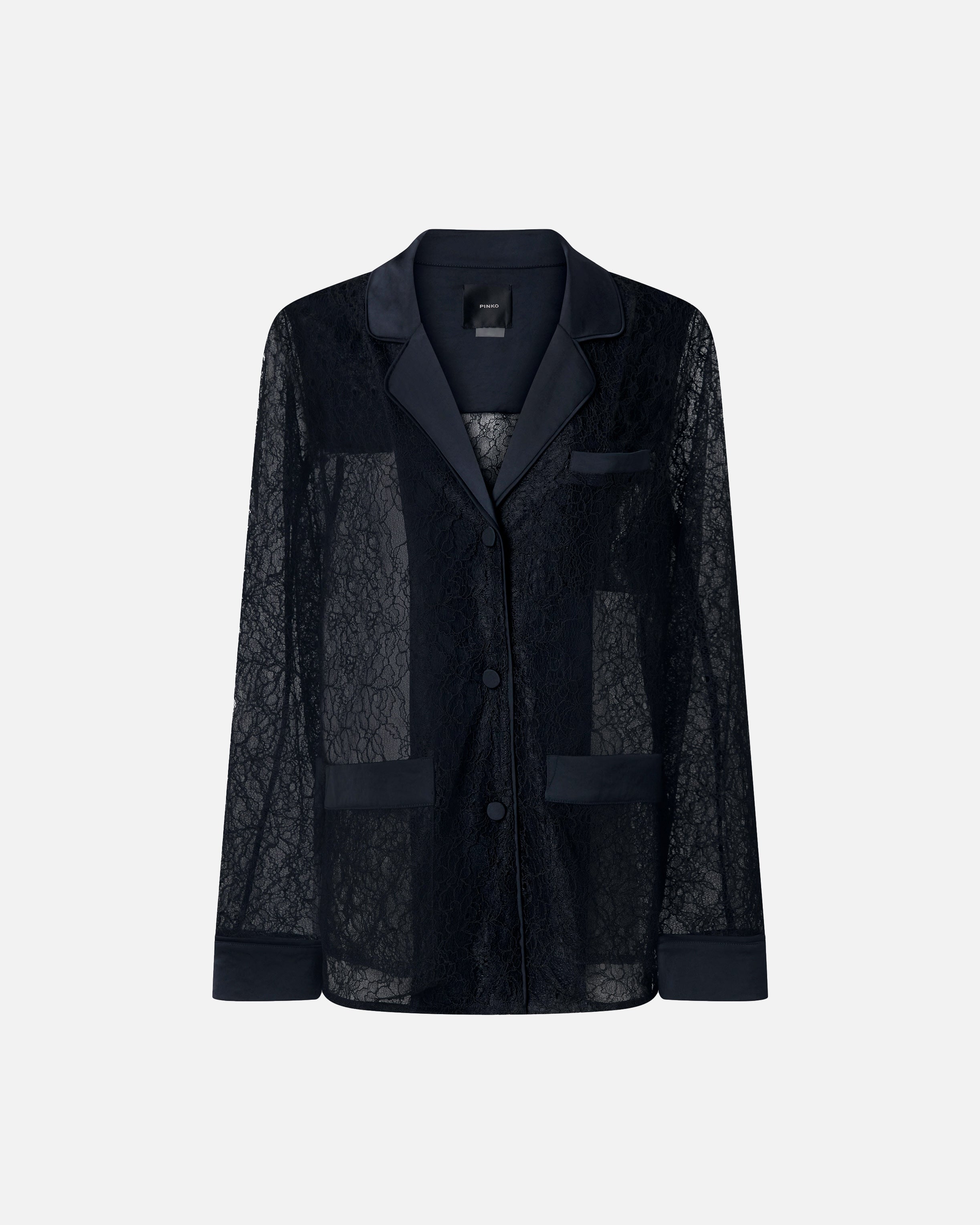 Giacca dalla linea dritta realizzata in leggero pizzo rebrodé con motivo floreale finemente lavorato. Il gioco di trasparenze e ombreggiature creato dal pizzo è perfettamente bilanciato dalla silhouette pulita ed essenziale del capo e dalle rifiniture in satin, ben visibili sul collo a revers, sui polsi, sui bottoni frontali ricoperti e sul bordo superiore delle tasche inferiori applicate e del taschino sul petto. Indossa questo blazer con i pantaloni coordinati per creare un total look ideale per le occasioni speciali, oppure abbinalo a capi più casual per un outfit quotidiano che non rinuncia a un pizzico di sensualità.