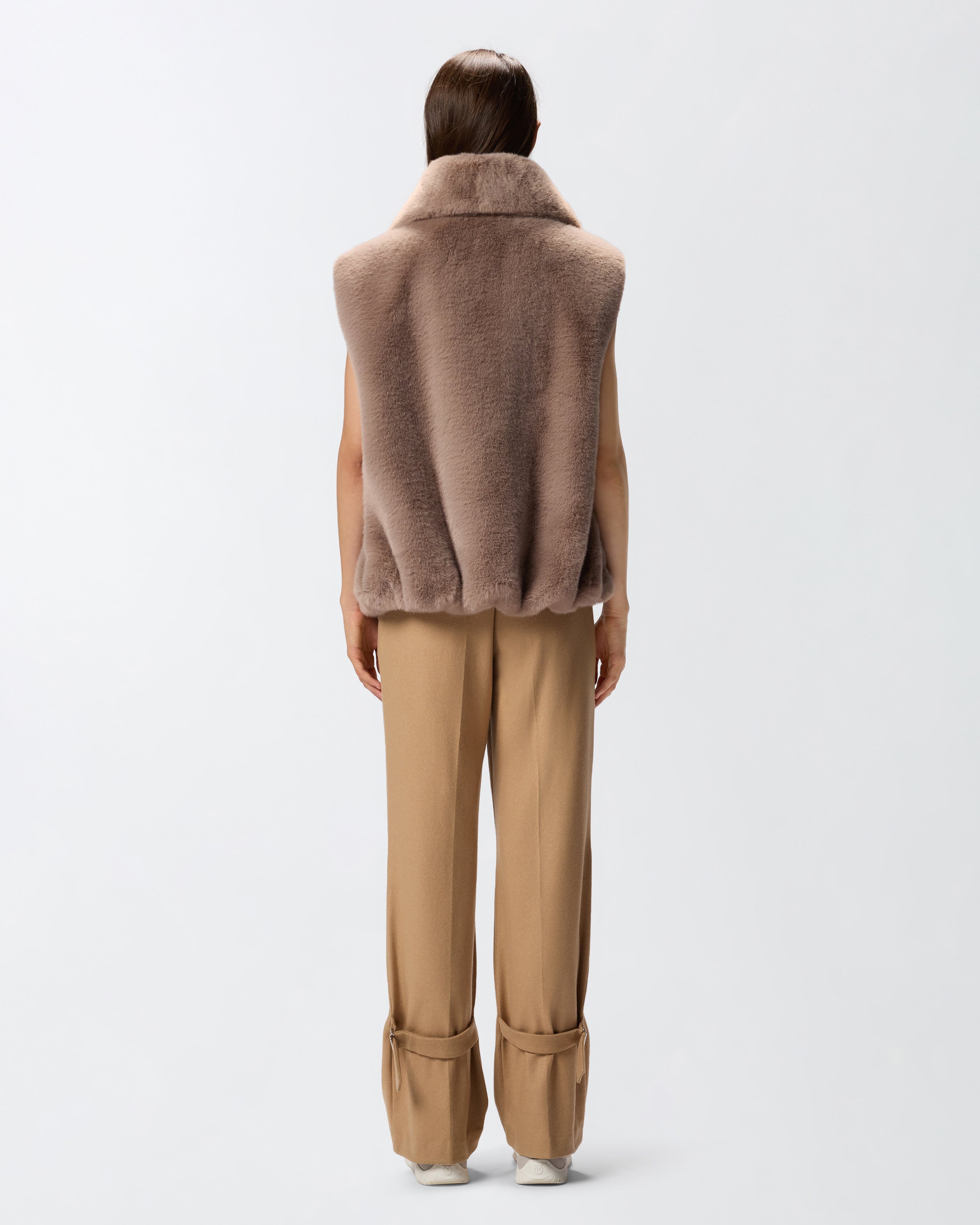 Gilet realizzato in tessuto Aspen effetto pelliccia con collo alto, chiusura a zip intera sul davanti e pratiche tasche laterali. Affronta le giornate più fredde in pieno stile PINKO con questo design d'impatto del guardaroba invernale. Il capo risulta particolarmente versatile, abbinalo con facilità a una gonna raffinata o a dei jeans per le occasioni più informali.