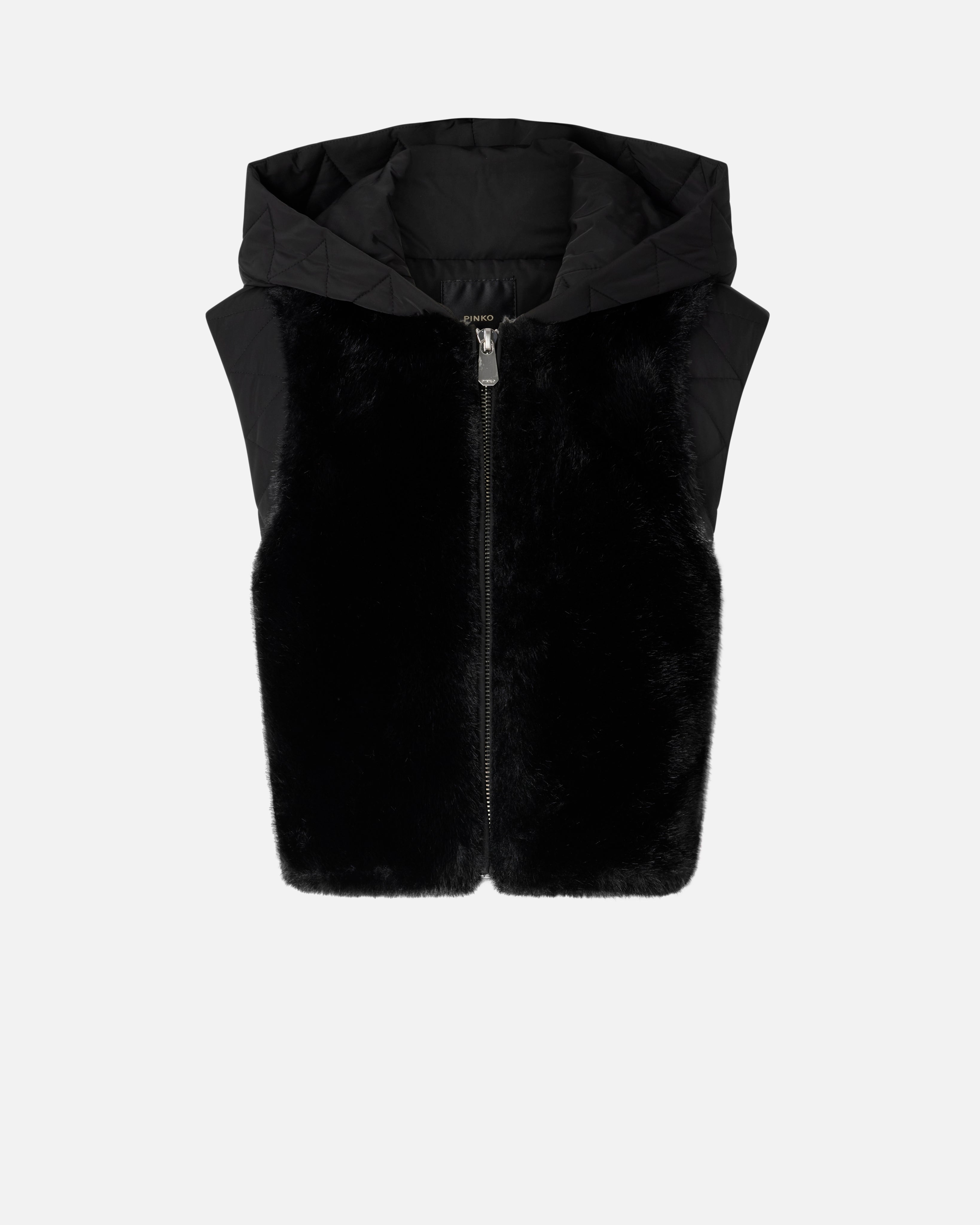 Gilet imbottito dal taglio cropped, realizzato in morbido tessuto Aspen effetto pelliccia e rifinito da cappuccio e bordature in tela tecnica. Il capo fonde perfettamente due materiali diversi che in questo contesto giocano in un connubio di morbidezza e tecnicità per un capo da utilizzare nell'attacco stagione. Il capospalla è ideale per accompagnarti nelle giornate più fresche di inizio stagione all'aperto, con il massimo comfort, senza rinunciare a un tocco di stile.