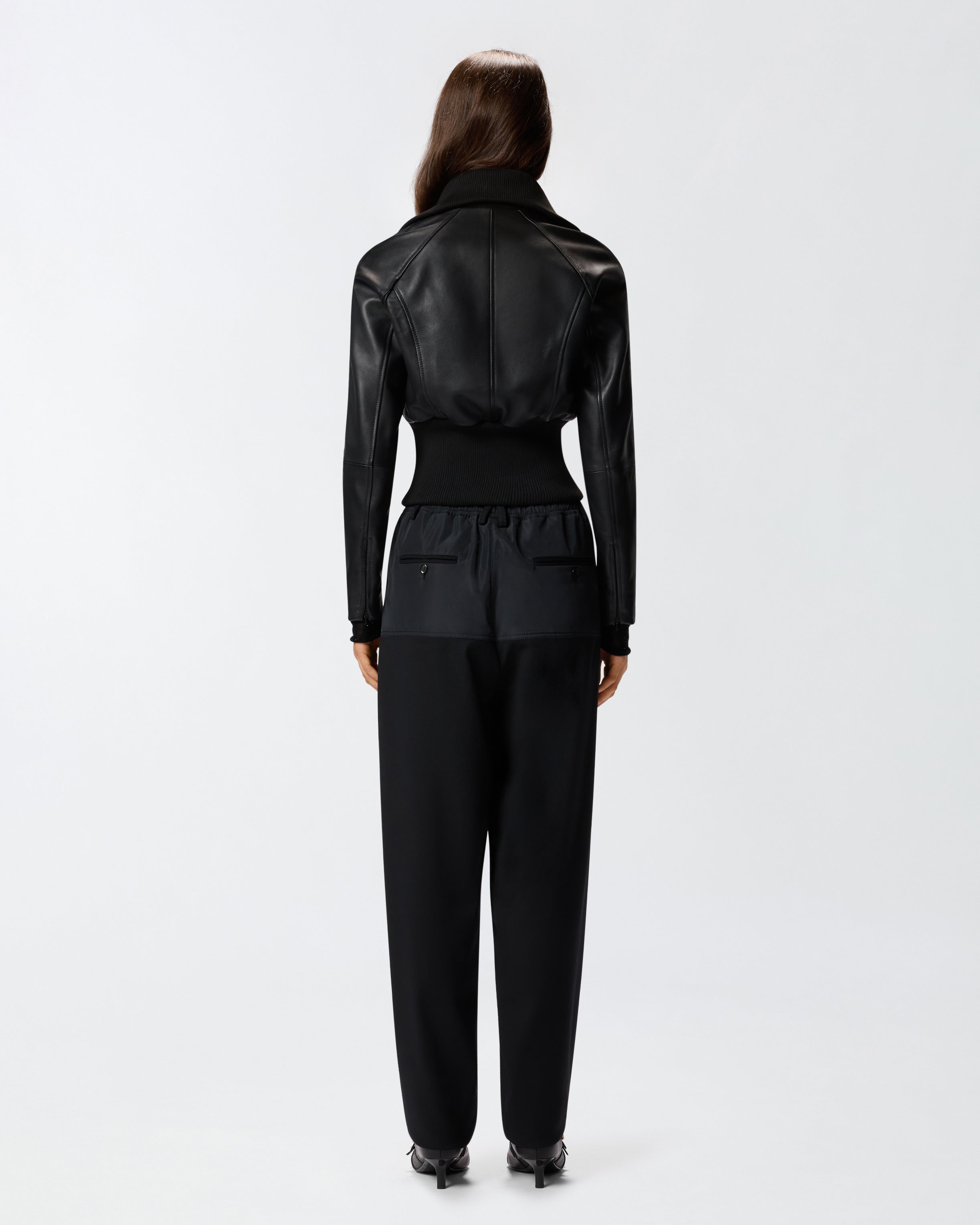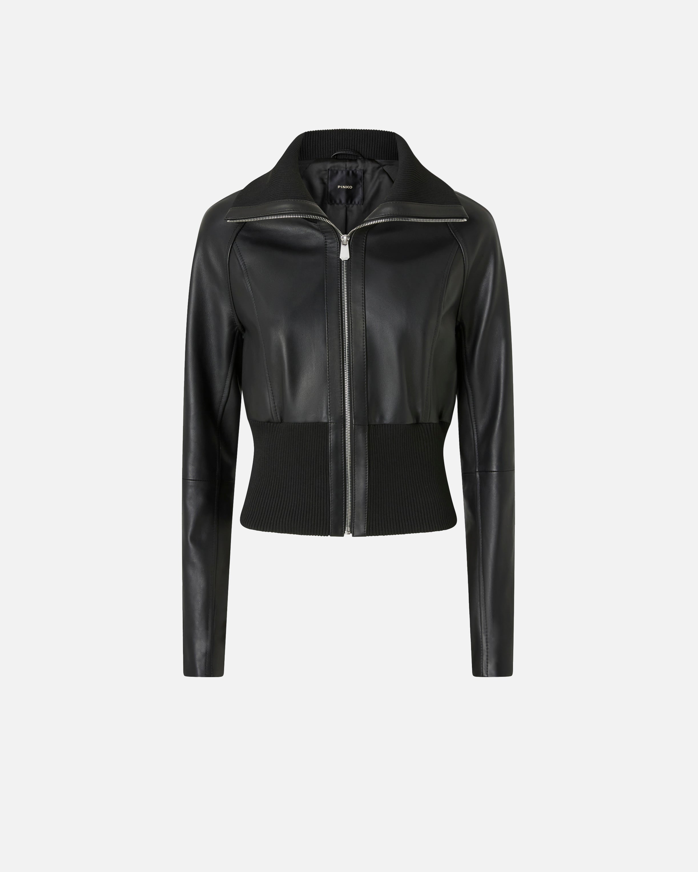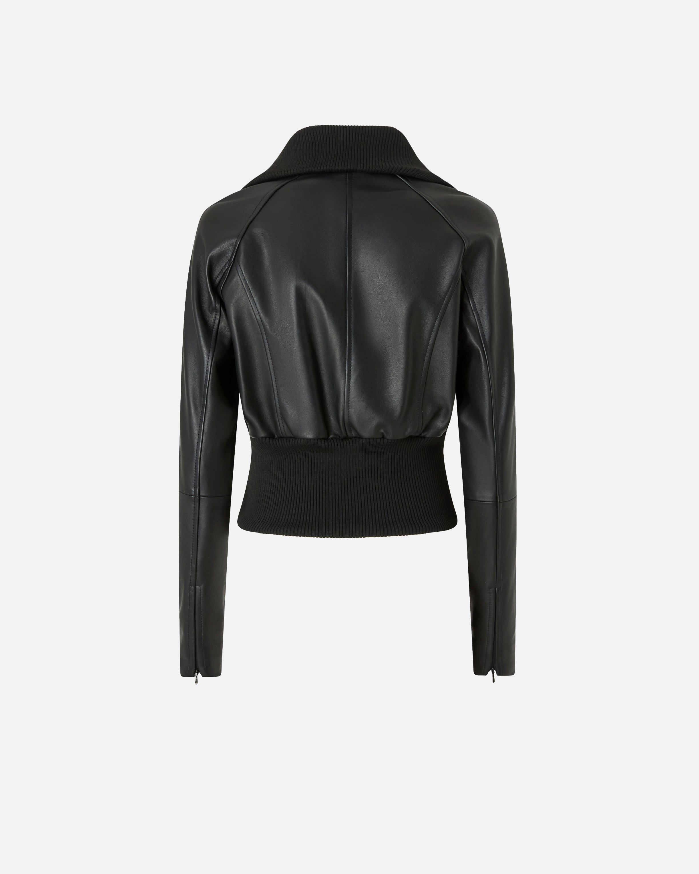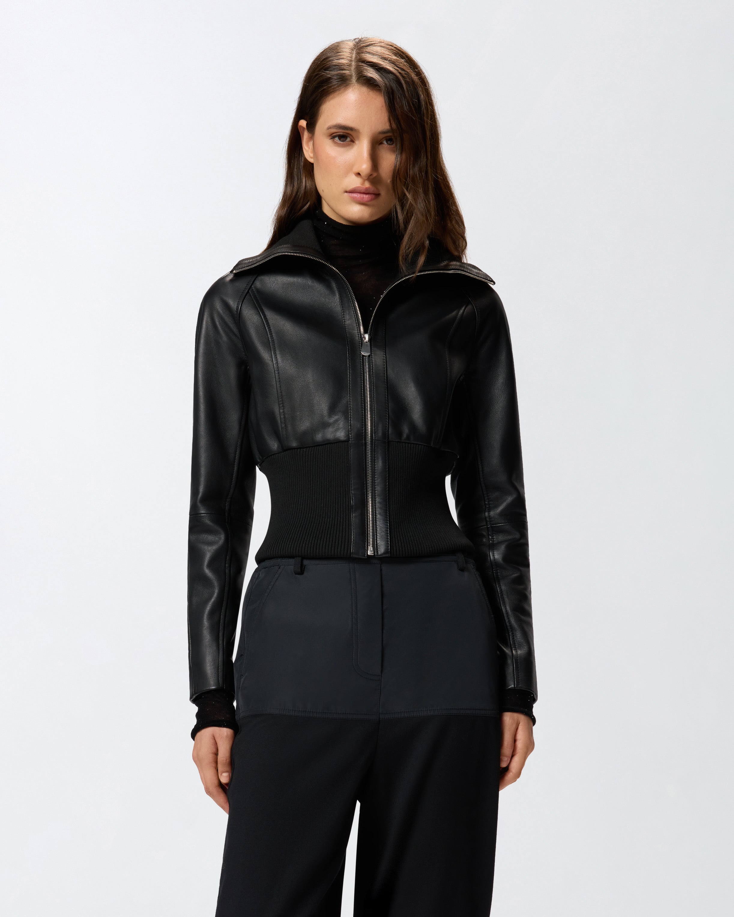 Giubbino corto dalla linea aderente e femminile, caratterizzato da corpo in morbida nappa abbinato a un maxi bordo inferiore in maglia lavorata a costine. Anche il collo molto alto, perfetto per ripararti dai primi freddi del cambio stagione, è realizzato in confortevole maglia a costine. Chiusura con zip in metallo davanti. Il biker è un capo must da avere nel guardaroba, il capospalla ideale per affrontare il cambio stagione con grinta e un tocco davvero bold.