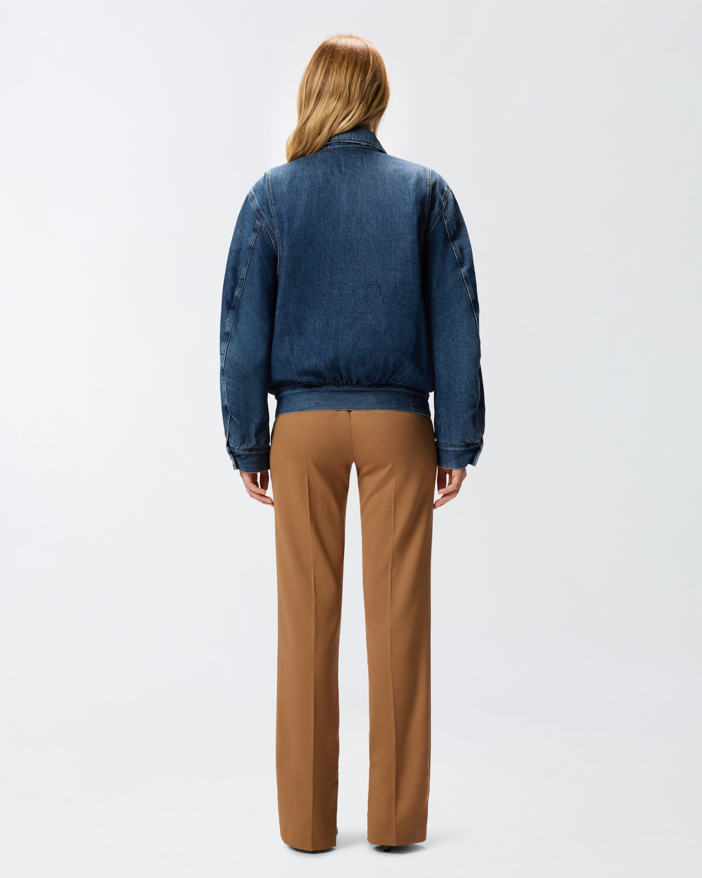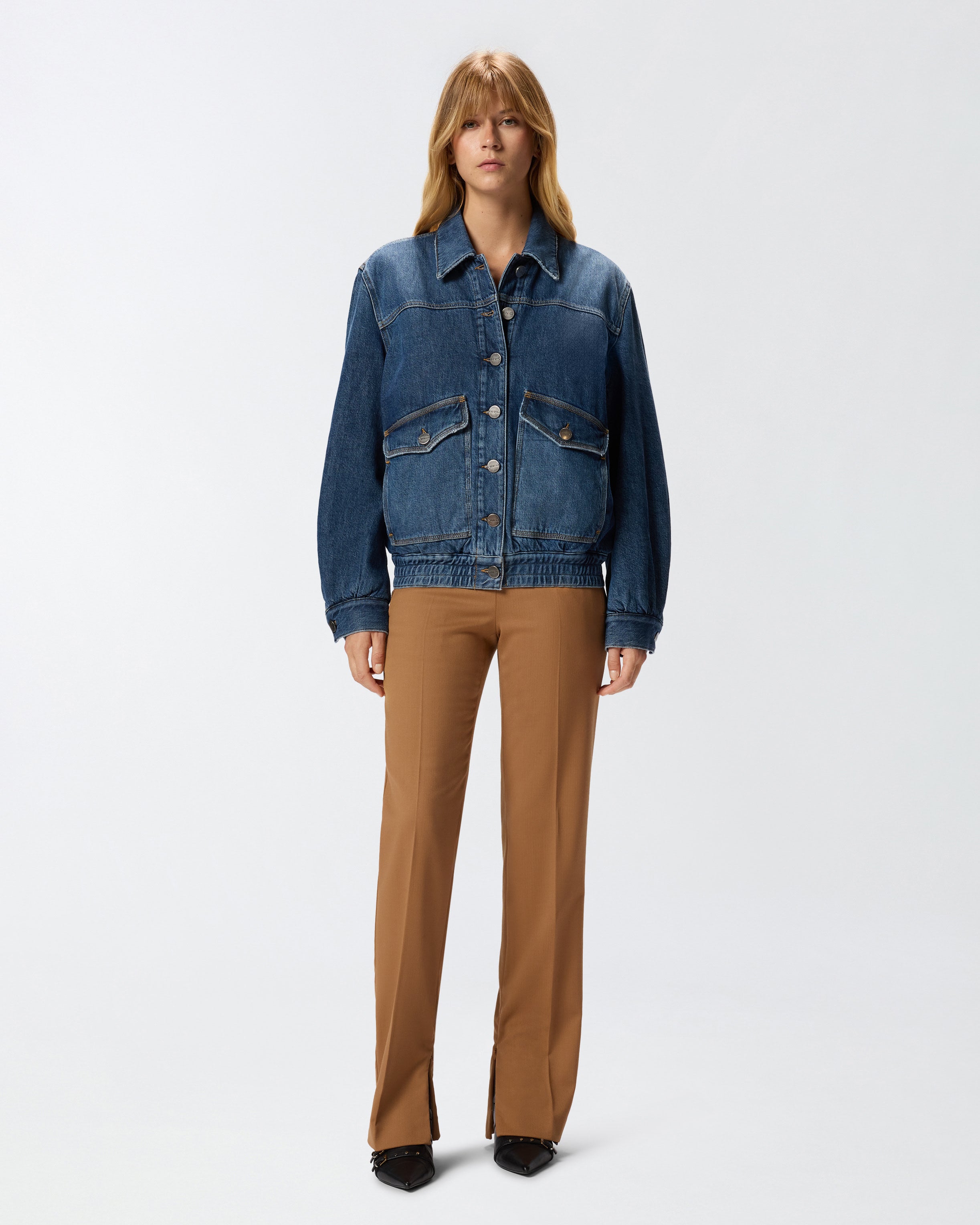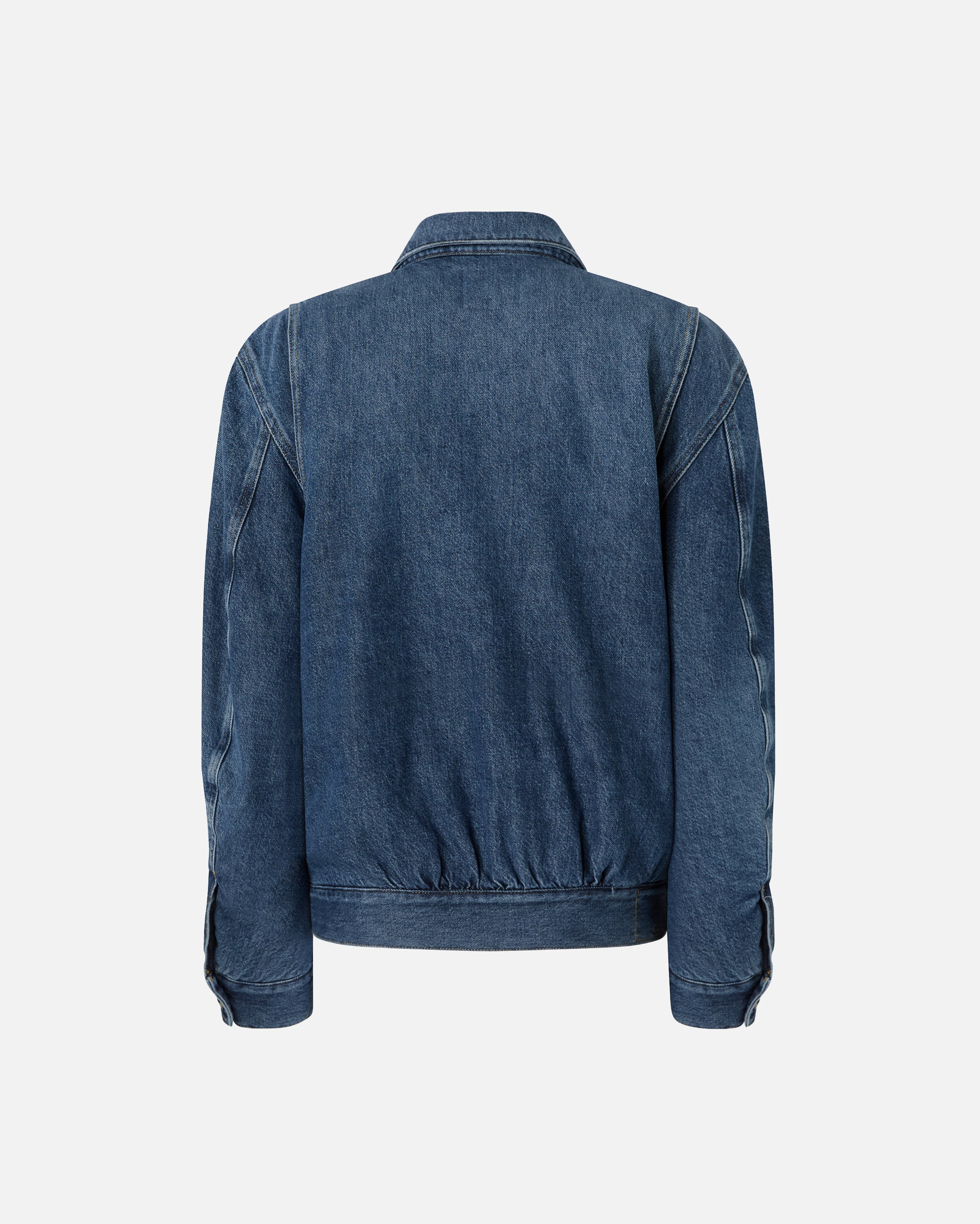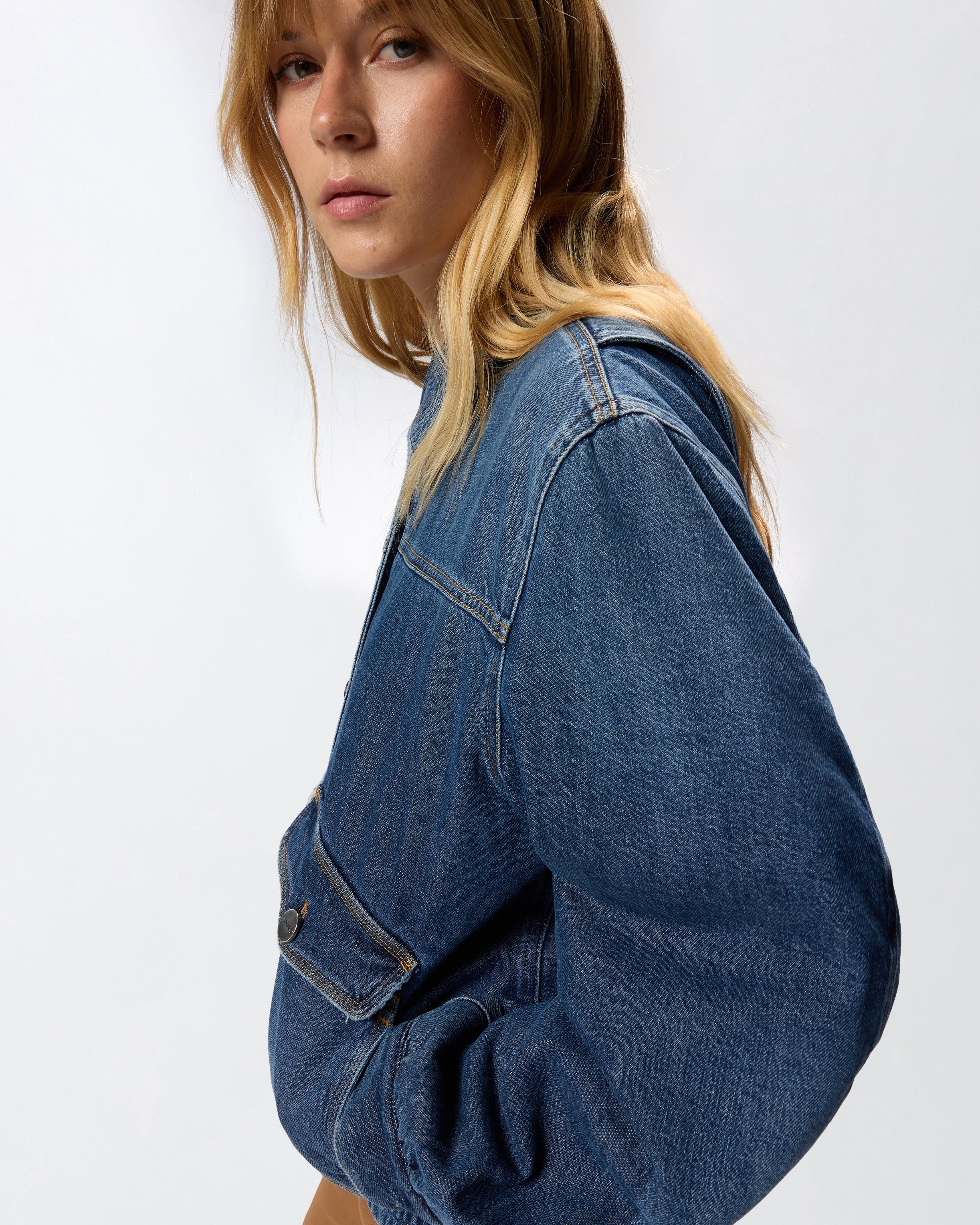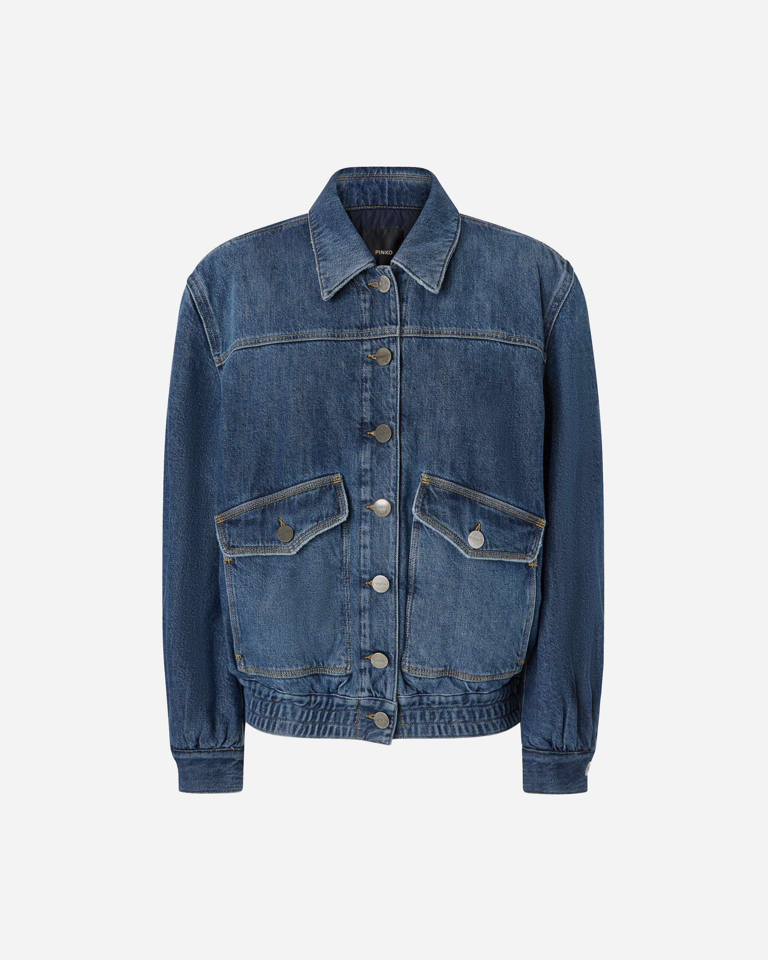 Giubbino d'ispirazione bomber dalla vestibilità over realizzato in denim di cotone e lyocell per conferire maggiore fluidità al tessuto. Il modello è dotato di collo a camicia, tasche frontali oblique con patta e bottone, e polsi elasticizzati. L'interno della giacca è foderato in tessuto, per garantire una vestibilità perfetta. Chiusura con bottoni davanti. Indossa questo capo con i tuoi jeans preferiti per un total look che non ti farà passare inosservata.