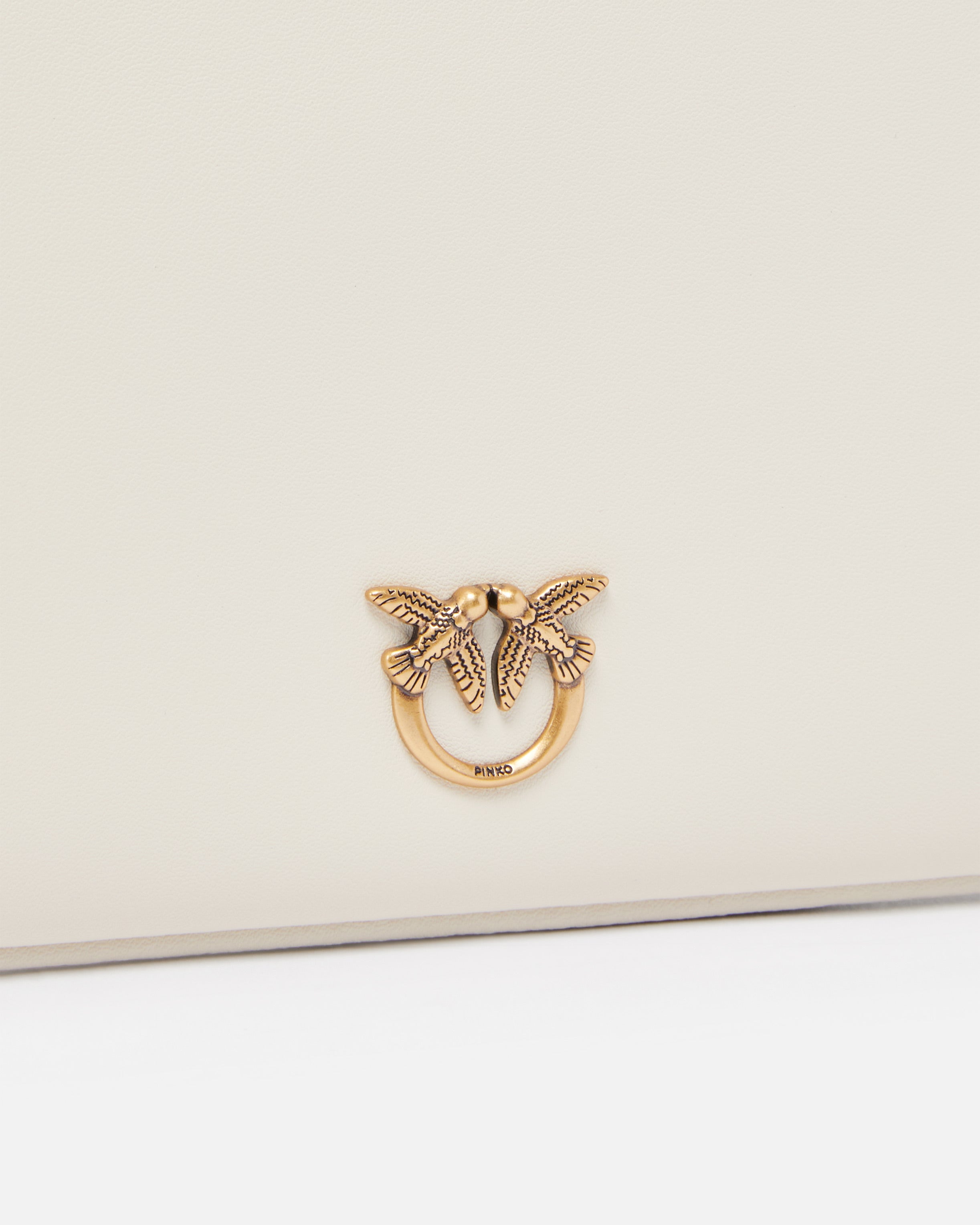 Borsa a tracolla flat dalla linea allungata in morbida pelle mano seta. Personalizzazione con placchetta Love Birds Diamond Cut, galvanica antique gold. Interno foderato in polycotton e tracolla a catena sottile. Chiusura con zip. Attiva la tua borsa PINKO: verifica l'autenticità del tuo prodotto e accedi all'esperienza personalizzata avvicinando il tuo smartphone al ricamo Love Birds che trovi sul retro della borsa!