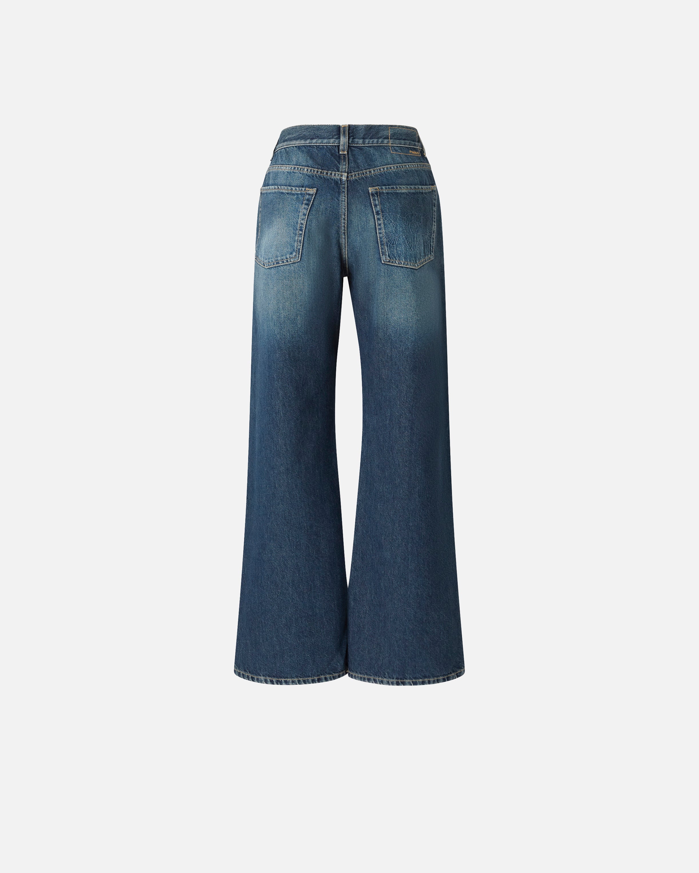 Jeans cinque tasche da donna con silhouette wide leg dalla gamba dritta e ampia, realizzati in soft denim di cotone e lyocell per una mano più fluida e trattati con lavaggio stone wash. A personalizzare il design in puro stile PINKO troviamo il logo lettering del brand ricamato sul retrocinta, il logo Love Birds con uccellini ricamati sulla tasca posteriore destra e il passante rimovibile con logo Love Birds. Gioca con gli abbinamenti e indossa questi jeans con la vita scesa e il cavallo basso per un look più maschile, oppure combinali con capi più femminili per uno stile che punta sui contrasti. Passanti per cintura e chiusura frontale con bottone e zip nascosta. Il modello veste in modo un po' più ampio rispetto alla taglia abituale.