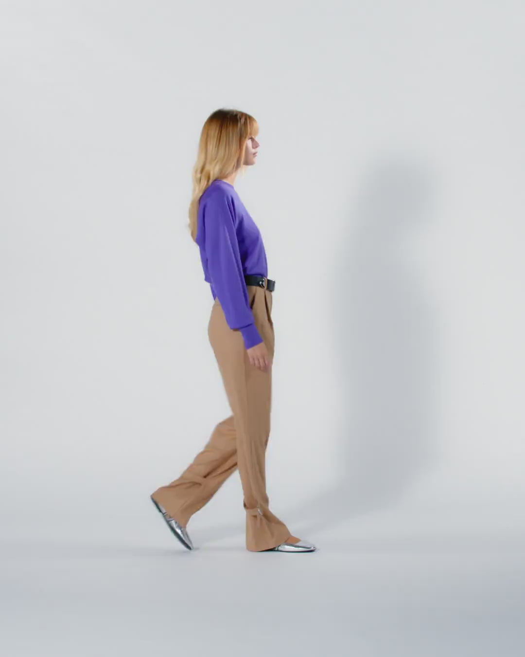 Maglia girocollo a maniche lunghe in pura lana merino, estremamente leggera e versatile. La parte frontale è caratterizzata dall'iconico logo Love Birds sotto forma di intarsio in trasparenza lavorato con tecnica dévoré che esprime appieno il DNA del brand. Il retro del capo, invece, sfoggia una cucitura a vista che ricorda la forma di un carré. Girocollo, orlo e polsini sono lavorati a coste. Il capo è stato sottoposto a prove di finissaggio per ridurre al minimo la possibile formazione di pilling, garantendo una maggiore morbidezza e durabilità del tessuto.