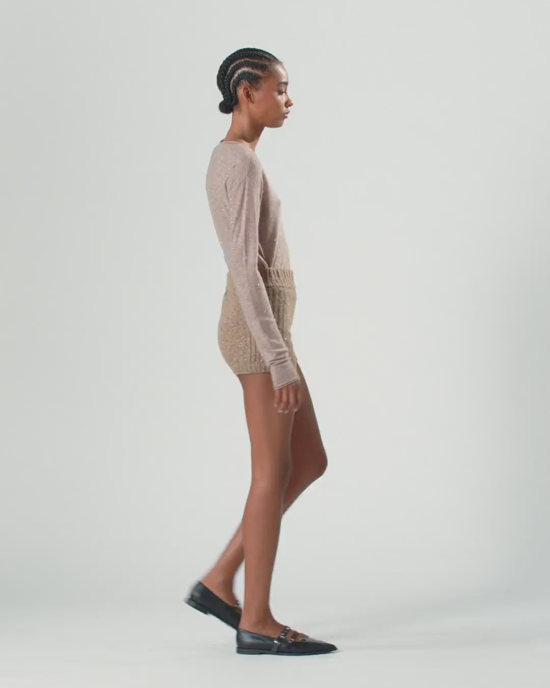 Maglia con scollo a V realizzata in misto lana semitrasparente: un filato leggero e morbido, quasi impalpabile, che contribuisce a creare un look sensuale e appariscente. Il design è impreziosito da micro paillettes inserite nel filo e risulta al tempo stesso luminoso, essenziale e molto comodo all'indosso. Il capo è stato sottoposto a prove di finissaggio per ridurre al minimo la possibile formazione di pilling, garantendo una maggiore morbidezza e durabilità del tessuto. Il tocco finale è dato dall'etichetta con logo lettering PINKO sul retro.