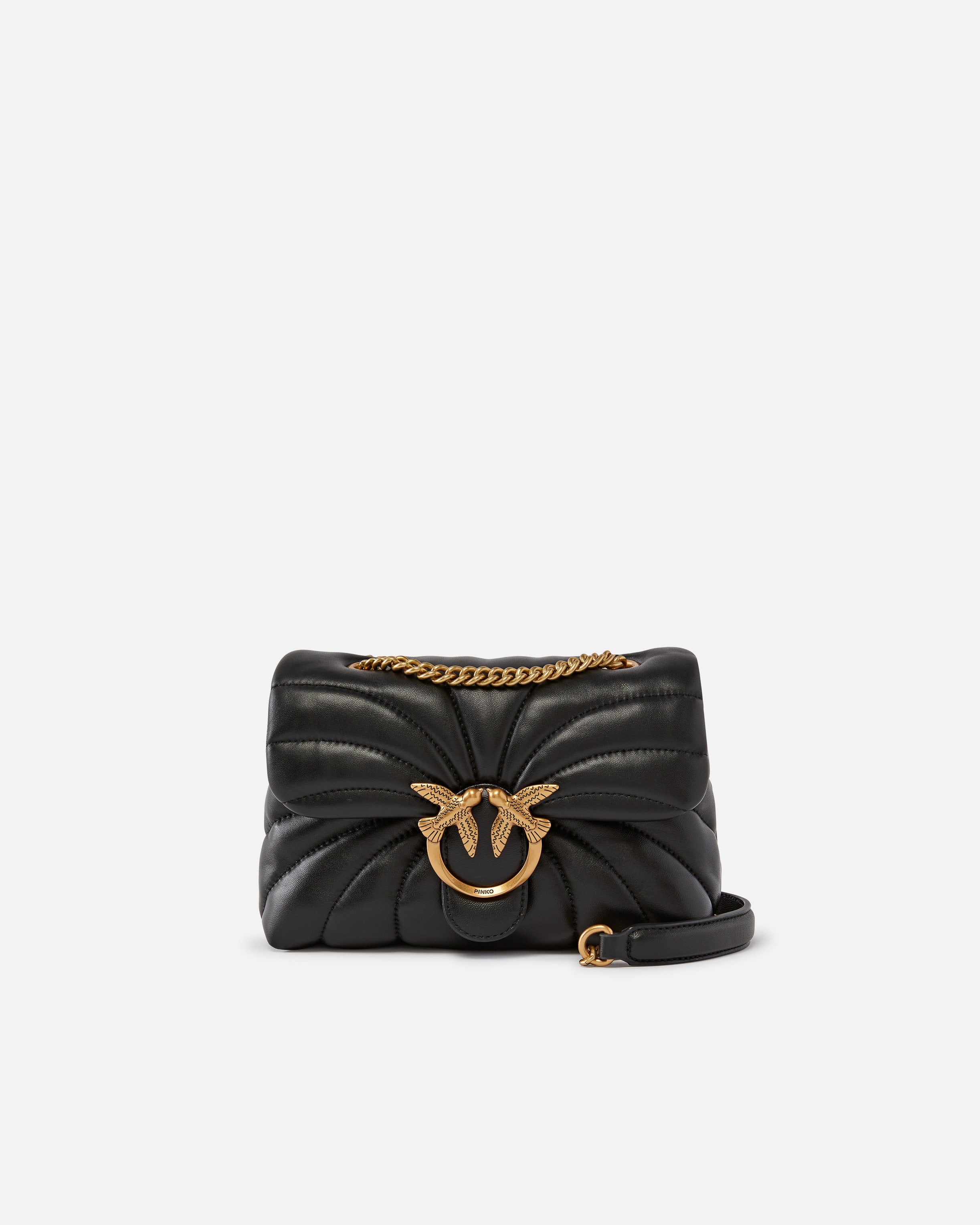 Borsa piccola morbida a tracolla Mini Love Bag Puff in nappa con trapuntatura Butterfly, che ricorda la caratteristica sagoma delle ali di farfalla. La tracolla a catena in metallo con spallaccio in nappa è scorrevole, e può essere doppiata per indossare la borsetta a spalla. La chiusura con patta è completata dall'iconica fibbia in metallo Love Birds Diamond Cut, galvanica antique gold. L'interno è foderato in microfibra scamosciata e comprende una pratica tramezza chiusa con zip e una tasca interna, per una migliore gestione dello spazio. Attiva la tua borsa PINKO: verifica l'autenticità del tuo prodotto e accedi all'esperienza personalizzata avvicinando il tuo smartphone al ricamo Love Birds che trovi sul retro della borsa!