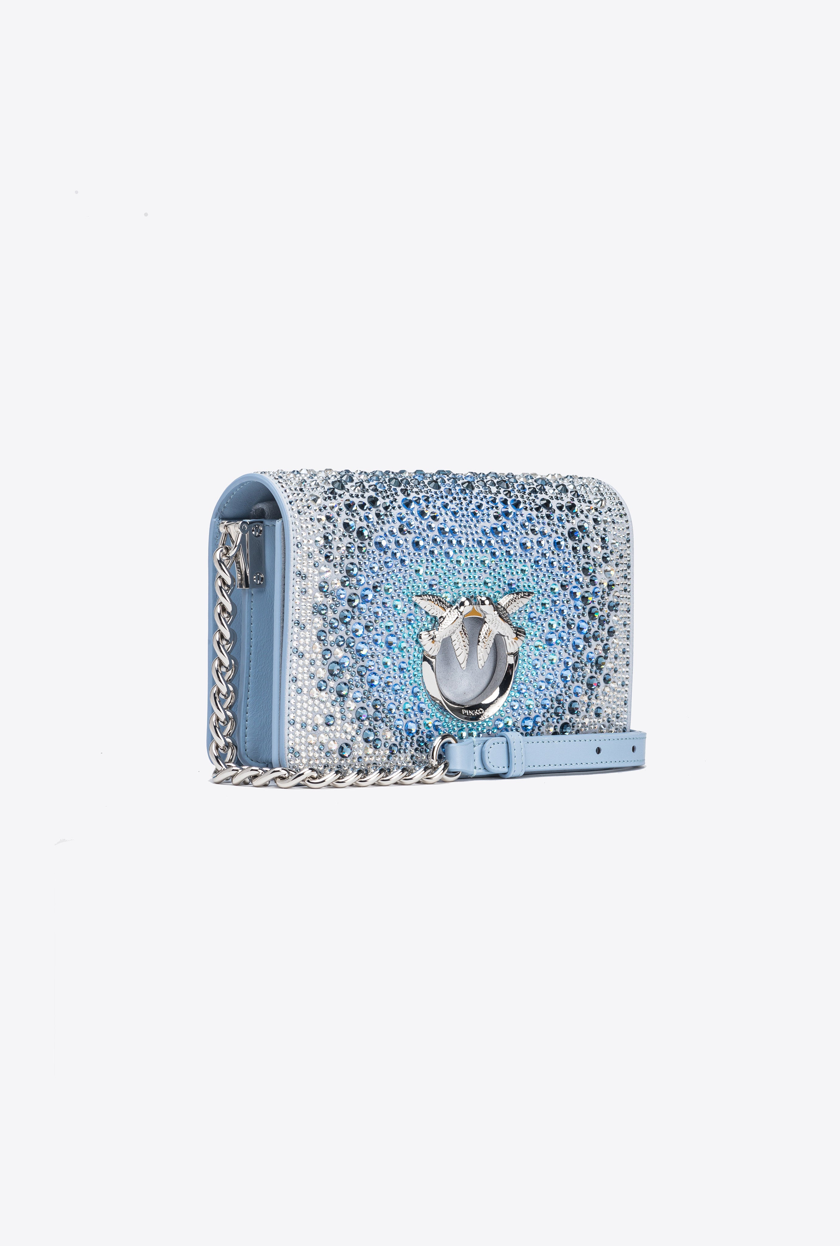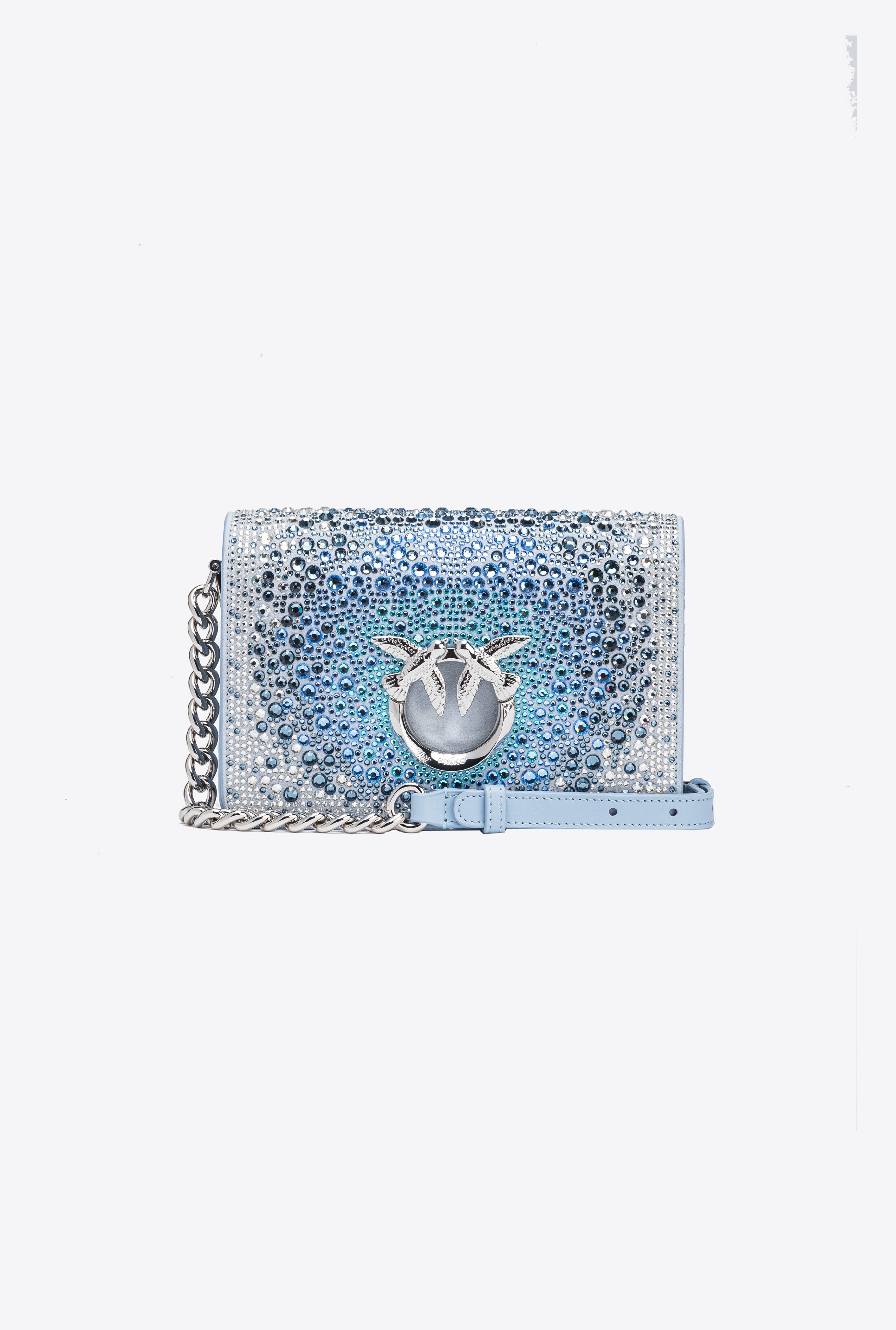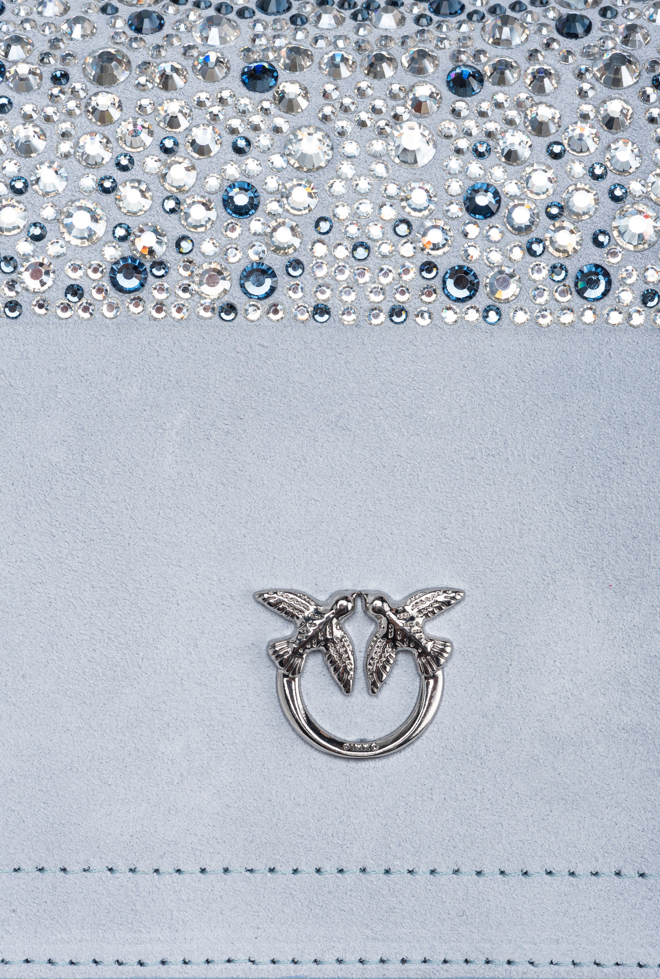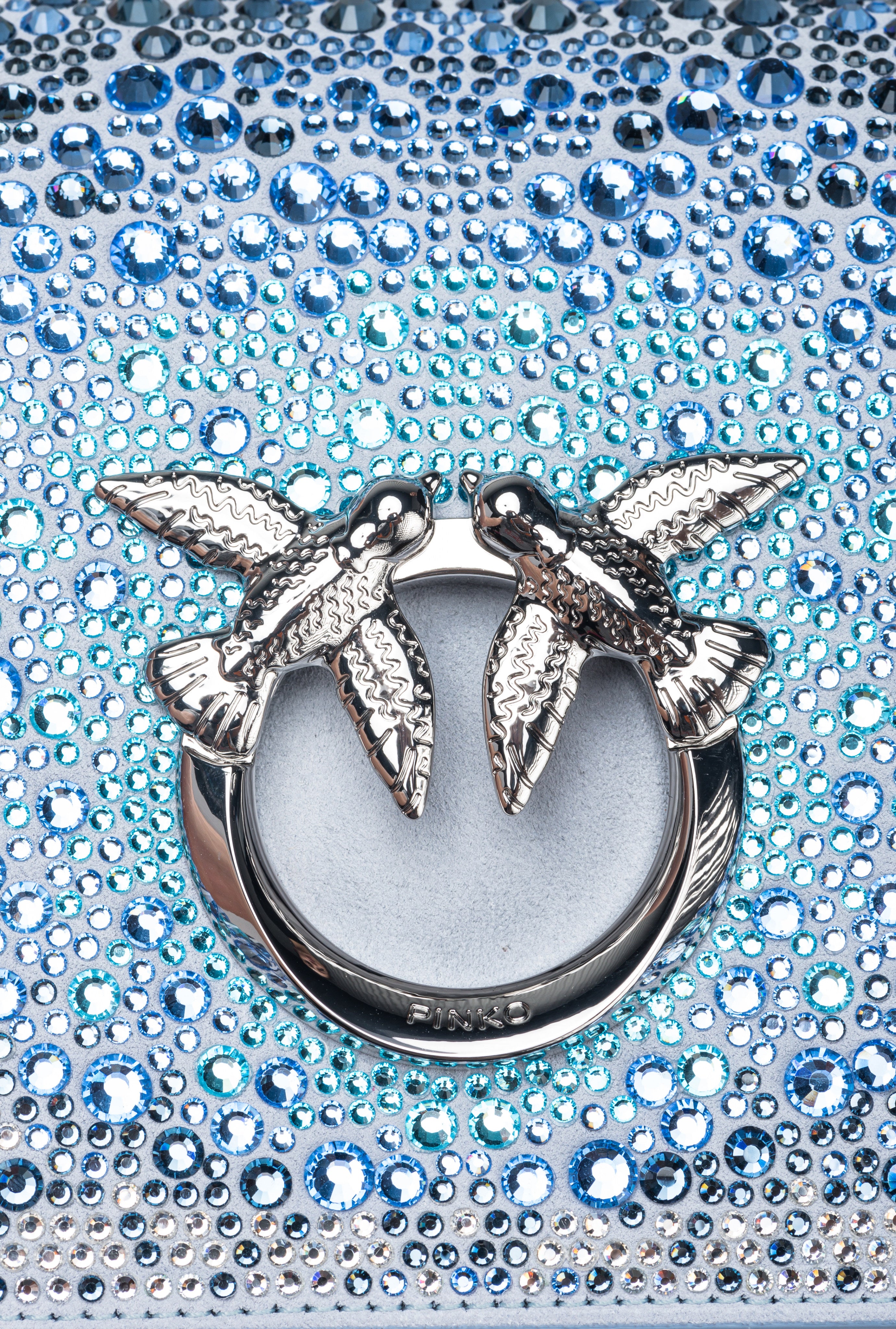 Mini Love Bag Click in pelle smerigliata, così da eliminare le imperfezioni, e pelle scamosciata con una particolare sfumatura piazzata, realizzata sulla base di un disegno realizzato appositamente dal team PINKO. Applicazione di cristalli termoadesivi all-over: si tratta di cristalli europei di forma tondeggiante, con 8 facce luminosissime, applicati in maniera resistente e si fissano in modo saldo e duraturo grazie alla colla di cui sono dotati. I cristalli di quattro dimensioni diverse sono posizionati, coperti con un tessuto e pressati a caldo per qualche minuto. La chiusura automatica nascosta è completata dall'iconica fibbia in metallo Love Birds Diamond Cut con effetto cut-out. La tracolla combina la classica catena rotonda al pratico spallaccio in pelle. La borsa fa parte della speciale capsule collection Limited Edition realizzata in tiratura limitata esclusivamente per PINKO Galleria. Utilizza lo speciale chip NFC per vivere una speciale experience dedicata alla borsa che hai acquistato!