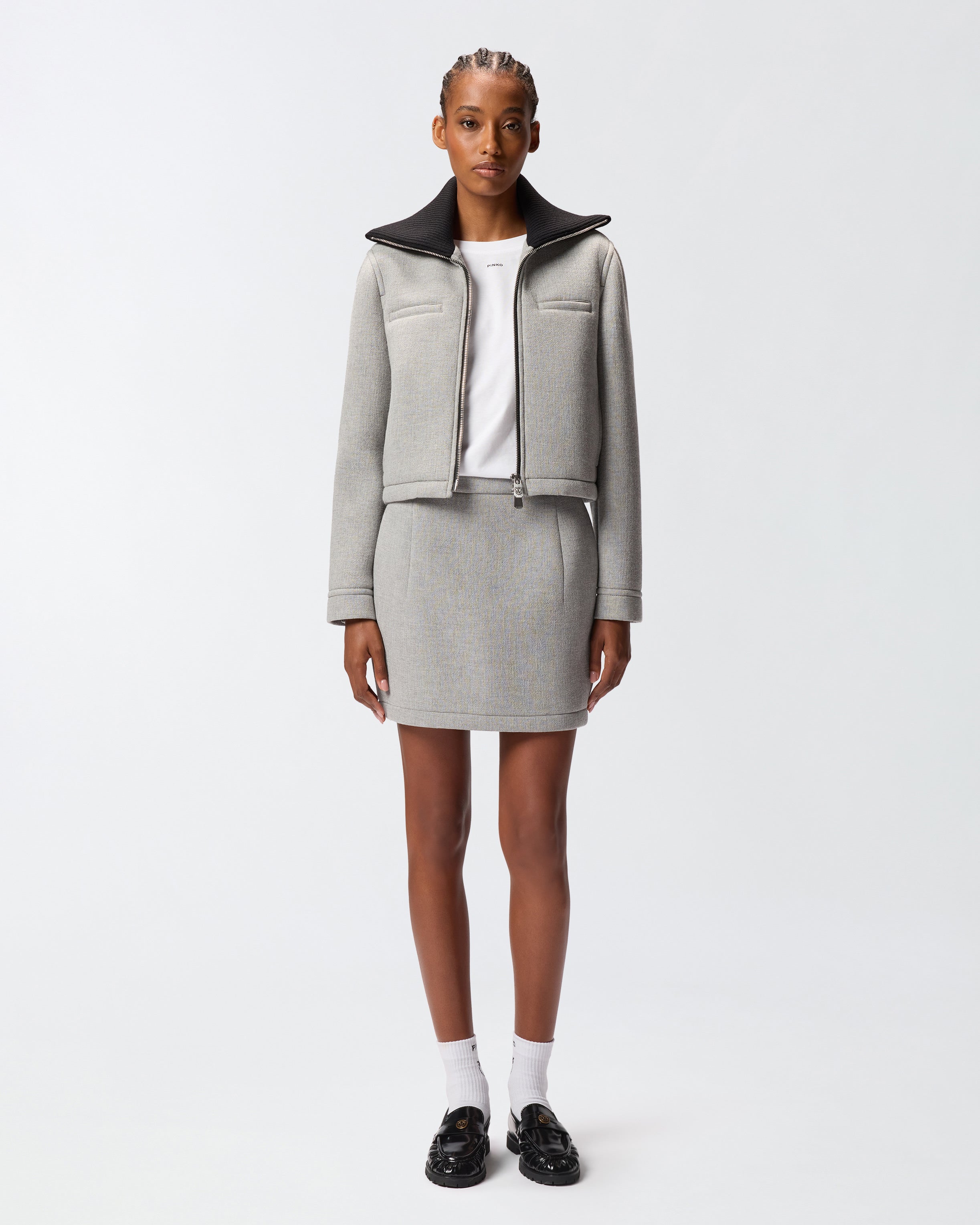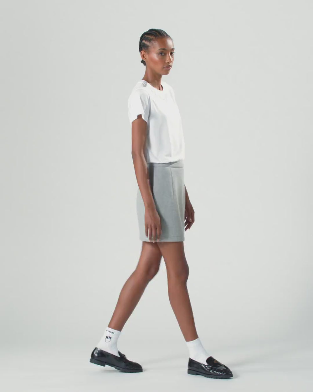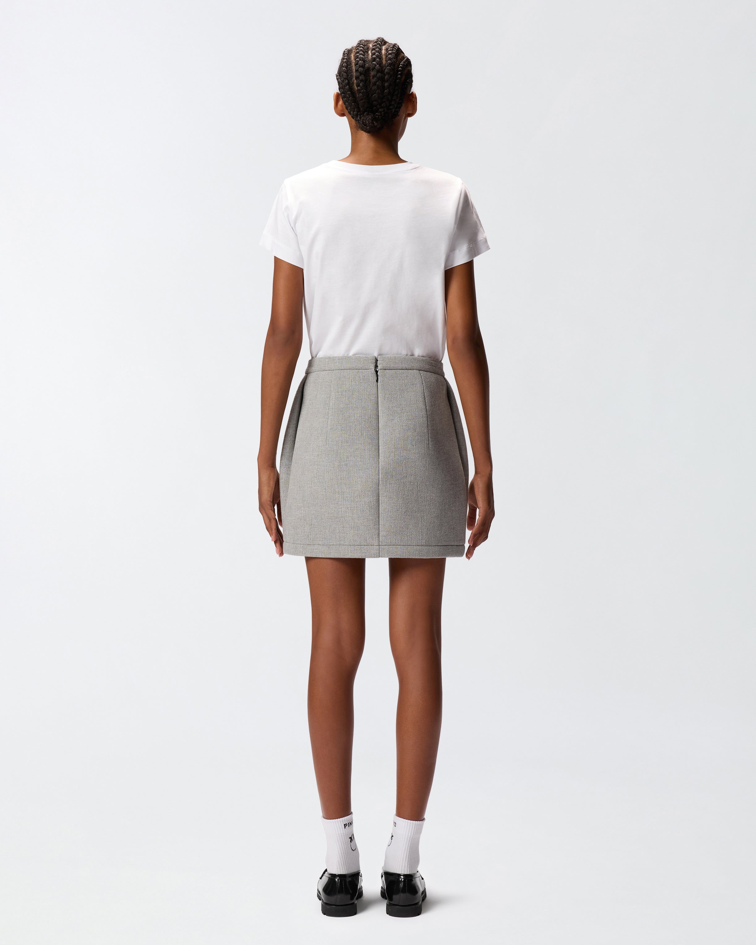 Minigonna realizzata in garza di lana lavata e accoppiata e dotata di chiusura con doppio gancio e zip sul retro. Il tessuto dona un effetto compatto e contemporaneo al capo, mentre il design è strutturato, perfetto per i look di tutti i giorni. Se eri alla ricerca di un modello per ultimare i tuoi outfit da giorno con un tocco raffinato, puoi smettere di cercare!