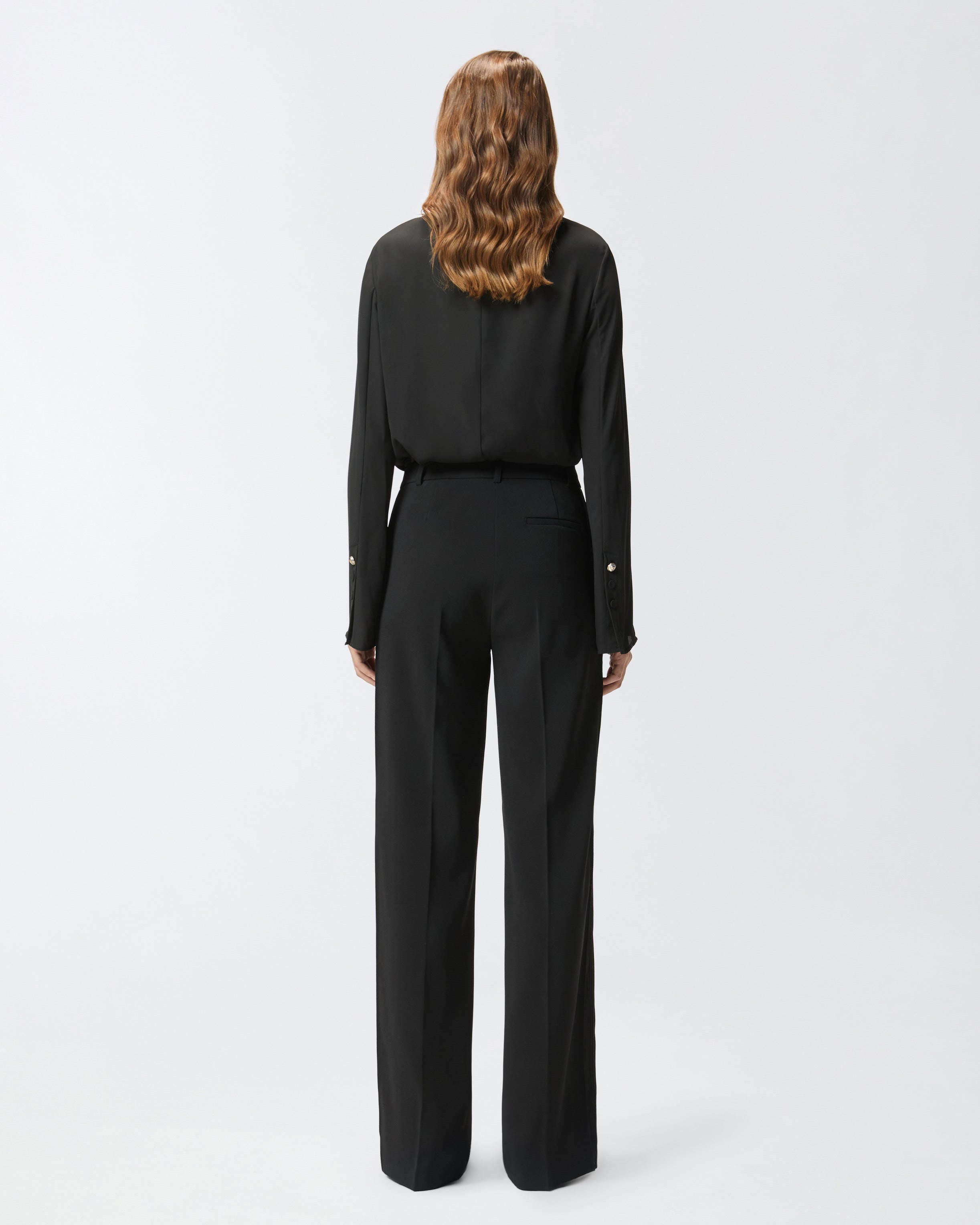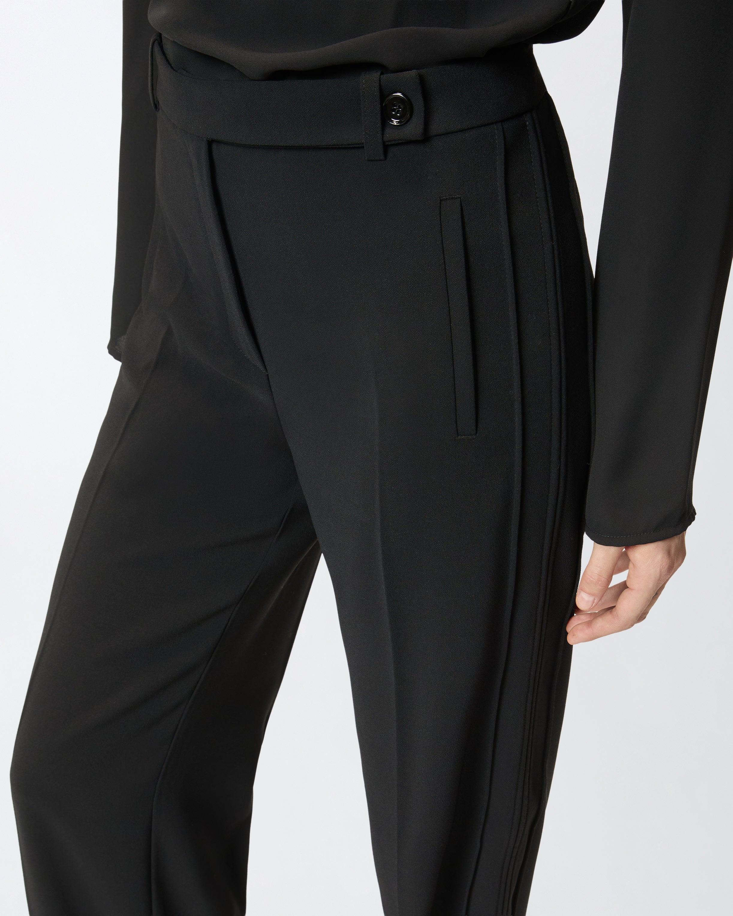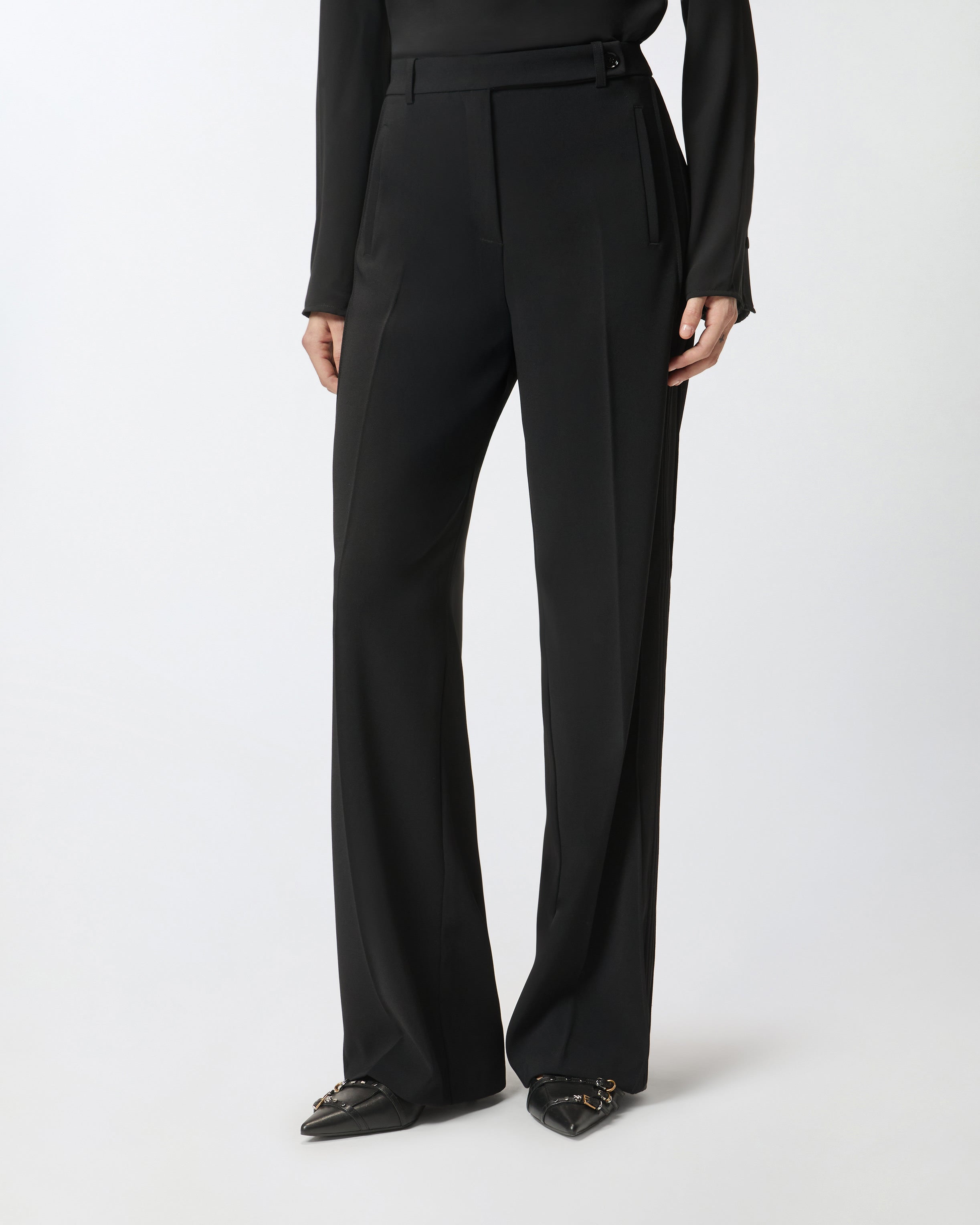 Pantaloni dalla silhouette dritta in crêpe stretch, elevati da una piega centrale stirata fronte e retro e dotati di abbottonatura nascosta, passanti, e tasca singola a filetto sul retro. Questo capo firmato PINKO saprà donare un tocco sartoriale al tuo guardaroba da giorno e non solo: indossalo con un blazer per trasformarlo in un sofisticato outfit da ufficio.