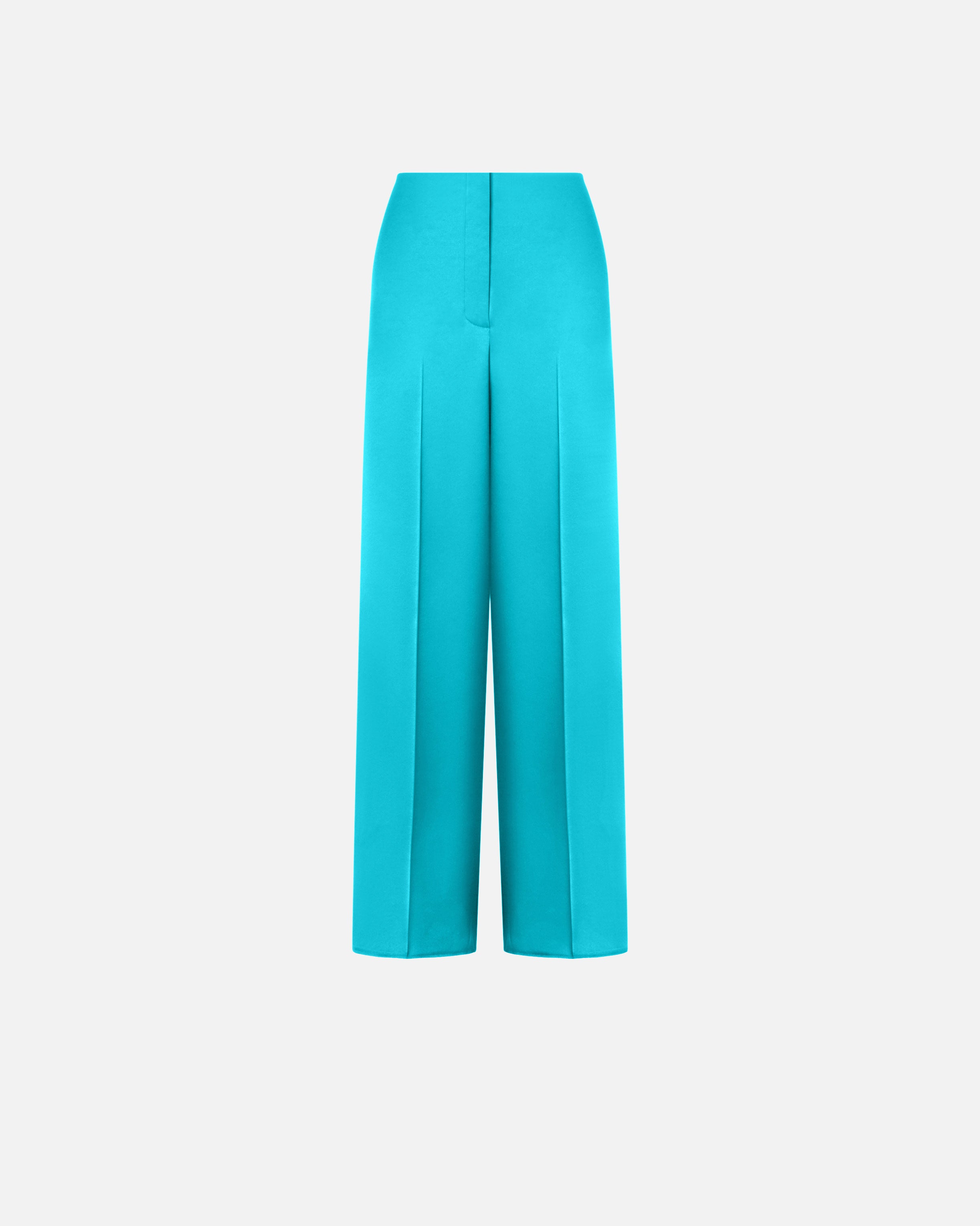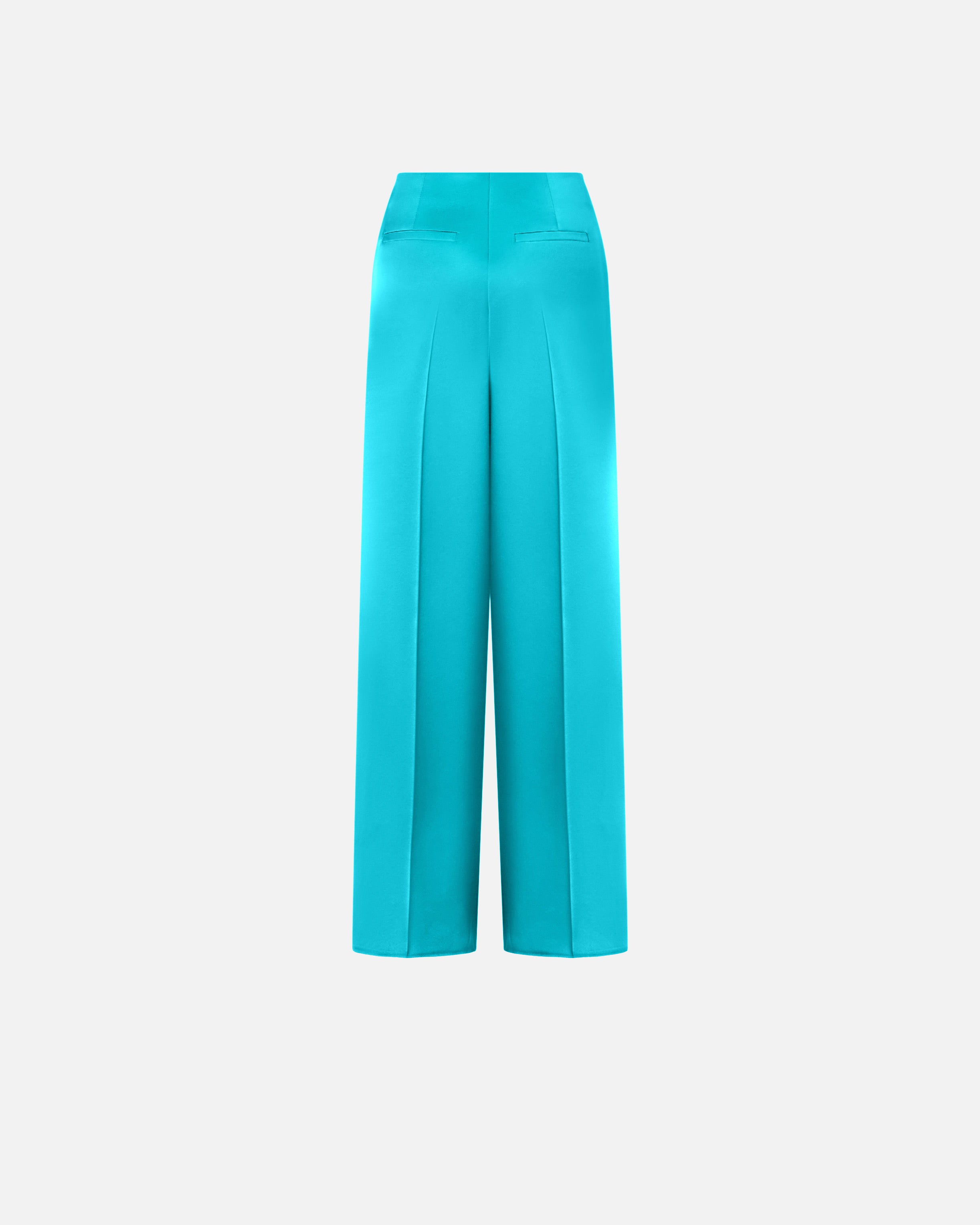 Pantaloni realizzati in morbido e lucente satin double face, per un aspetto raffinato e uniforme sia all'esterno sia all'interno. Il capo, dalla linea fluida e scivolata, è completato da una chiusura con zip e gancio nascosti, due tasche laterali, due tasche posteriori a filetto e un'elegante piega stirata. Indossa questi pantaloni con la giacca coordinata per creare un total look femminile ideale per le occasioni formali.