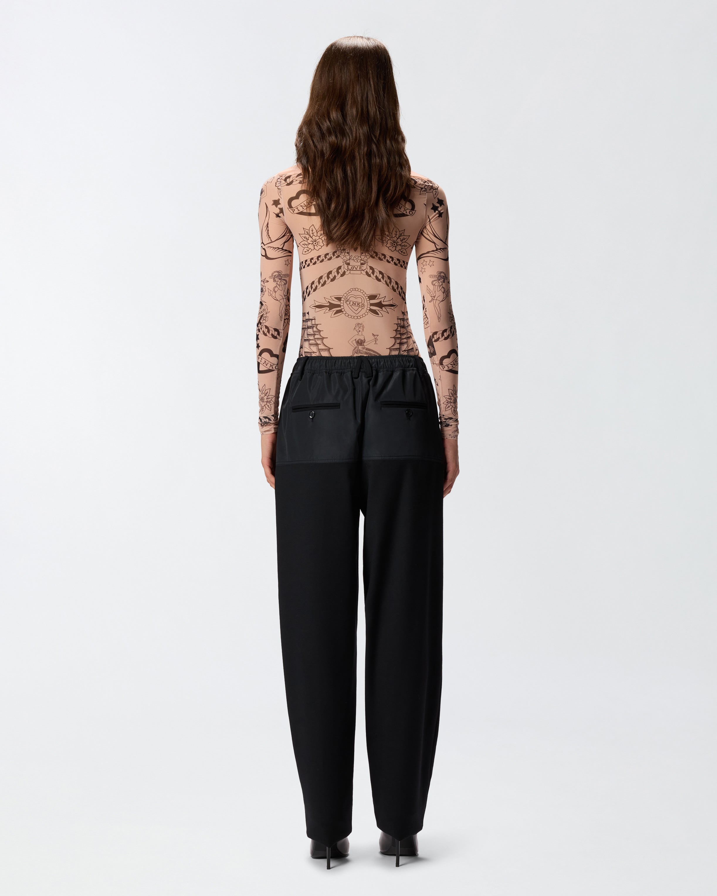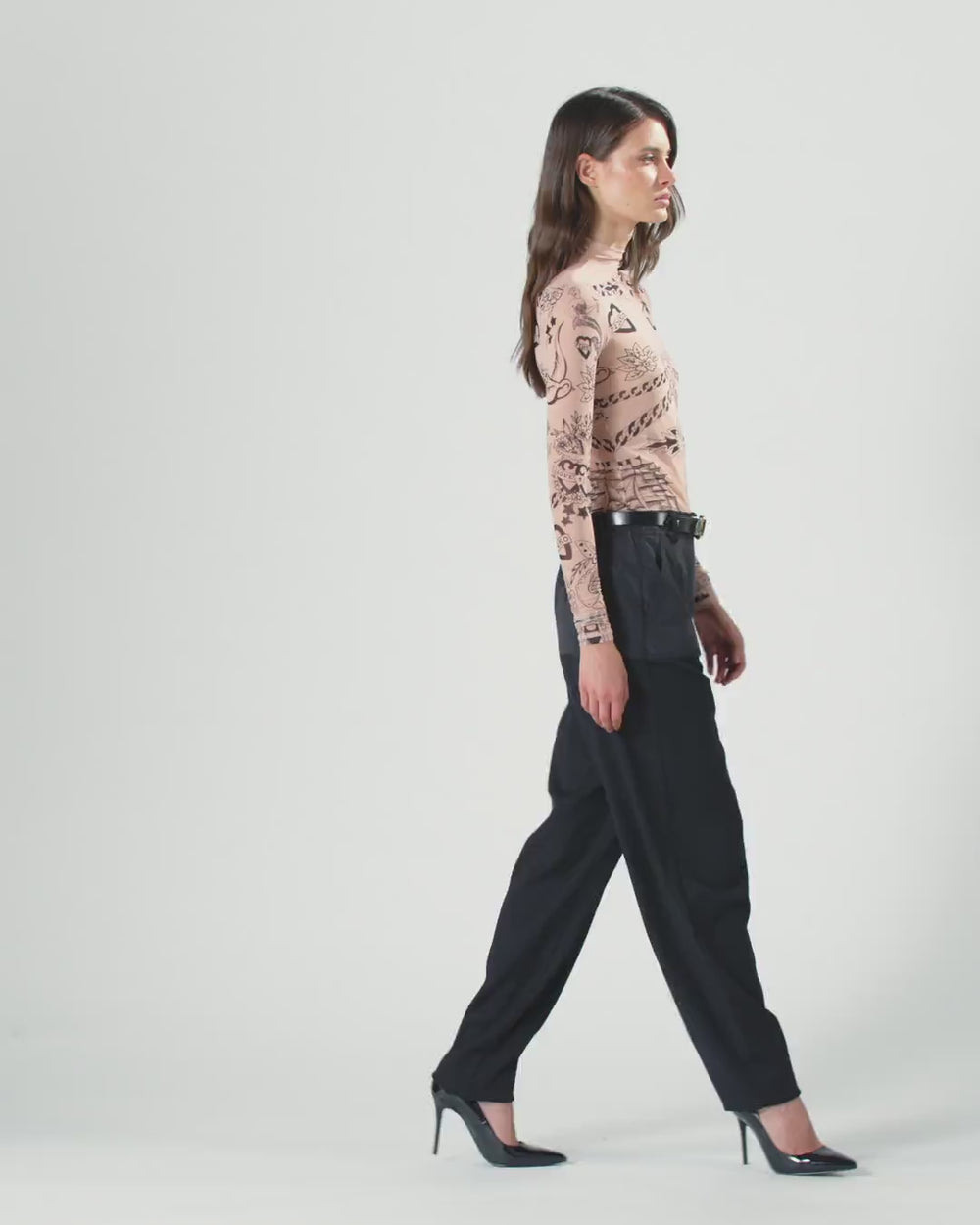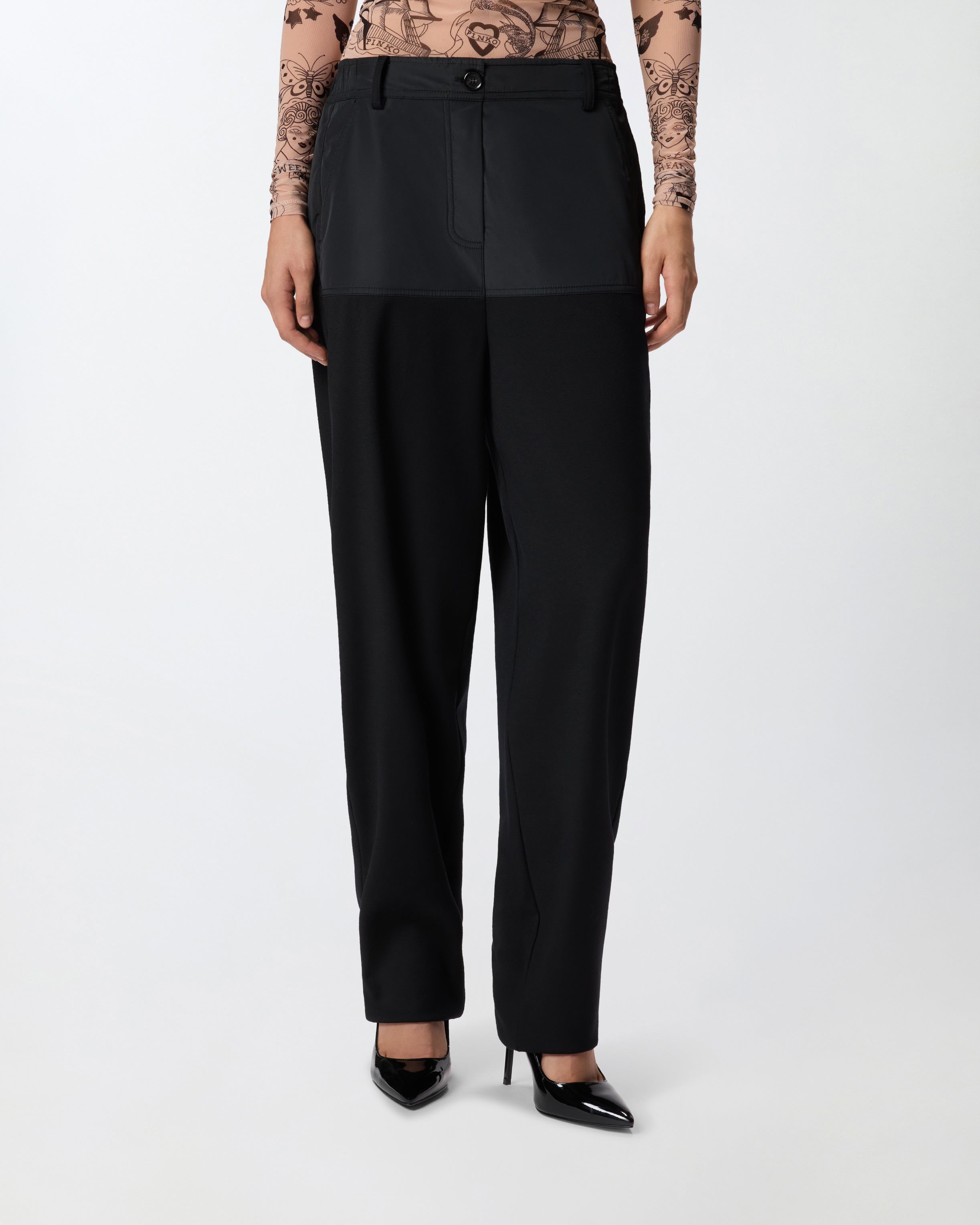 Pantaloni lunghi dalla vestibilità skinny, realizzati in tessuto in misto lana con armatura diagonale dalla mano smerigliata e fluida. Il modello presenta passanti in vita e tasche a filetto con bottone sul retro ed è caratterizzato da un inserto in taffetà tono su tono, a contrasto con il materiale principale. Dai una svolta informale ai tuoi look per l'ufficio con questa rivisitazione innovativa in pieno stile PINKO.