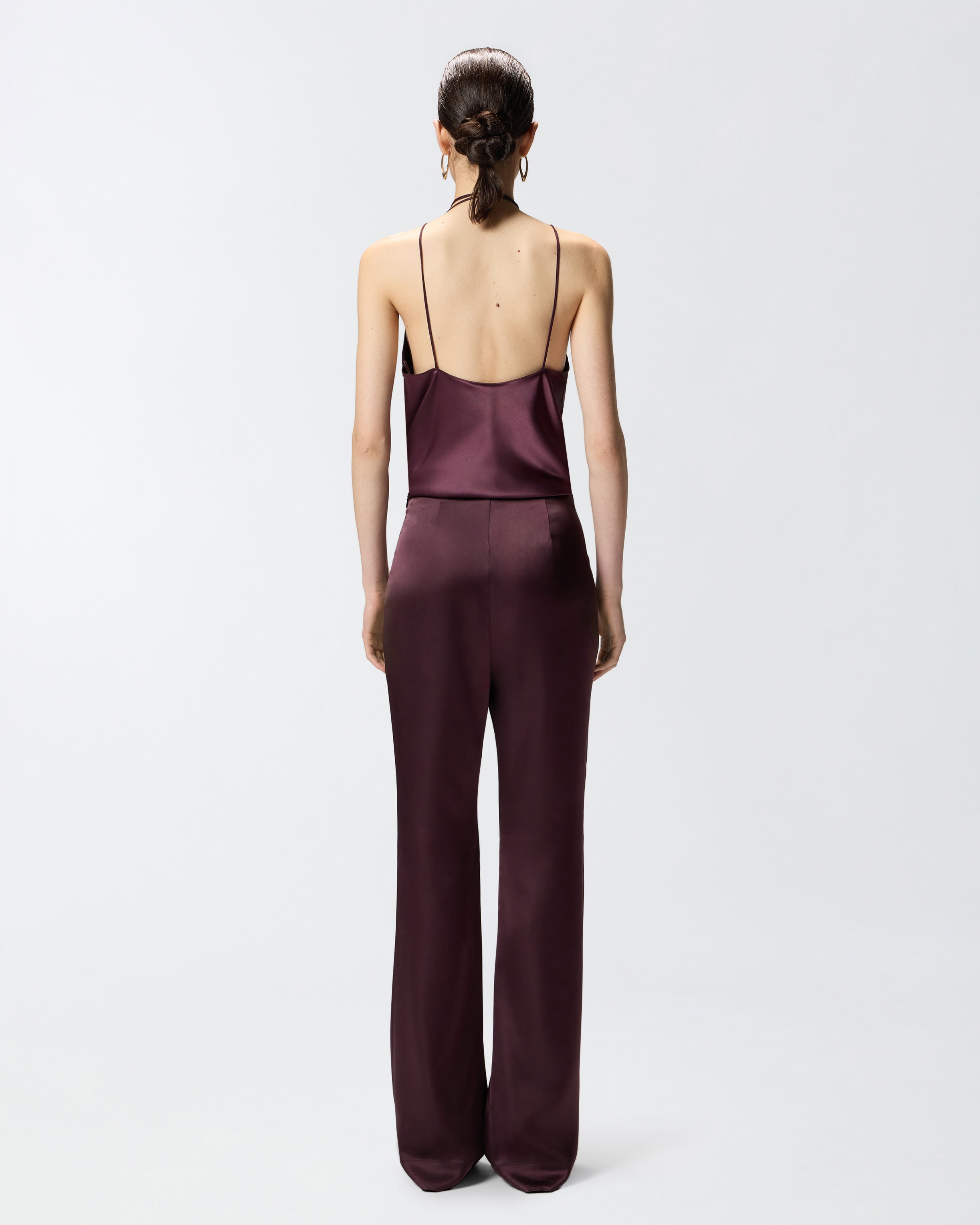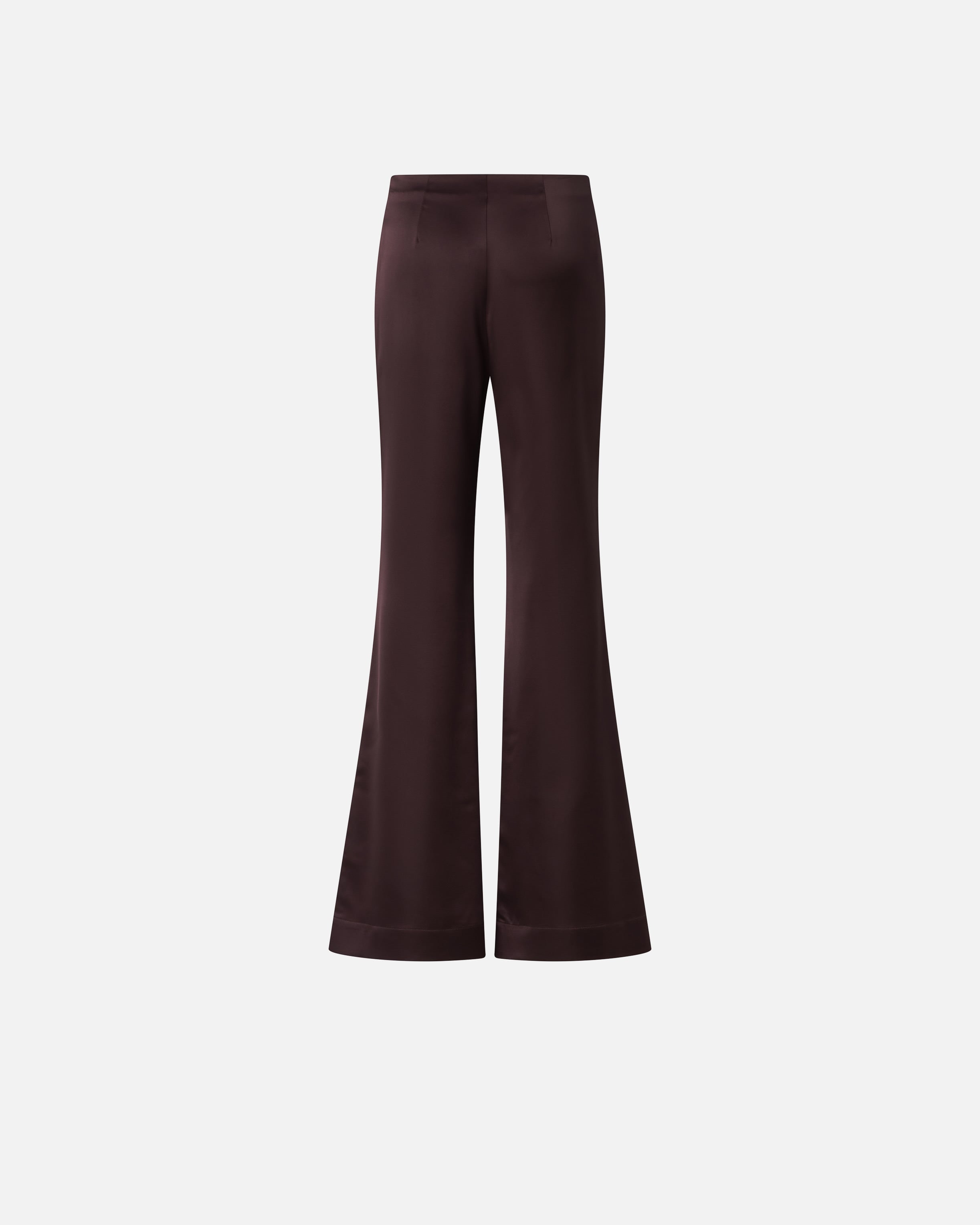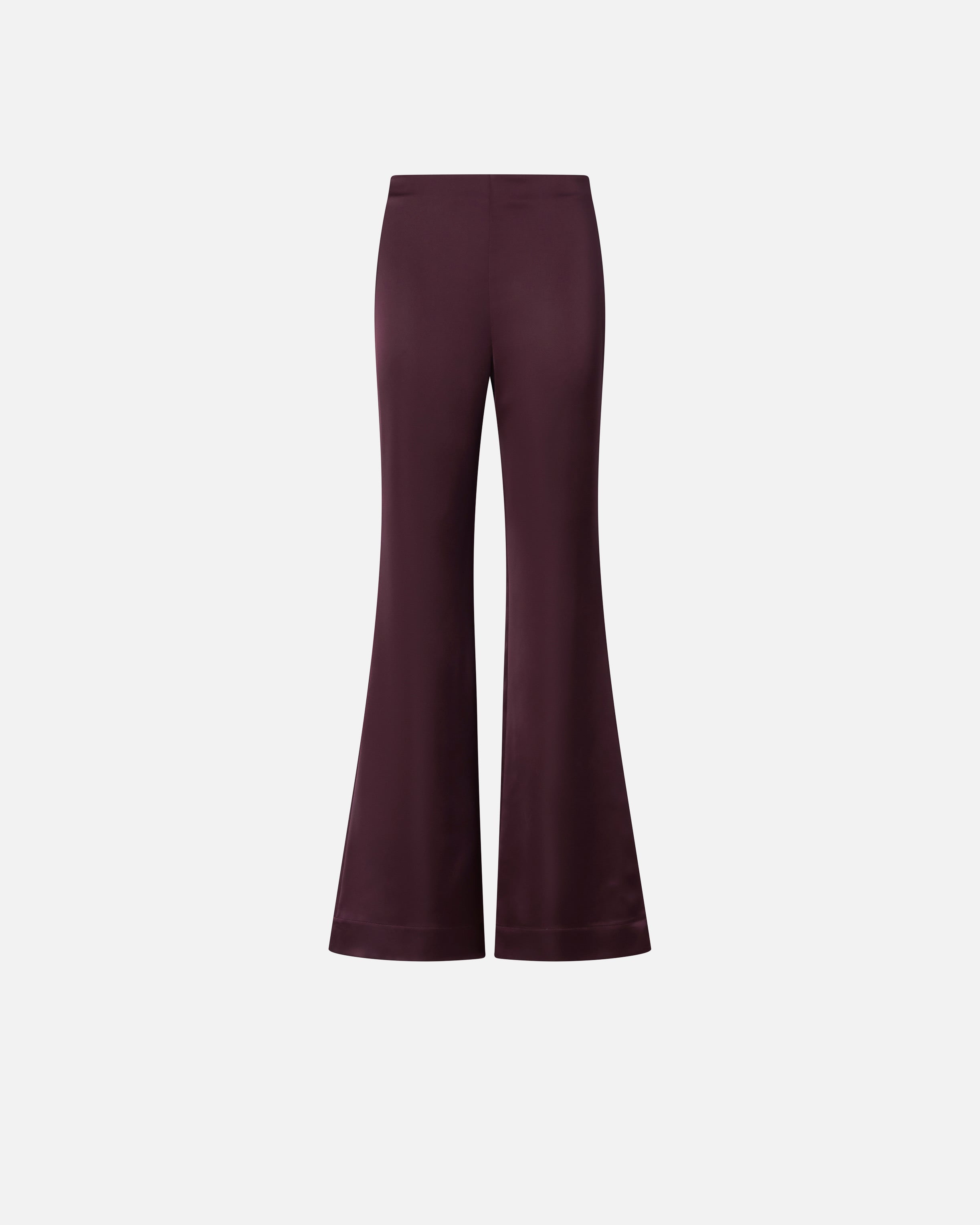 Pantaloni realizzati in satin stretch dal particolare effetto lucente e setoso, un tessuto capace di coniugare comfort e raffinatezza. La linea svasata esalta la figura, mentre la zip laterale si integra con discrezione, mantenendo il look pulito e minimal. Un modello versatile, ideale per look formali, serate eleganti o per elevare un outfit casual con un accento deciso e glamour. - PINOLO PANTALONE