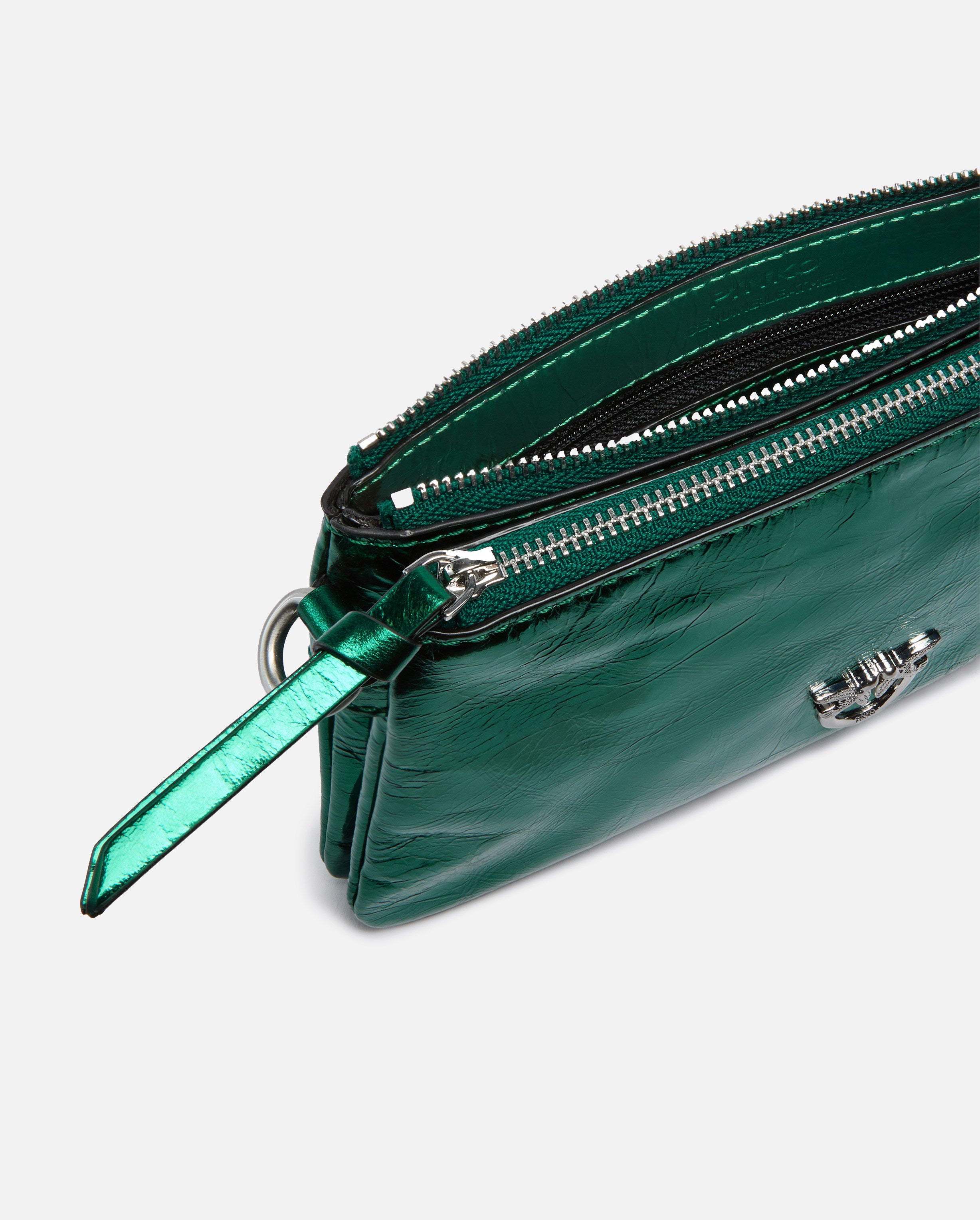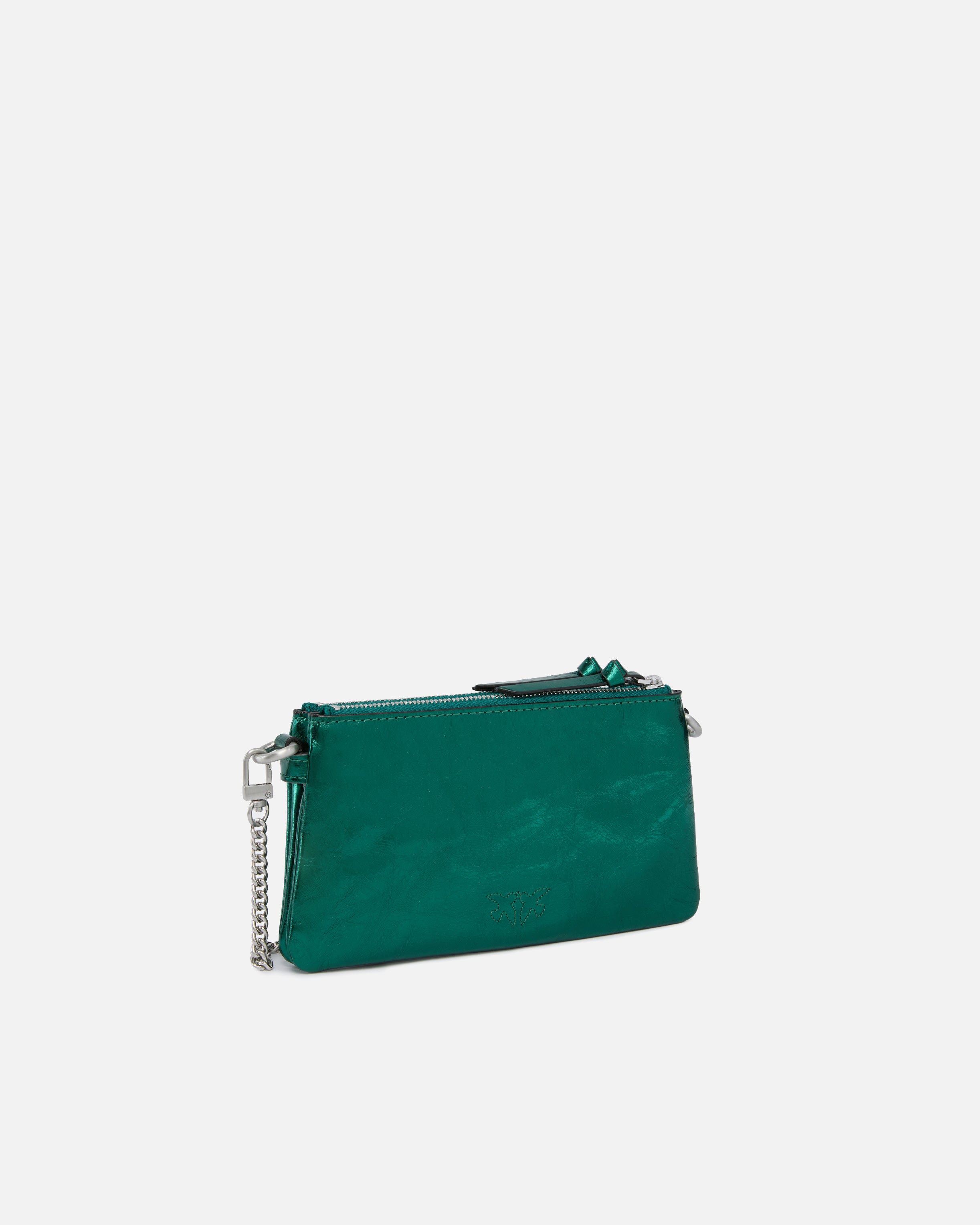 Borsa piccola stile pochette Mini Double Bag dalla forma rettangolare in pelle laminata, caratterizzata da una texture effetto used e una fodera in cotone. Completa di piccola tracolla regolabile e rimovibile in pelle e catena per una portabilità a mano o a spalla, la borsetta risulta estremamente versatile e pratica, anche grazie alle zip che la suddividono in due scomparti. Il modello ti donerà un'aria sognante, mentre l'iconico logo Love Birds si fa portavoce dell'inimitabile stile PINKO. Le coste a contrasto, ben visibili lungo la tracolla, testimoniano invece l'artigianalità del prodotto. Attiva la tua borsa PINKO: verifica l'autenticità del tuo prodotto e accedi all'esperienza personalizzata avvicinando il tuo smartphone al ricamo Love Birds che trovi sul retro della borsa!