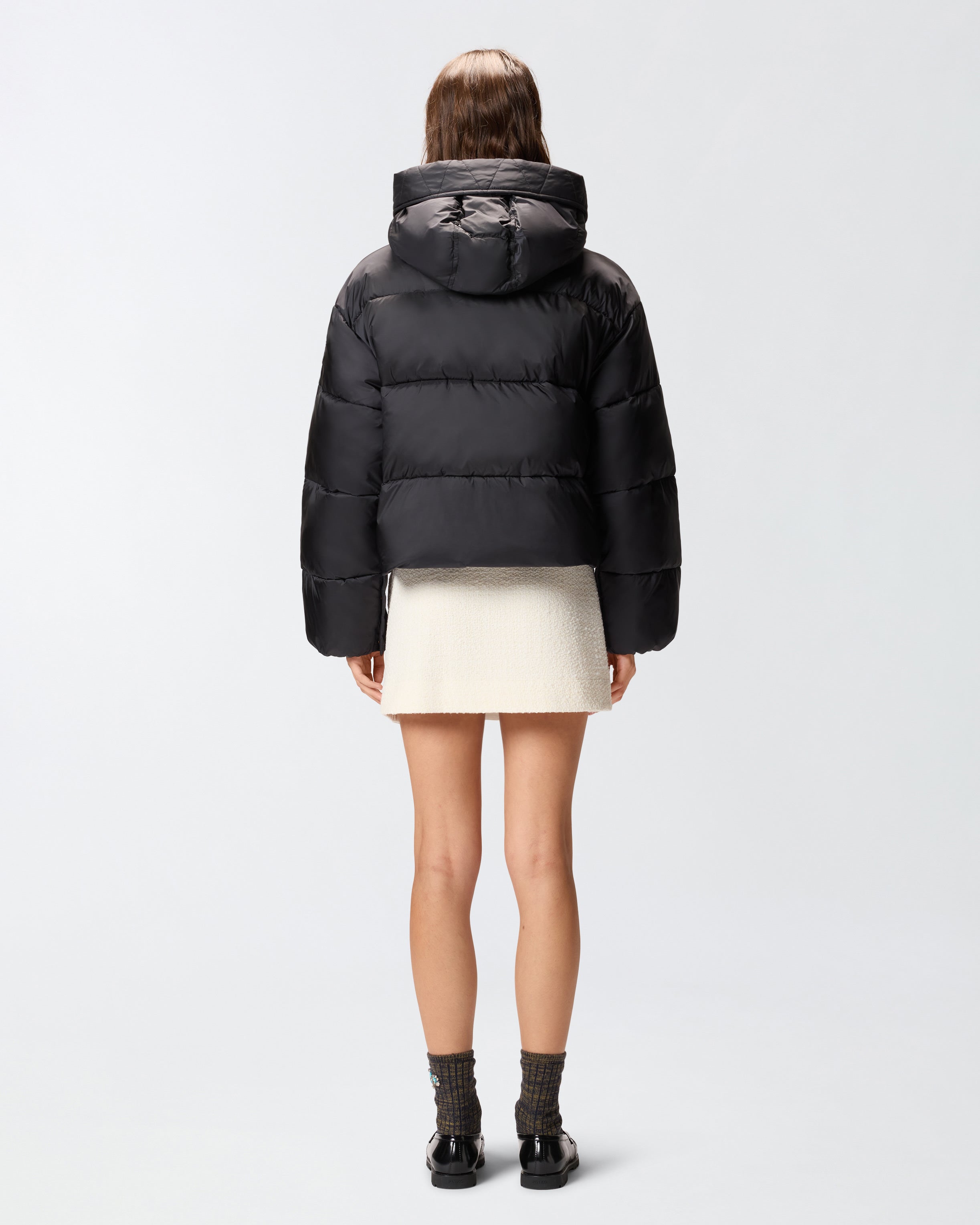 Piumino imbottito in tela tecnica caratterizzata dal particolare finishing semilucido. Il modello è dotato di un ampio cappuccio avvolgente e regolabile tramite coulisse e di comode tasche a filetto verticale. Chiusura con bottoni metallici a pressione. Il taglio corto del piumino lo rende un capospalla perfetto da indossare tutti i giorni, per affrontare le prime giornate fredde della stagione.