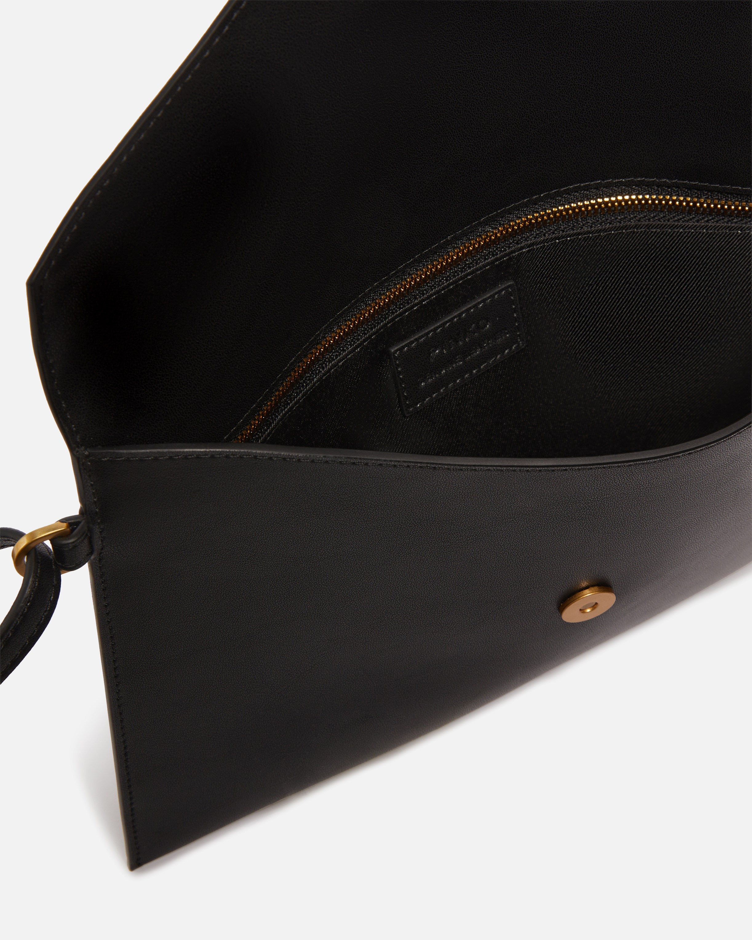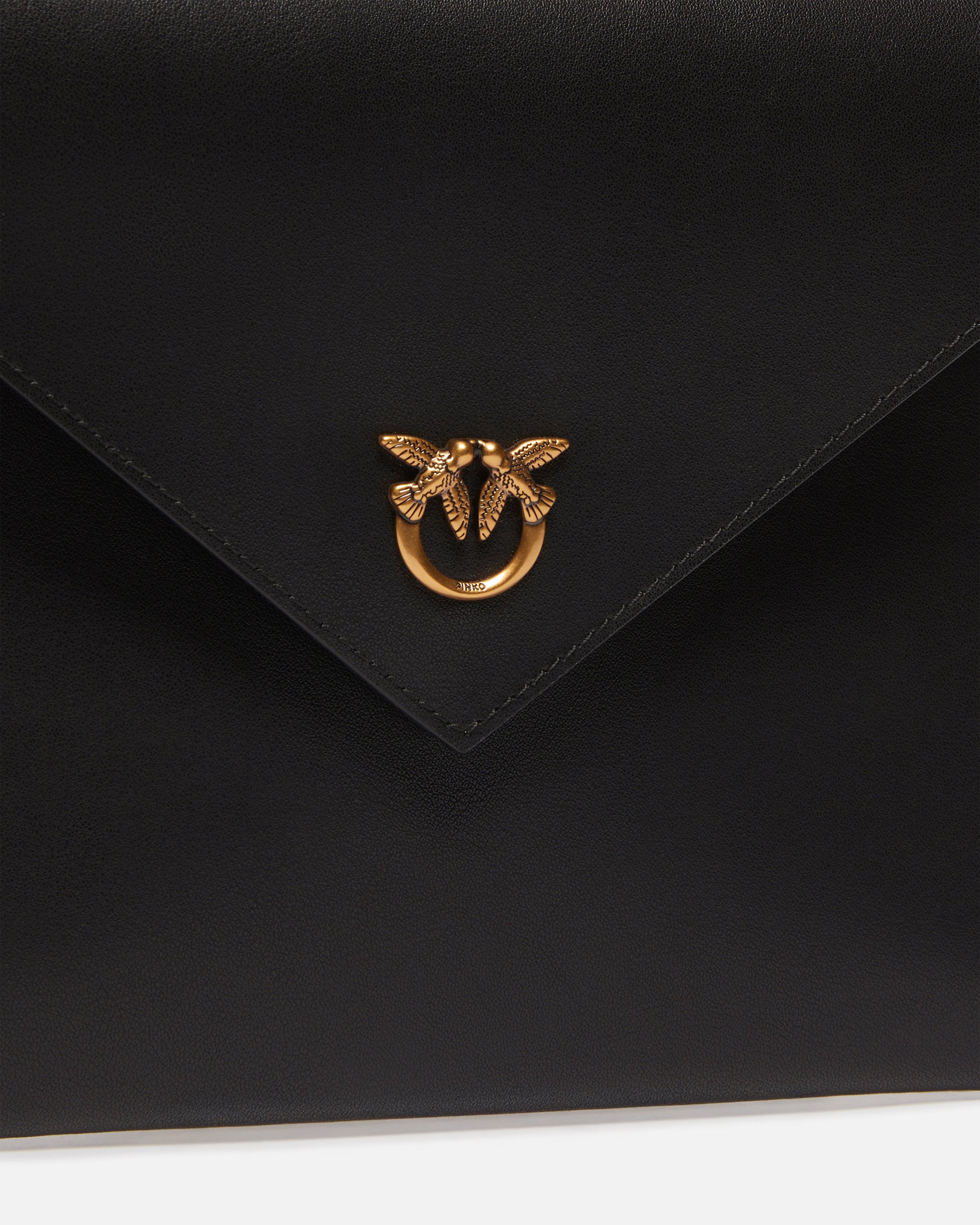 Piccola borsa a mano dalla forma a bustina piatta realizzata in morbida pelle mano seta, dotata di fodera in cotone. Caratterizzata dalla tracolla a catena rimovibile lunga 54 cm, la borsetta risulta estremamente versatile e pratica. Il design viene completato dall'iconico Love Birds, in galvanica resistente color antique gold, che si fa portavoce dell'inimitabile stile del brand. Essenziale e raffinato, questo accessorio è il pezzo mancante dei tuoi look da giorno e non solo. Attiva la tua borsa PINKO: verifica l'autenticità del tuo prodotto e accedi all'esperienza personalizzata avvicinando il tuo smartphone al ricamo Love Birds che trovi sul retro della borsa!