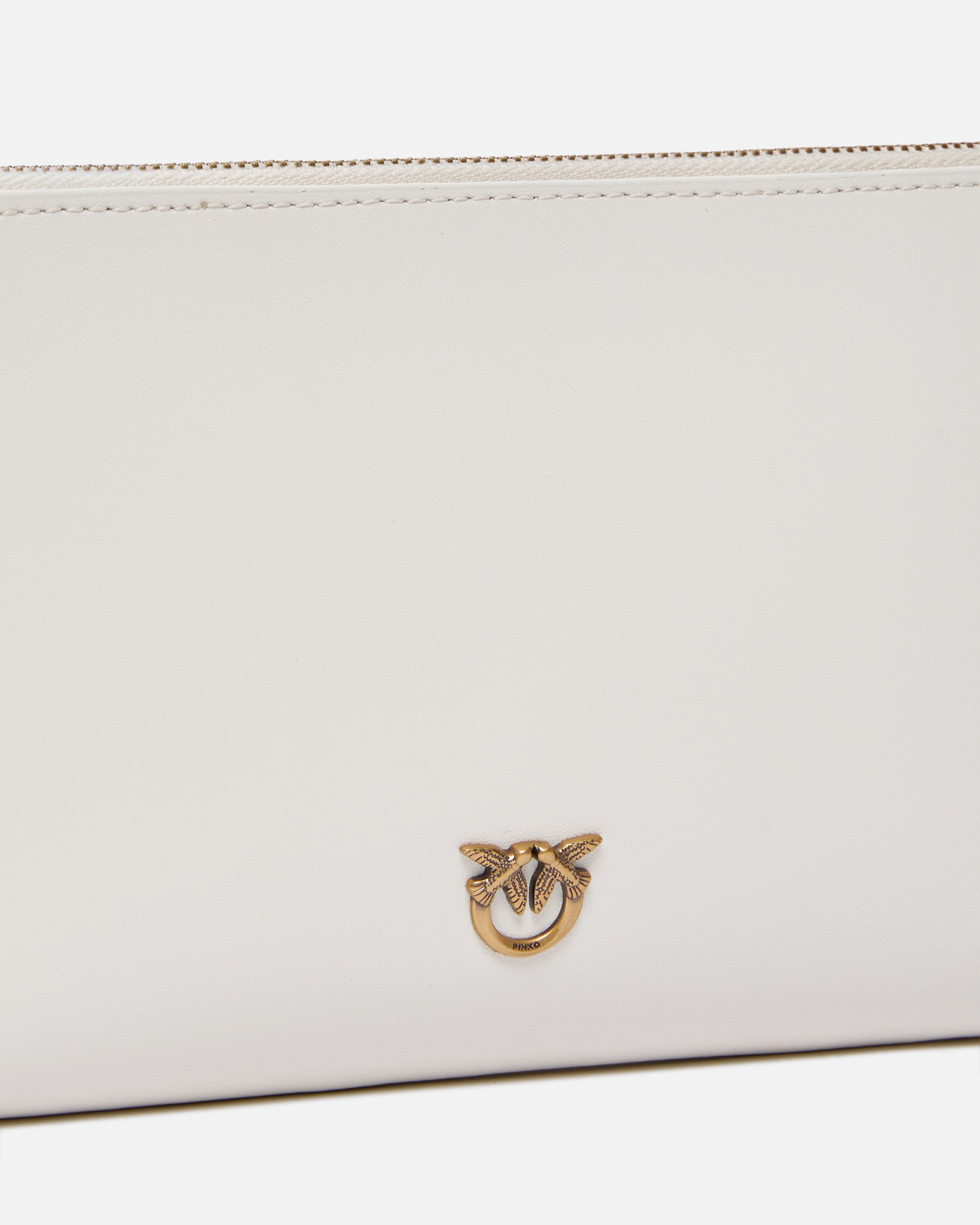 Pochette piatta dalla forma rettangolare realizzata in pelle mano seta e dotata di fodera in cotone e chiusura con zip. La borsetta risulta estremamente versatile e pratica grazie alla tracolla regolabile e rimovibile che offre una doppia opzione di portabilità: a mano oppure a tracolla. Il design viene completato dall'iconico Love Birds, in galvanica resistente color antique gold, che si fa portavoce dell'inimitabile stile del brand. Essenziale e raffinato, questo accessorio è il pezzo mancante dei tuoi look da giorno e non solo. Attiva la tua borsa PINKO: verifica l'autenticità del tuo prodotto e accedi all'esperienza personalizzata avvicinando il tuo smartphone al ricamo Love Birds che trovi sul retro della borsa!