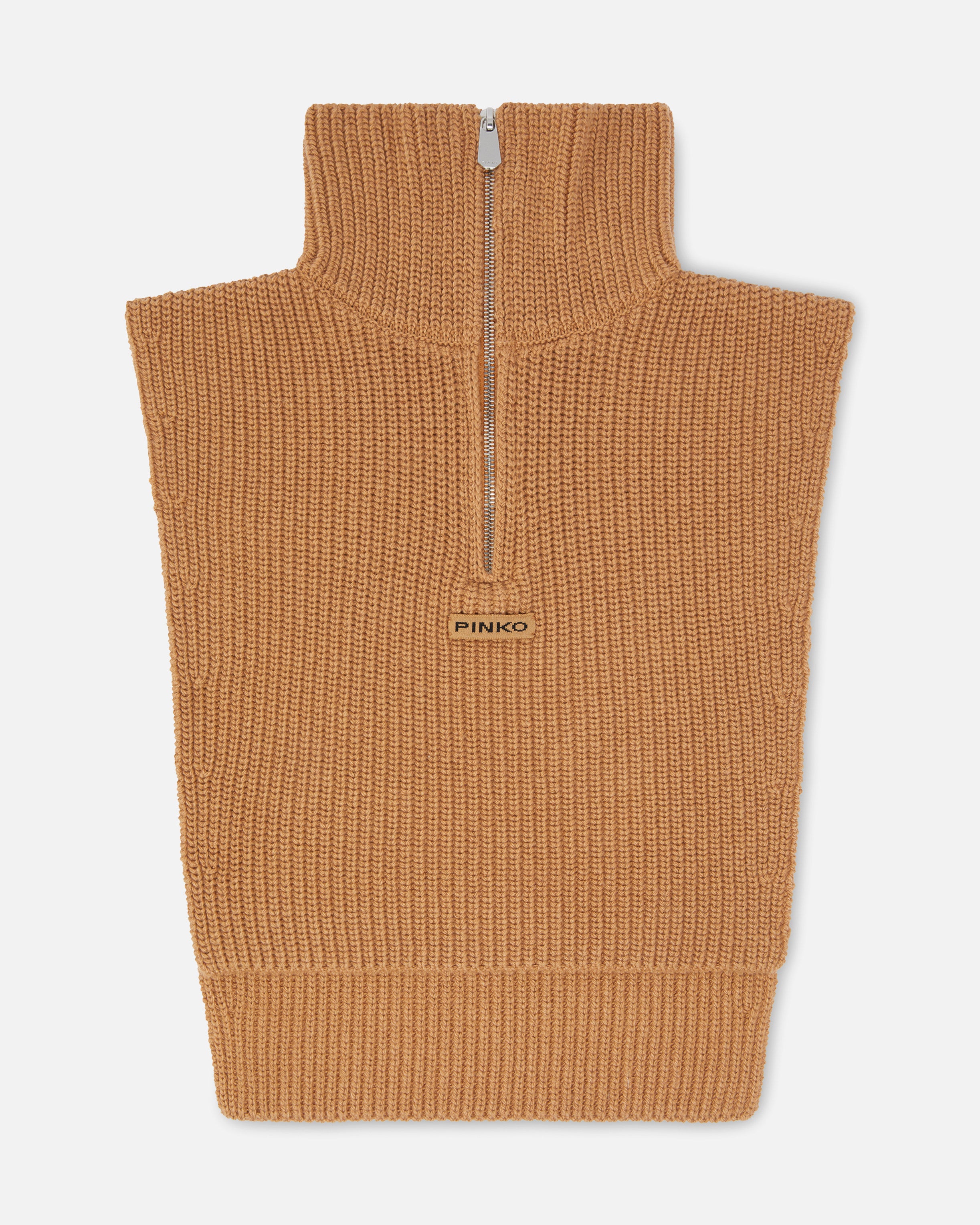 Scaldacollo con zip, realizzato in soffice maglia di misto lana, cashmere e viscosa che risulta estremamente morbida al tatto. La lavorazione realizzata a coste all over dà vita a un effetto tridimensionale. Il tocco finale è dato dall'etichetta tono su tono con logo lettering PINKO sul davanti. Essenziale ma d'impatto, questo modello si indossa proprio come una sciarpa ed è perfetto per completare i tuoi outfit con un tocco inedito.