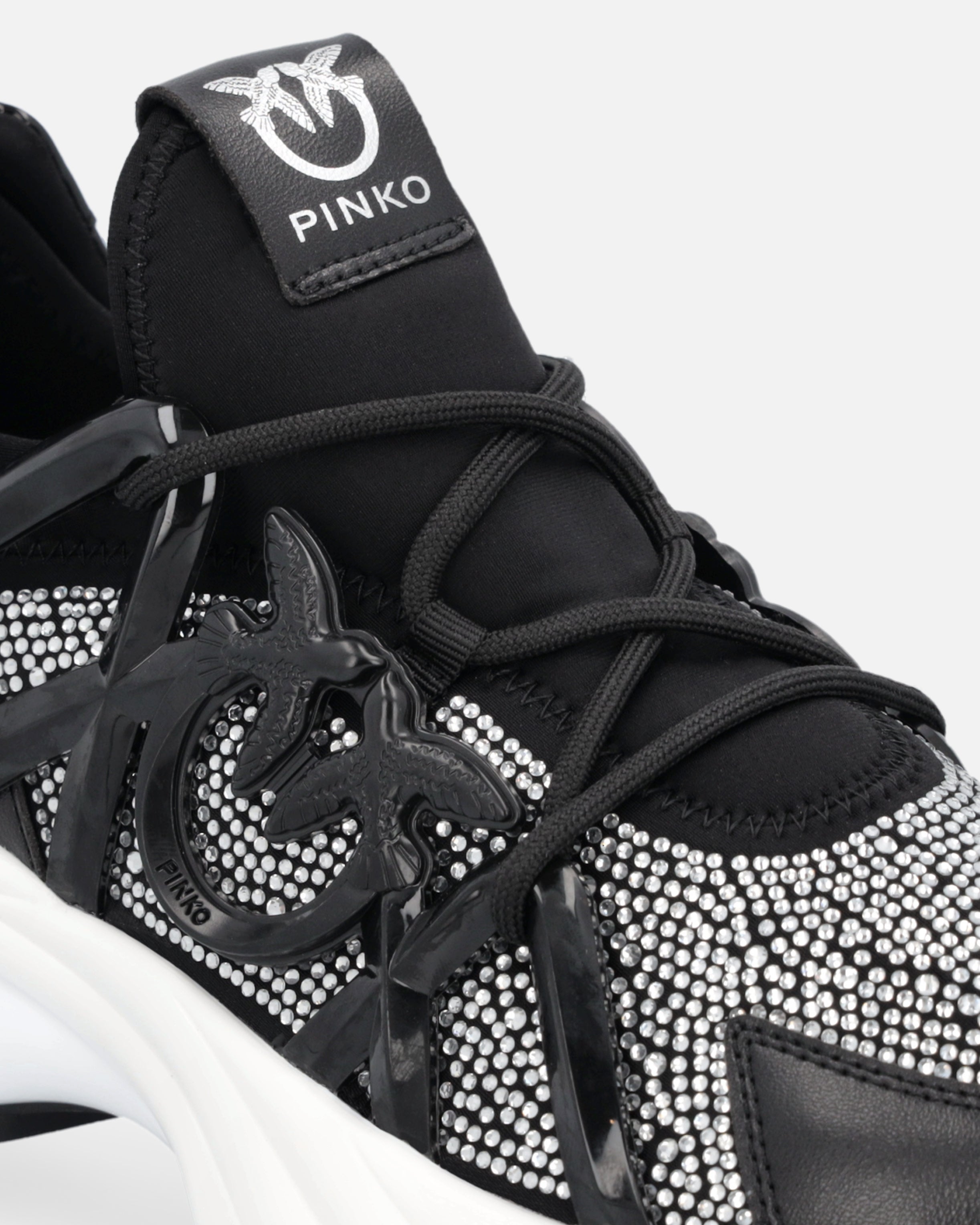 Sneakers slip-on Ariel in tessuto tecnico effetto neoprene impreziosite con strass. Lacci tubolari e dettaglio in rilievo laterale, personalizzato con logo Love Birds. Suola running in gomma, spoiler in TPU, fodera in tessuto e soletta in pelle.