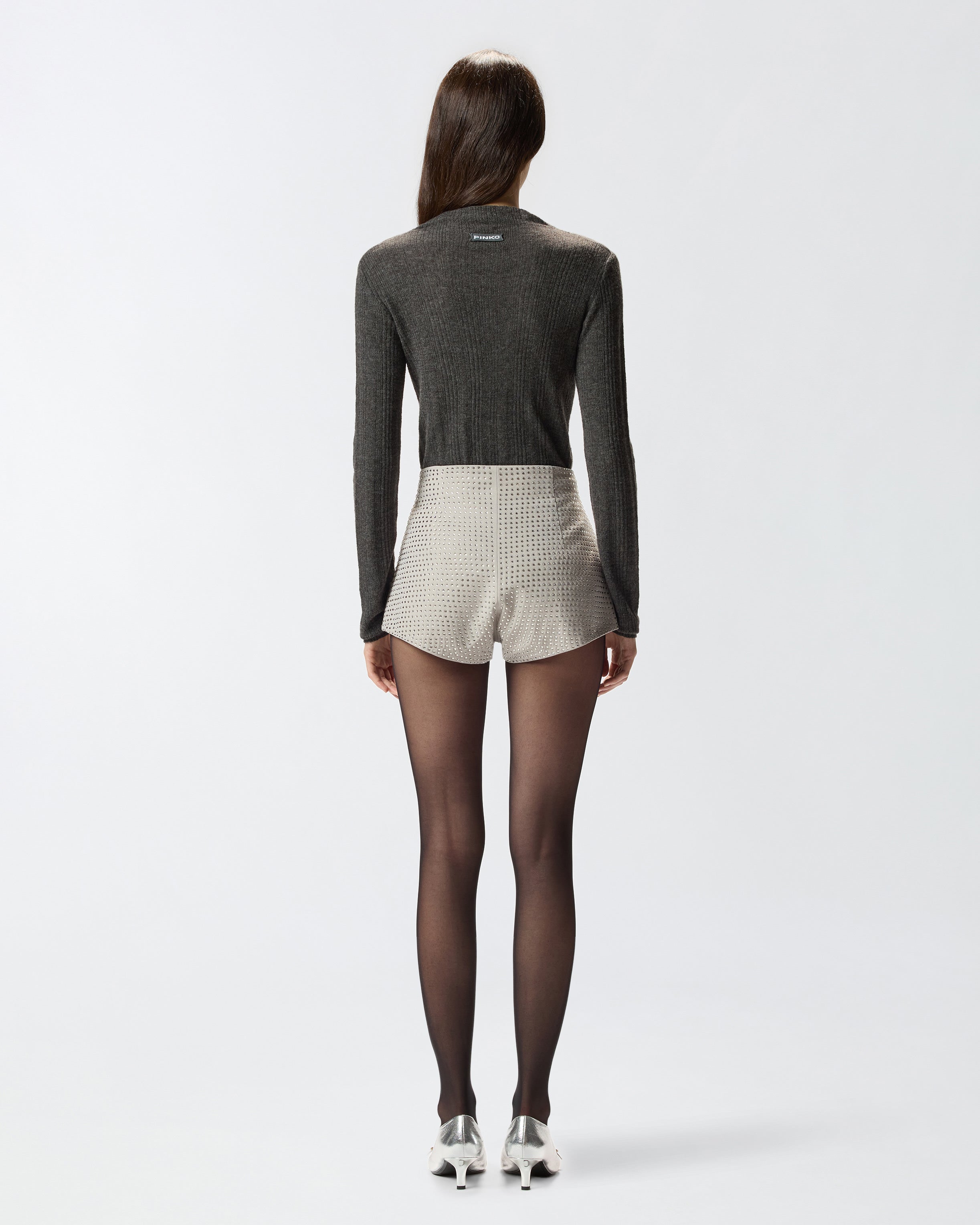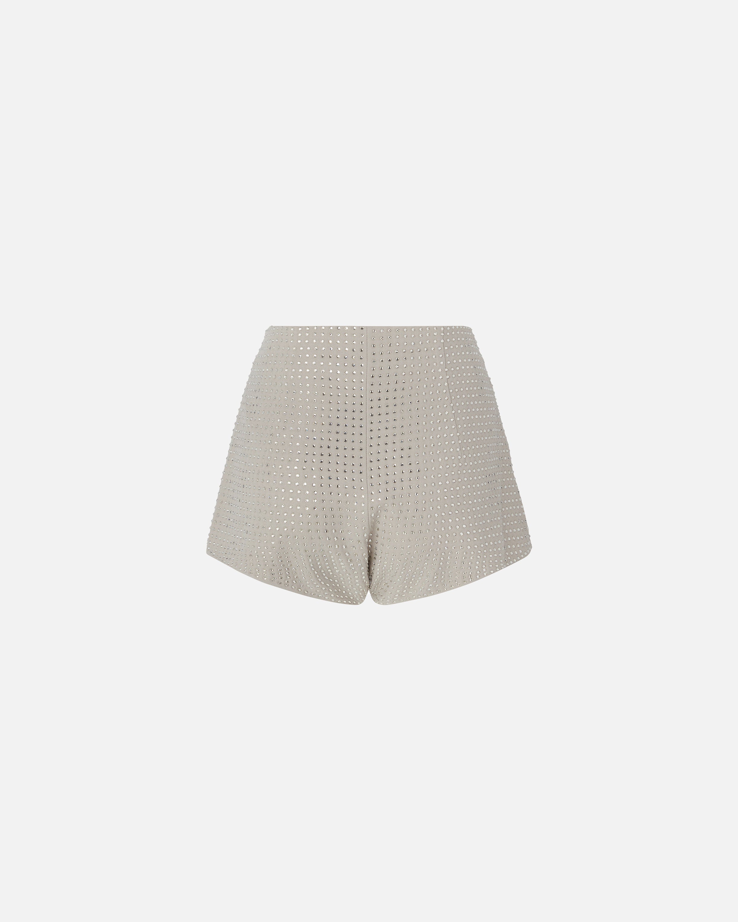 Shorts a vita alta dalla vestibilità aderente scanditi da cuciture verticali e impreziositi da strass che rivestono l'intera silhouette donando un tocco scintillante. Questo modello originale non potrà fare a meno di illuminare le tue serate e i tuoi outfit garantendoti al tempo stesso massimo comfort: la chiusura con zip invisibile su un fianco, infatti, facilita l'indosso e assicura una perfetta vestibilità.