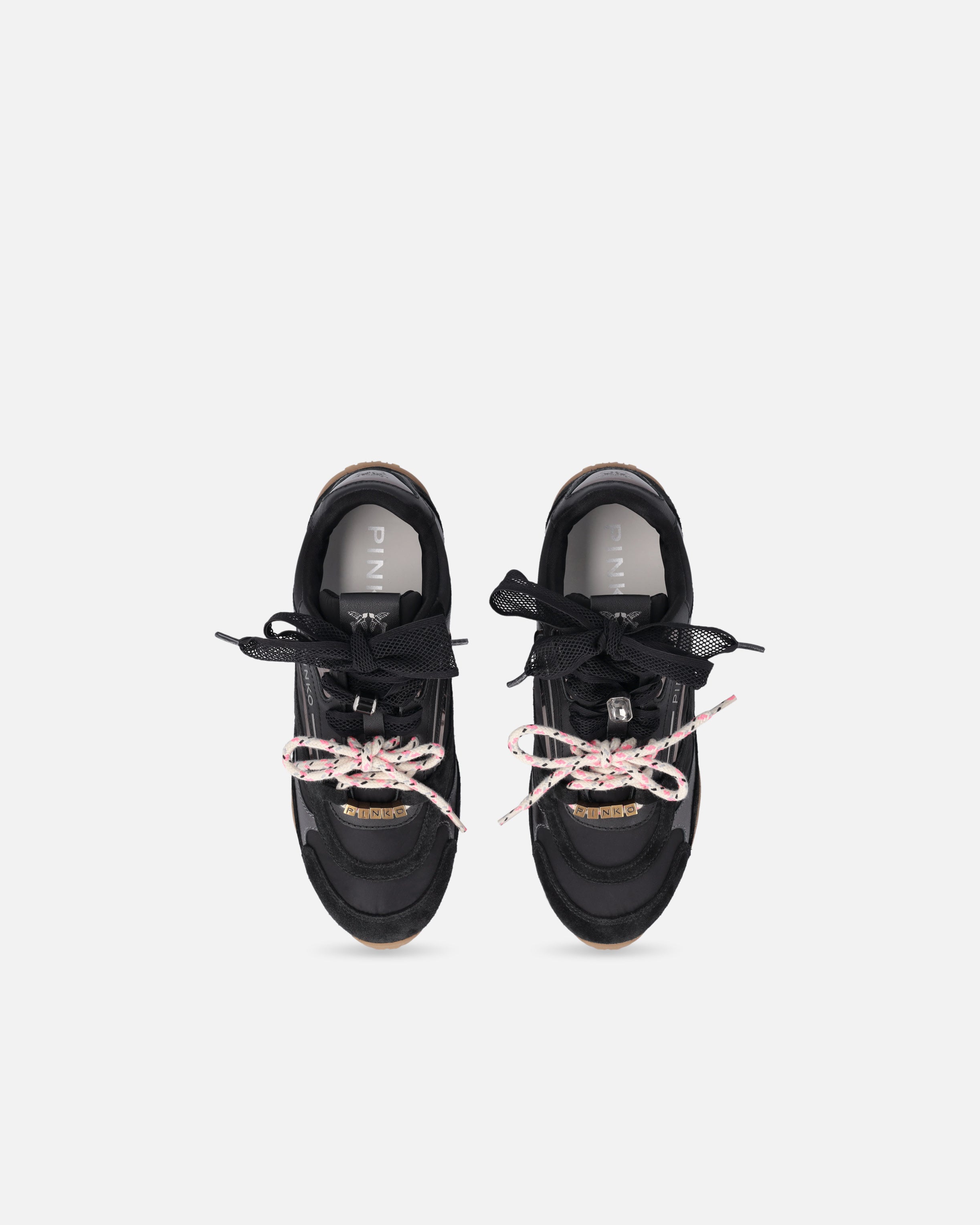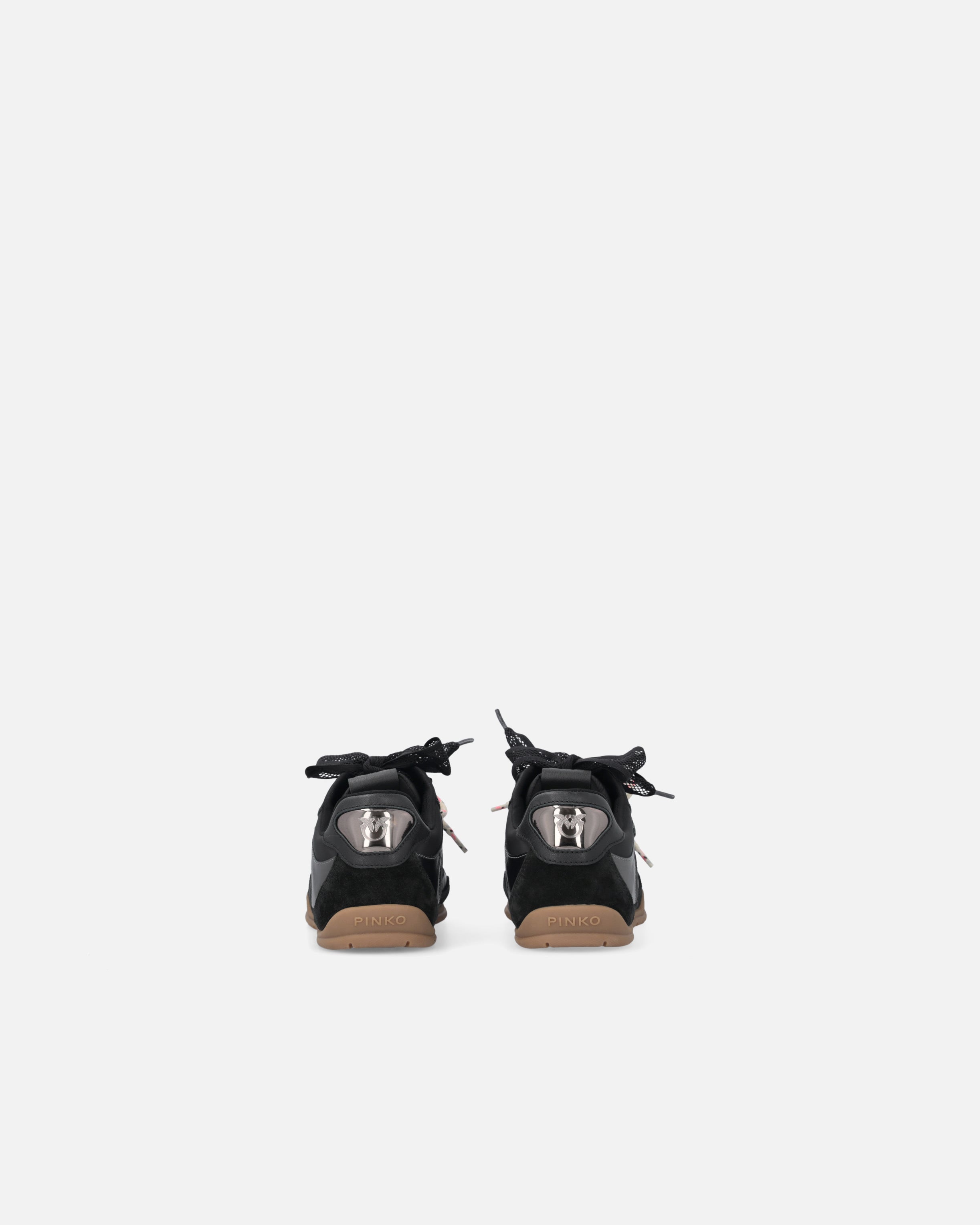 Scarpa da ginnastica in tessuto tecnico con inserti in suede e pelle liscia, caratterizzata da doppi lacci: quelli superiori in rete e quelli inferiori con colorati dettagli grafici, per un raffinato contrasto materico e visivo. Il logo con gli iconici uccellini Love Birds spicca sulla linguetta, sul tallone dall'effetto specchiato e sotto forma di applicazione metallica dorata sui lacci, accompagnato da anelli metallici che compongono il logo lettering PINKO. I lacci superiori sono arricchiti da un brillante gioiello incastonato su una scarpa e da un charm dall'effetto marmorizzato sull'altra. Al suo interno, il modello presenta un fussbett da 10 mm in latex per un’ammortizzazione perfetta, mentre la comoda suola in gomma assicura grip. Reinterpretazione contemporanea di un classico del guardaroba sportivo, queste sneakers donano un tocco glam in puro stile PINKO a qualsiasi outfit casual. - YULIA 01