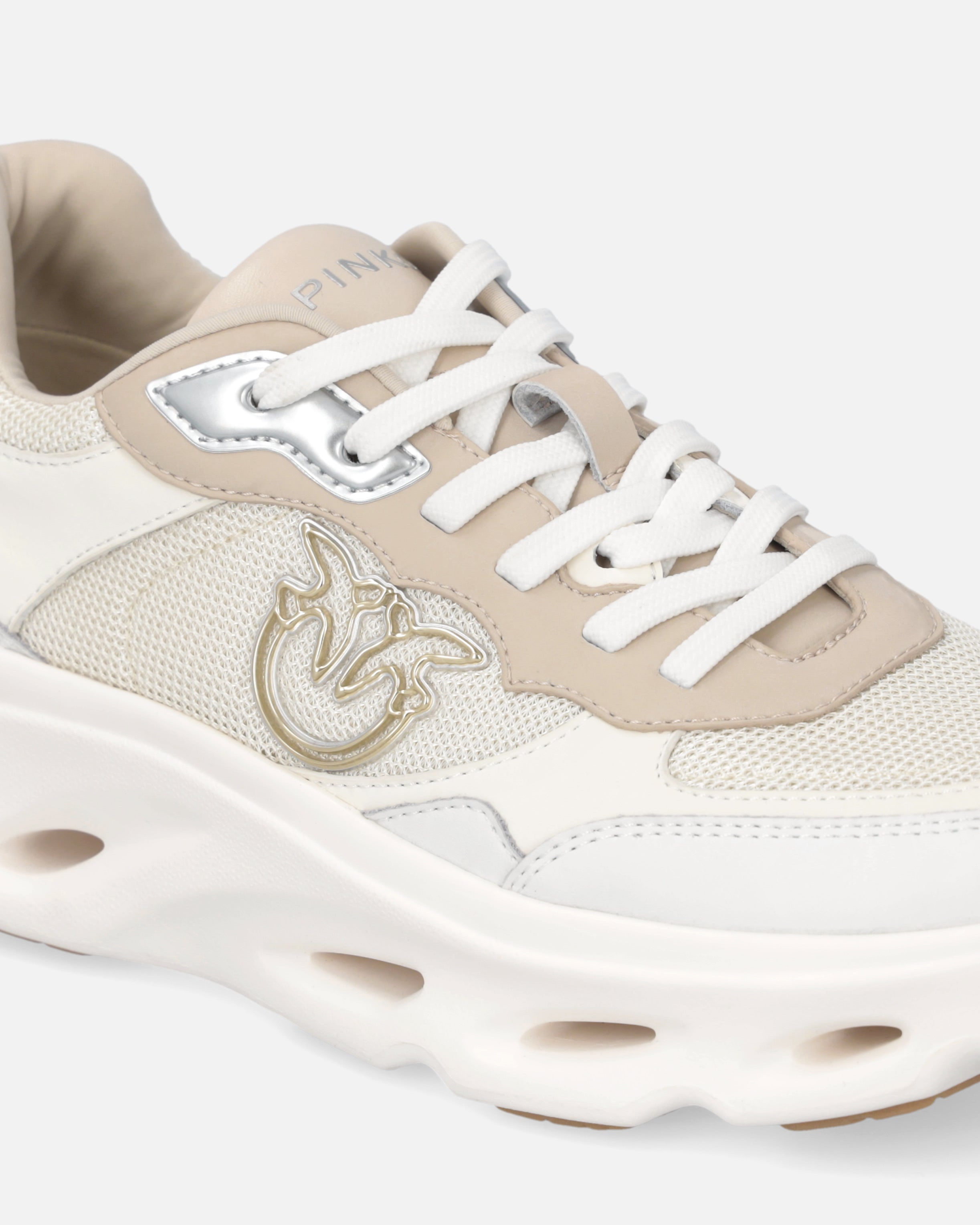 Scarpa da ginnastica con lacci e tirante sul tallone per una calzata comoda. La tomaia è caratterizzata da un raffinato gioco di contrasti tattili e visivi dato dall'accostamento di mesh, inserti in pelle liscia e dettagli in pelle laminata, per un tocco di eleganza che da sempre contraddistingue il brand. Il logo lettering PINKO spicca sulla linguetta e sulla suola interna, mentre il logo Love Birds in rilievo impreziosisce i lati delle sneakers. La suola platform traforata è caratterizzata da un'ulteriore applicazione in gomma sul fondo, costellata dal motivo logo Love Birds all over. Reinterpretazione contemporanea di un classico del guardaroba sportivo, queste sneakers donano un tocco glam in puro stile PINKO ai tuoi outfit quotidiani. - PINK 09