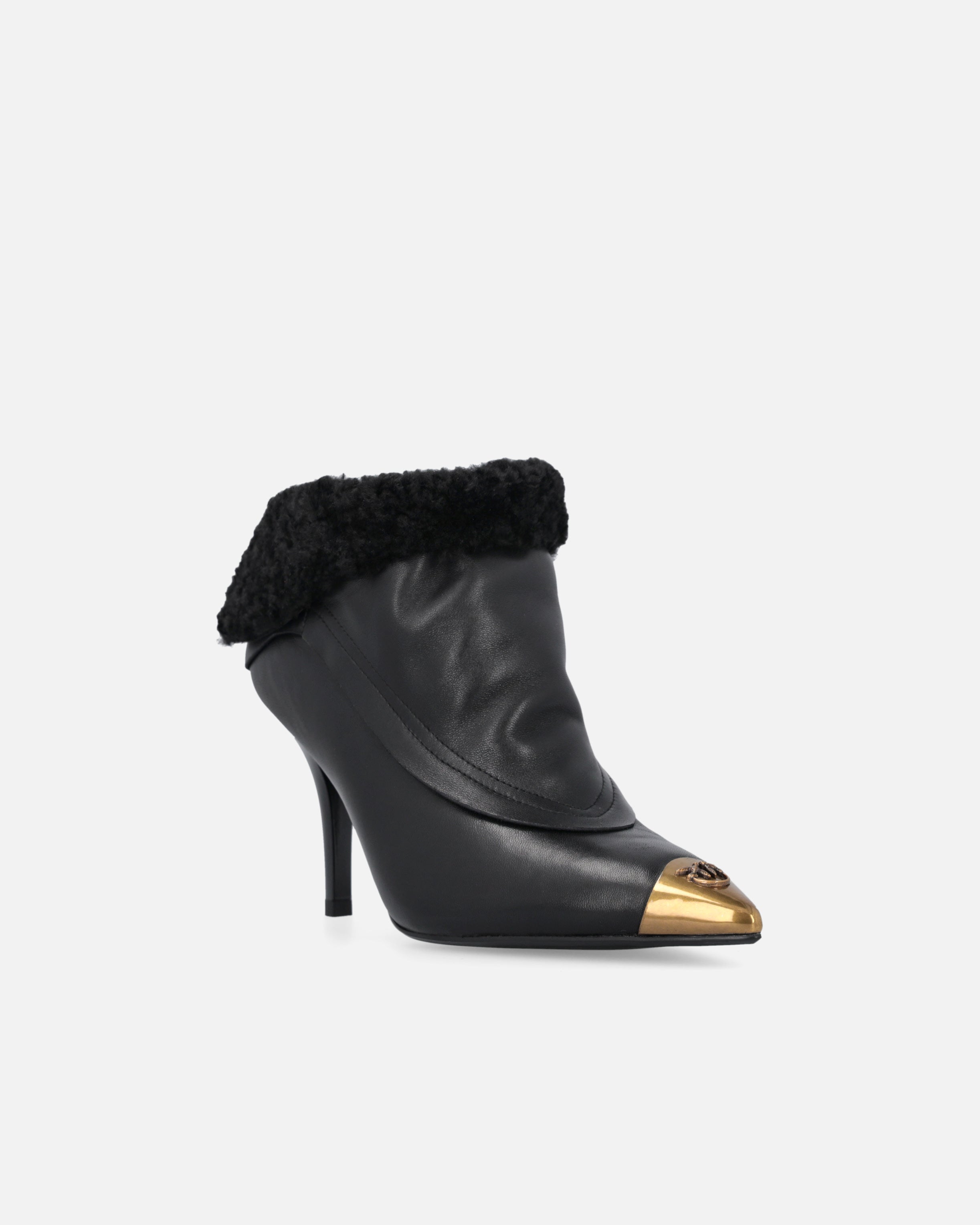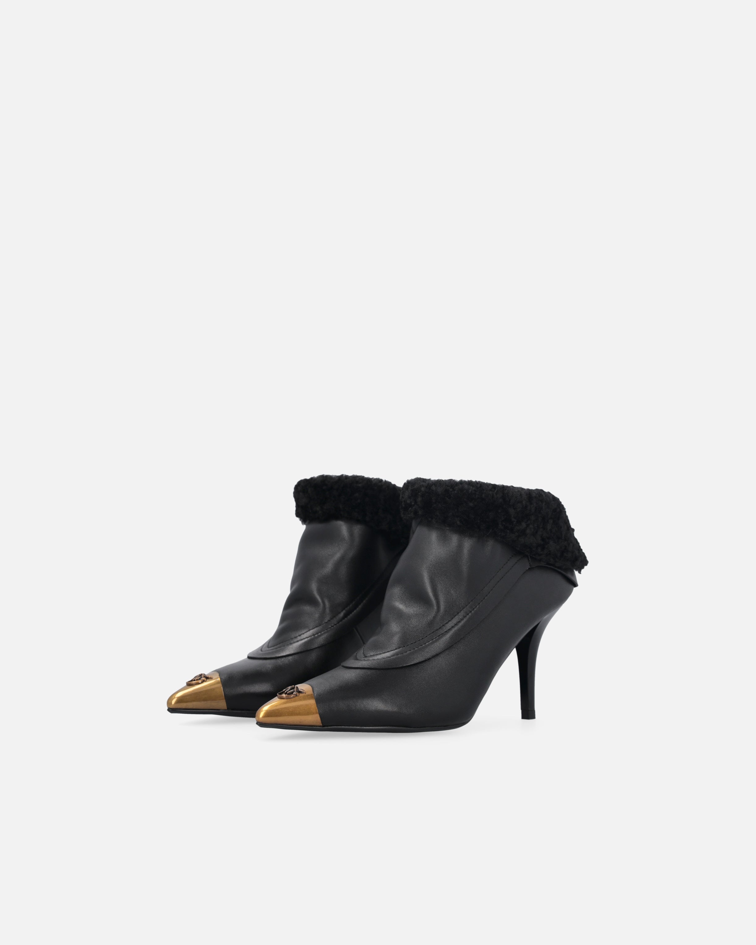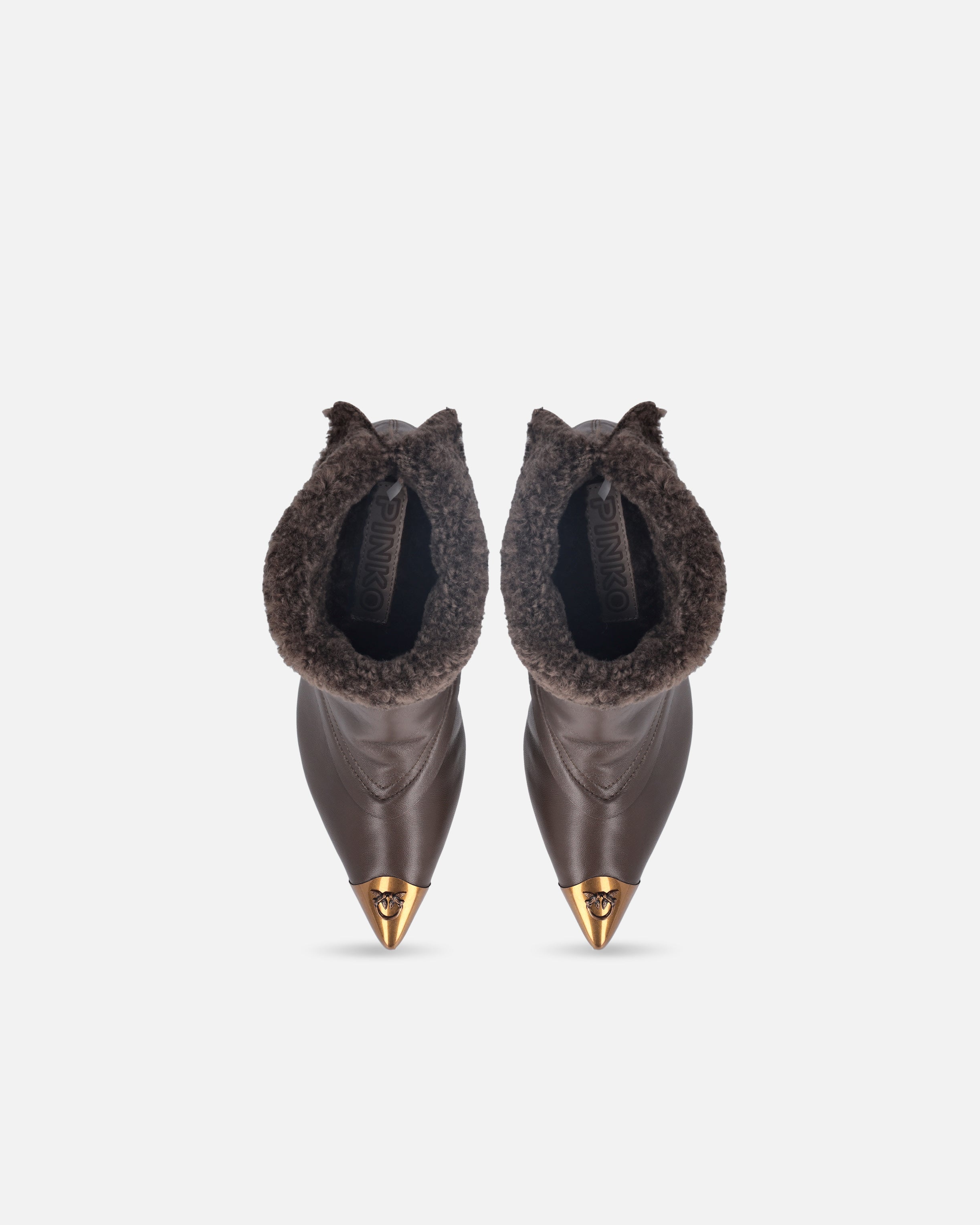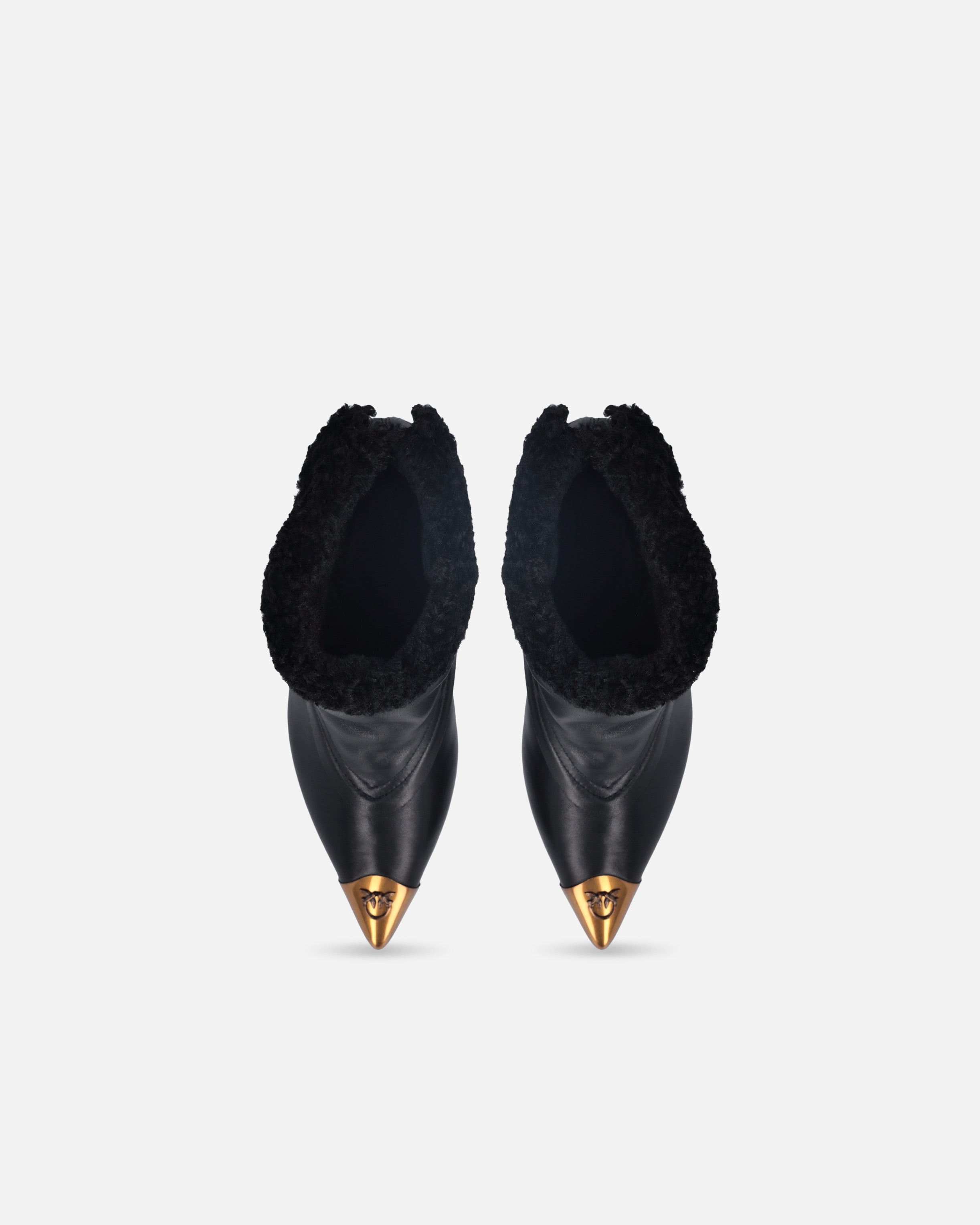 Stivaletti dalla silhouette femminile, realizzati in morbida pelle con effetto lucido e dotati di gambale alto 10 cm. Il tacco sottile alto 7 cm slancia la figura senza rinunciare al comfort, mentre la fodera in tessuto Aspen effetto pelliccia offre morbidezza, per un perfetto equilibrio tra stile e funzionalità. Il modello viene ultimato dalla punta metallizzata in galvanica oro, accompagnata dal logo Love Birds, che aggiunge un accento rock. Grazie alla sua versatilità, questo modello saprà accompagnarti nelle occasioni più speciali, per esempio in abbinamento a una gonna raffinata.