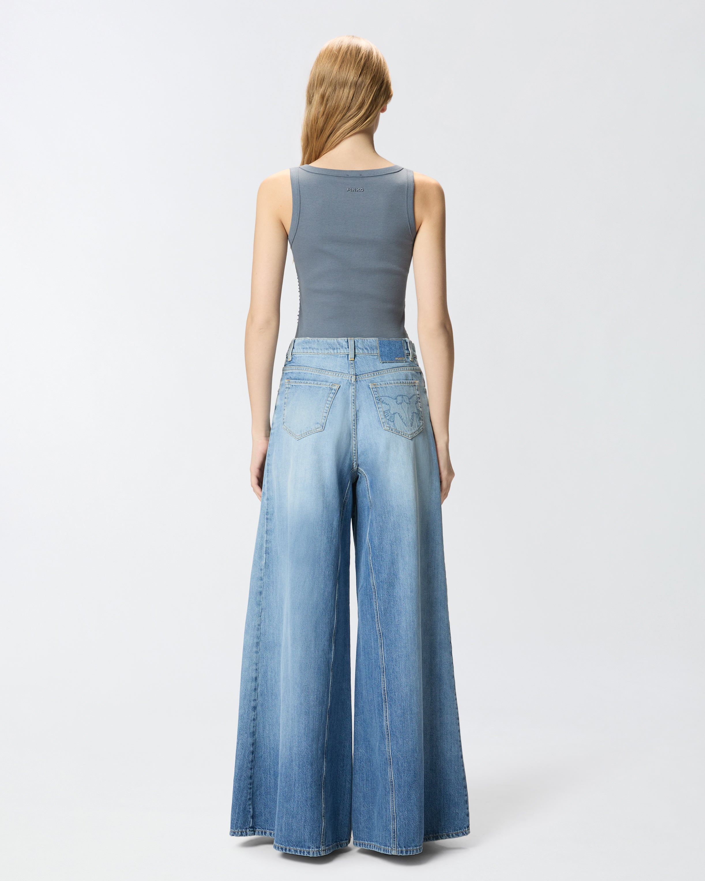 Top a canotta in misto cotone lavorato a costine sottili impreziosito sul davanti da piccole applicazioni gioiello disposte a righe verticali per un effetto simile al gessato. Eleva l'eleganza e la femminilità di qualsiasi outfit grazie a questo top, che è il sottogiacca perfetto abbinato a pantaloni sartoriali, ma anche a un paio di jeans speciali.