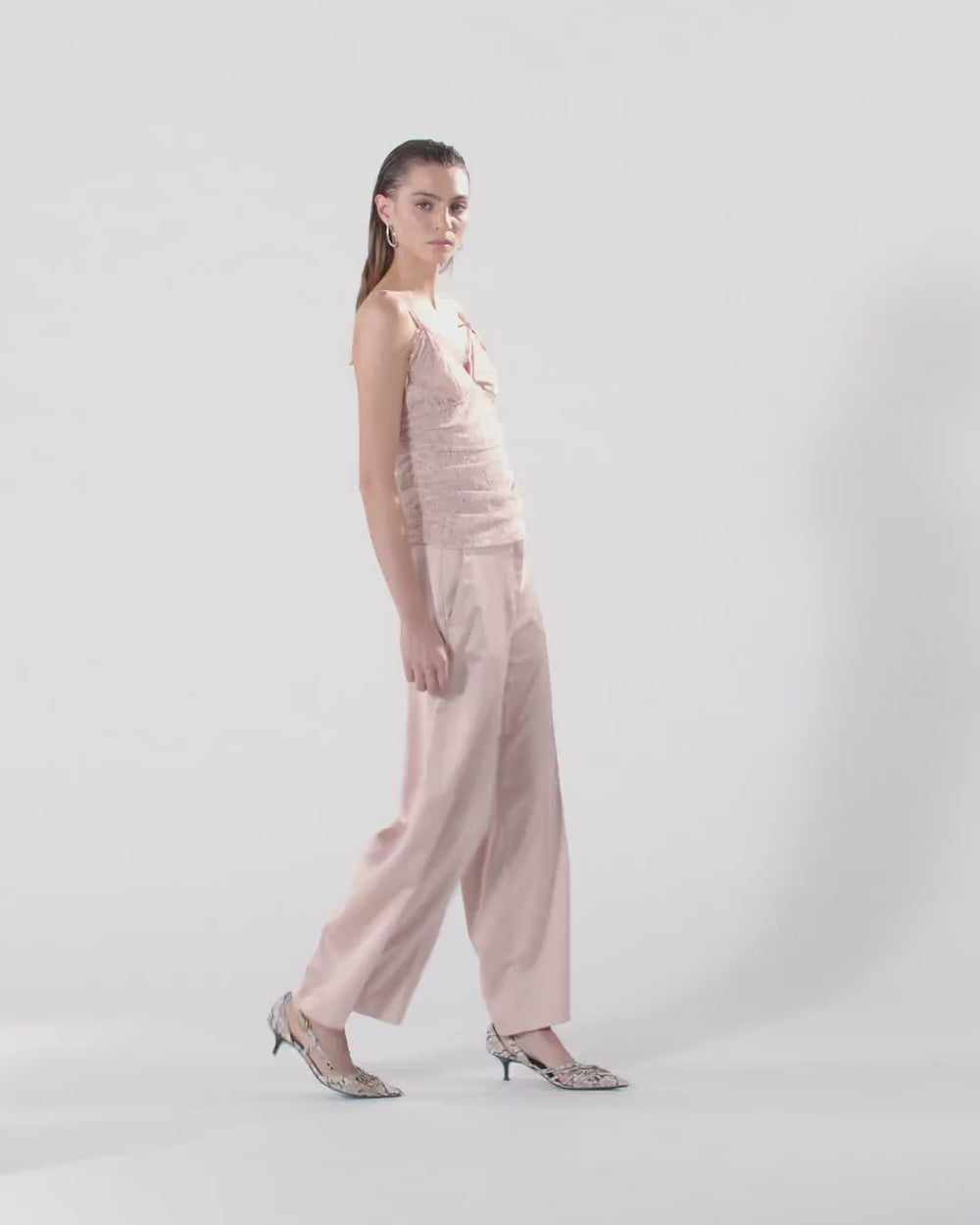 Top senza maniche dalla silhouette aderente, caratterizzato da sottili spalline regolabili d'ispirazione lingerie, scollo a V frontale e chiusura posteriore con due bottoni in tono che creano piccoli cut-out. La protagonista indiscussa del modello è però la lavorazione: un leggerissimo pizzo che decora l'intera superficie con sofisticati motivi floreali e che profila il bordo esterno dello scollo sul davanti. Il capo, foderato per garantire un indosso ancora più confortevole, presenta inoltre delicati drappeggi per esaltare la figura e uno scollo dritto sul retro che lascia la parte alta della schiena scoperta: indossalo con una minigonna per un look più audace, oppure abbinalo a un paio di pantaloni e un blazer per un outfit raffinato ma con un pizzico di sensualità. - FRAGOLA TOP