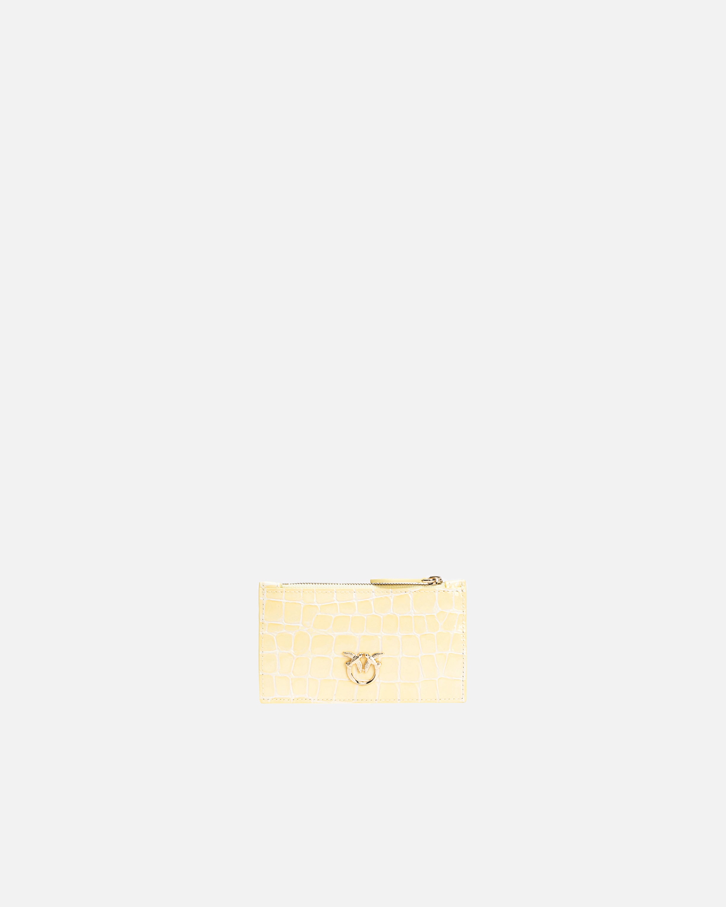 Card holder in shiny and slightly embossed crocodile-print leather. Customised with metal Love Birds Diamond Cut logo plaque. Contrasting-colour polycotton inner lining. Zip fastening. The accessory is part of the Limited Edition special capsule collection which comprises PINKO Galleria-exclusive limited-edition models.