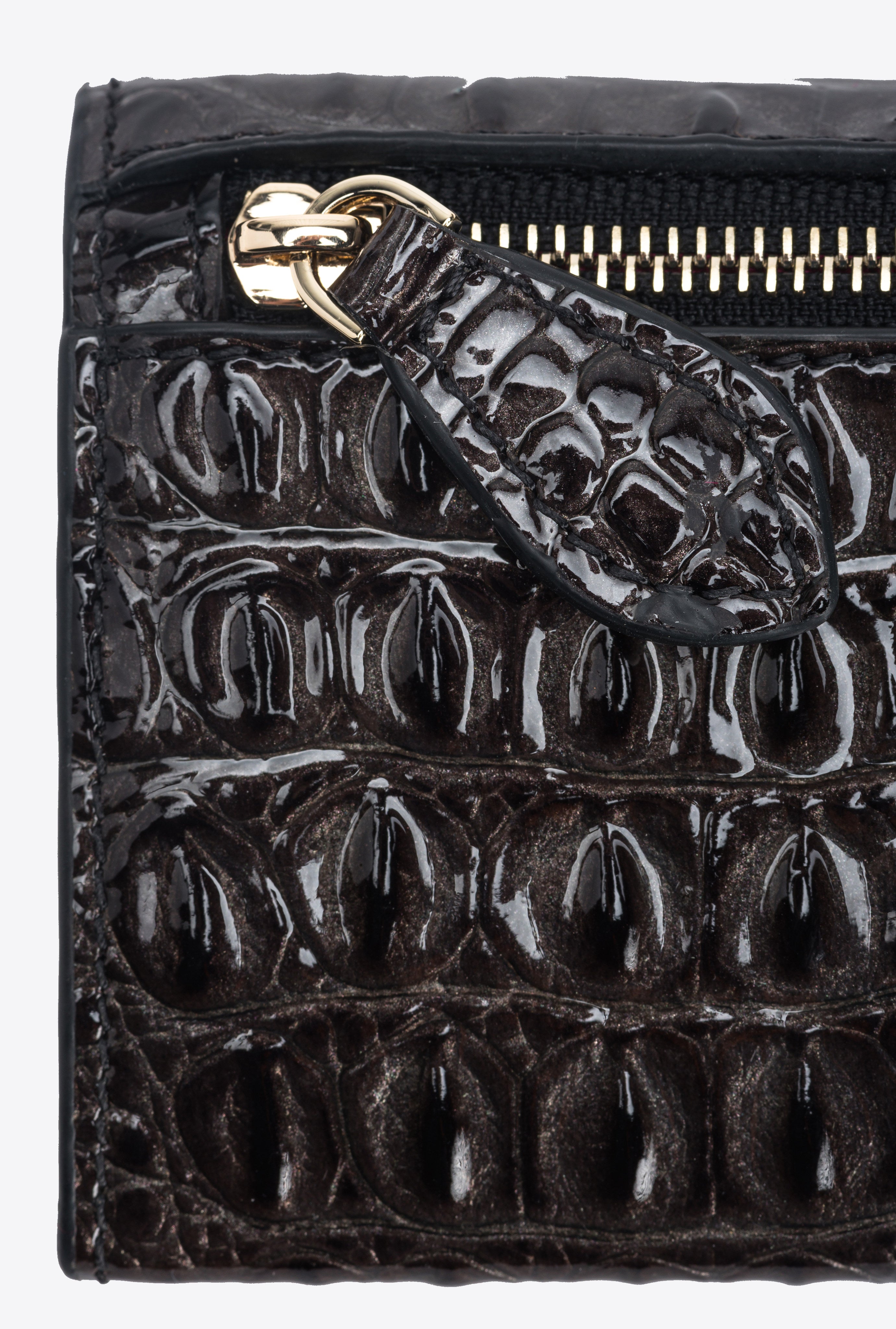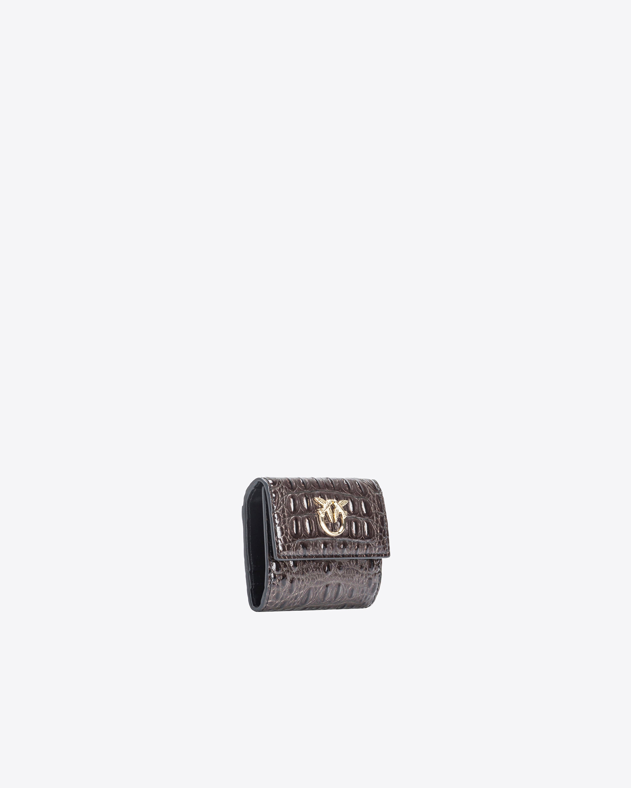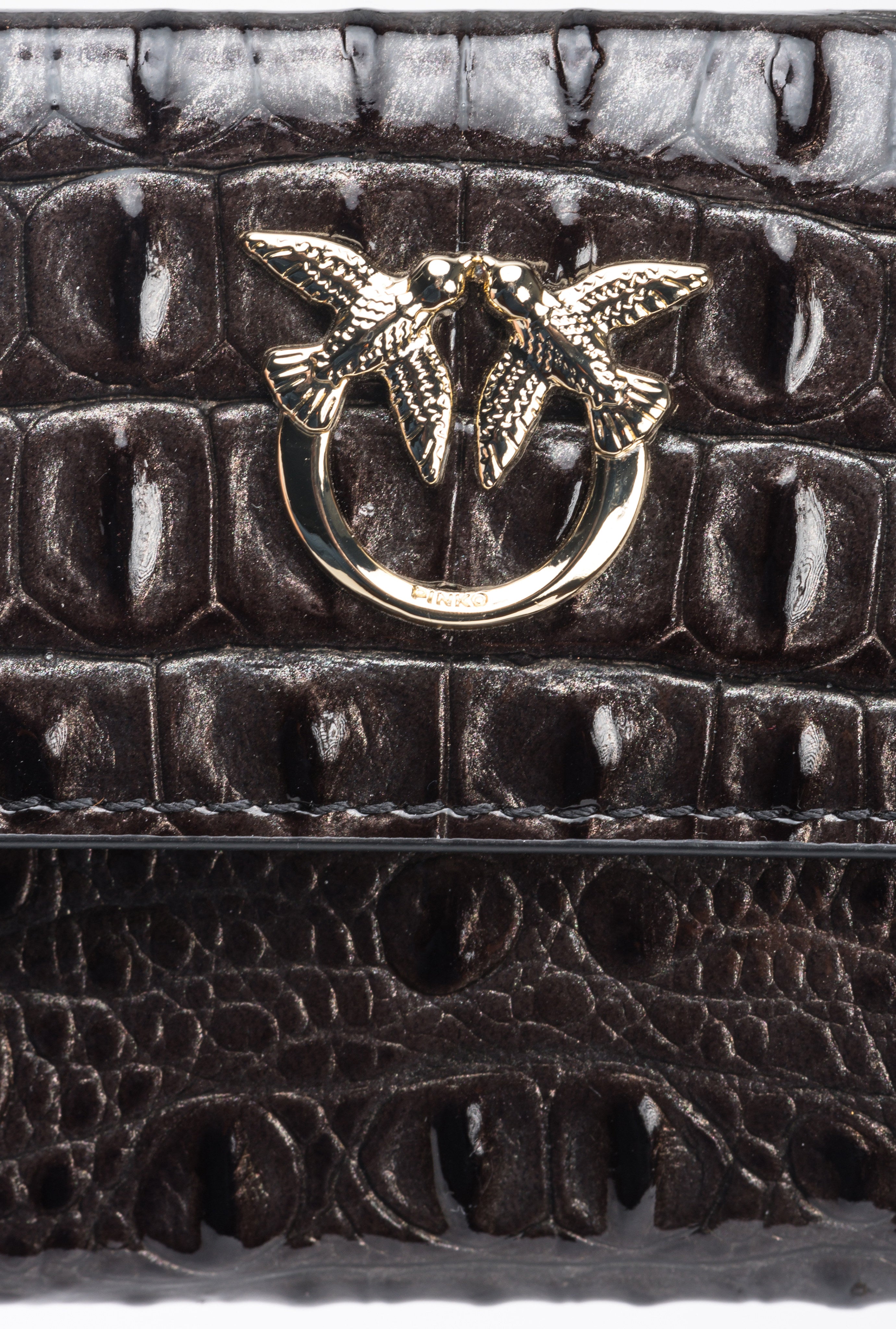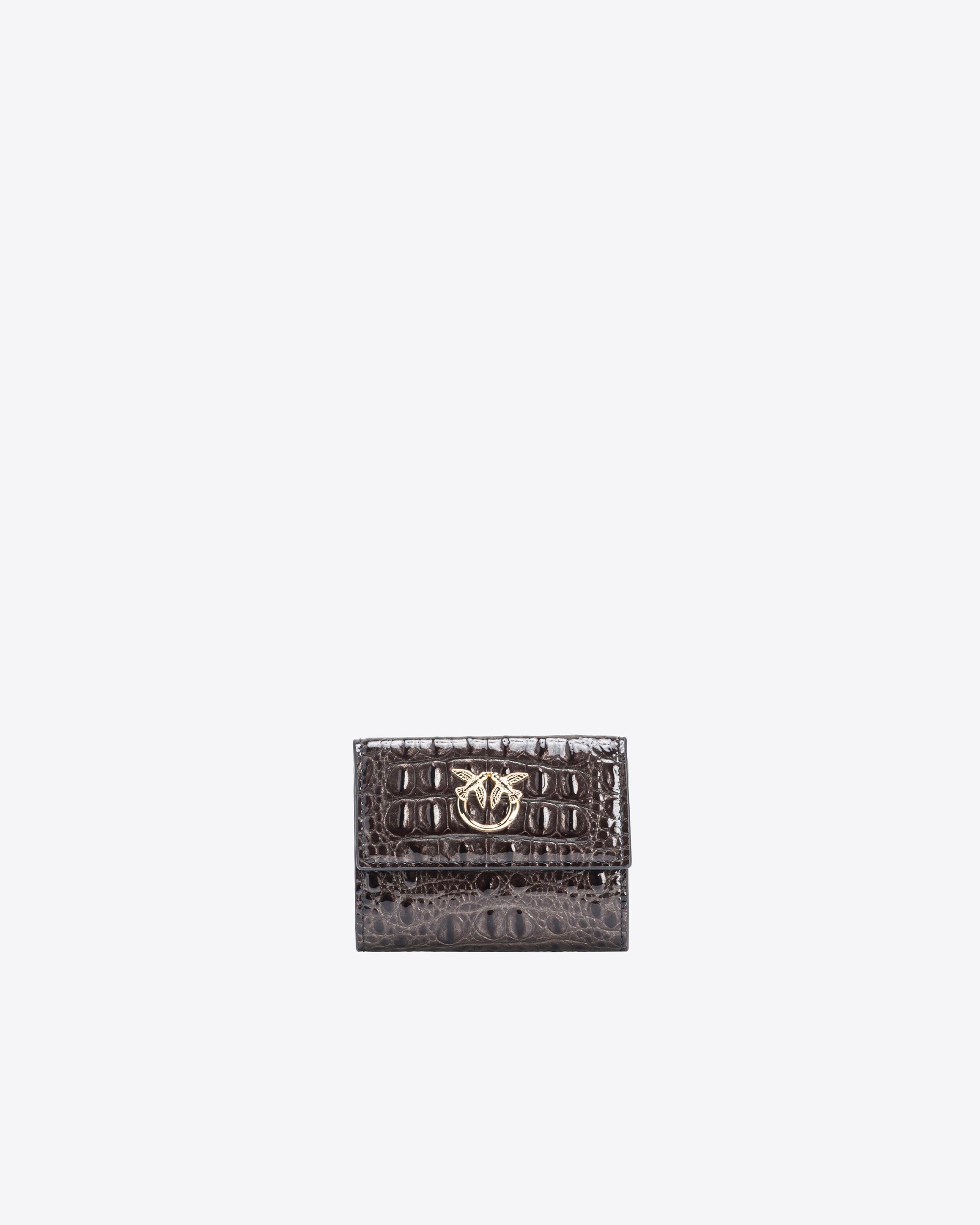 Small square wallet in shiny crocodile-print leather with a strikingly intense colour. Customised with metal Love Birds Diamond Cut plaque. Contrasting-colour inner lining. Flap closure. The accessory is part of the Limited Edition special capsule collection which comprises PINKO Galleria-exclusive limited-edition models.