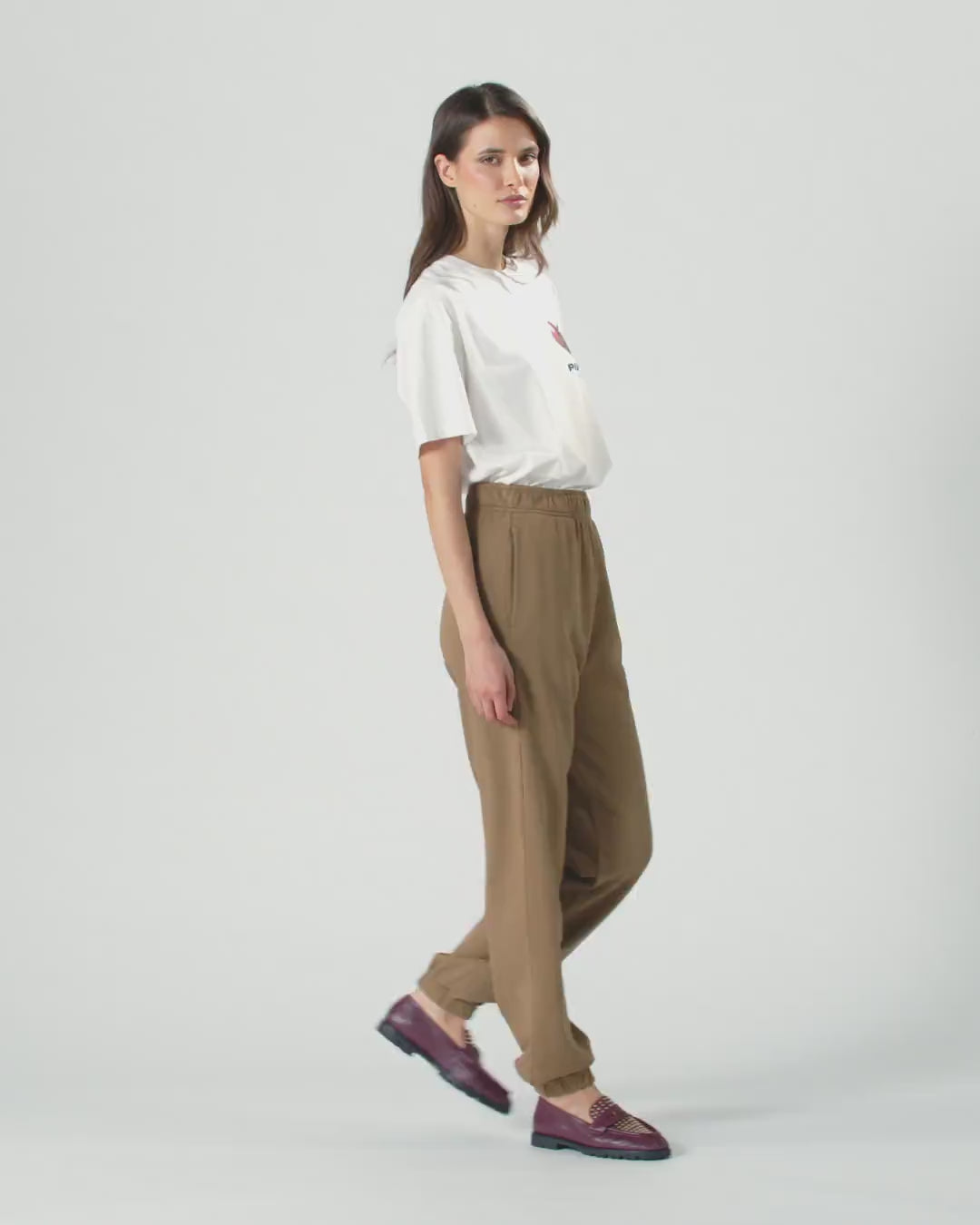 Spodnie o fasonie joggersów, uszyte z bawełny barwionej z efektem old. Haft z logo Love Birds z przodu personalizuje odzież w czystym stylu PINKO, a elastyczna talia i dół nogawki oraz boczne kieszenie zapewniają wygodę i praktyczność. Wraz z bluzką z kapturem z tego samego materiału, spodnie jogging stanowią nową koncepcję dresu, niezbędną do tworzenia wygodnych stylizacji na dzień w nowym sezonie.